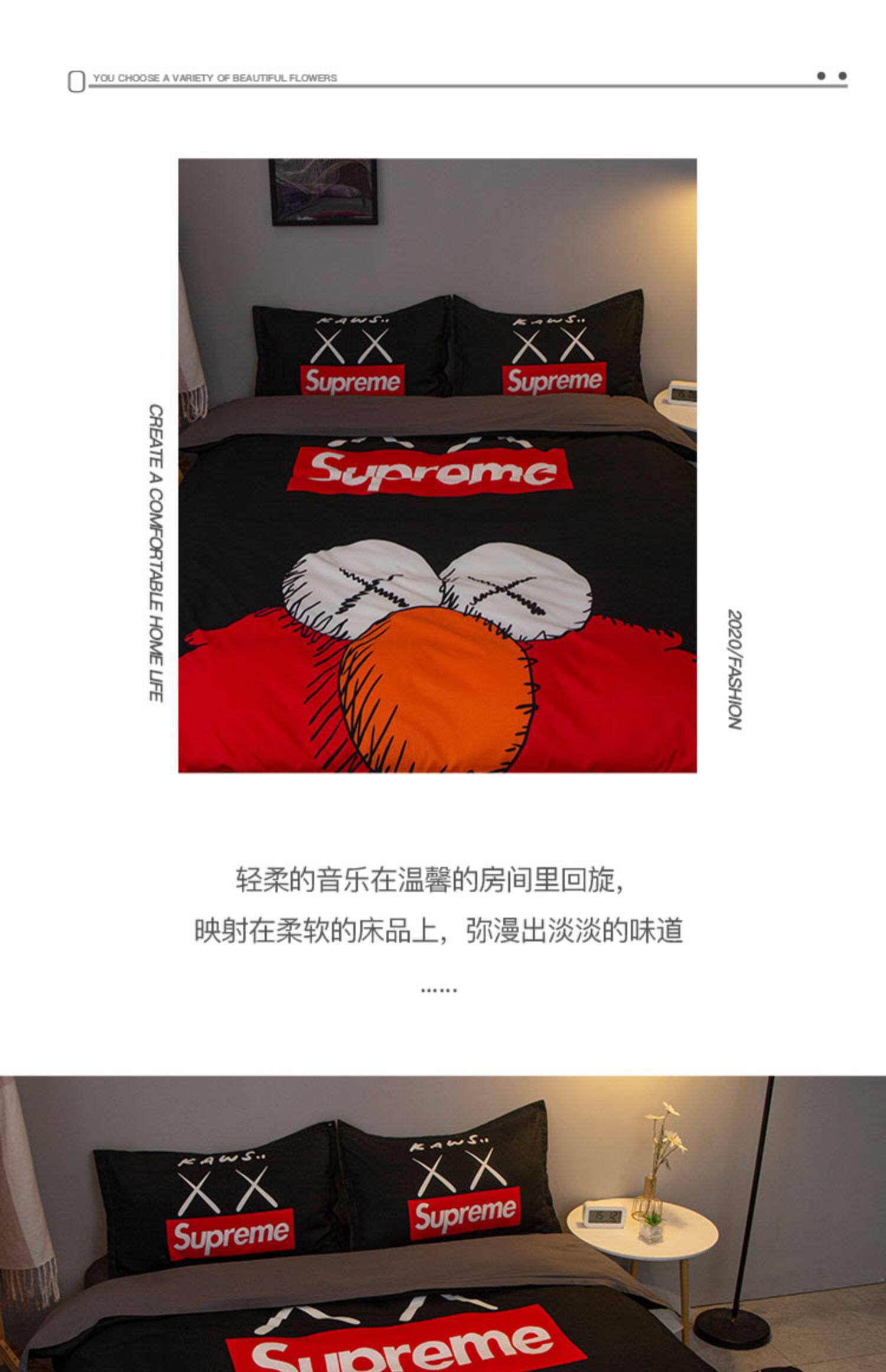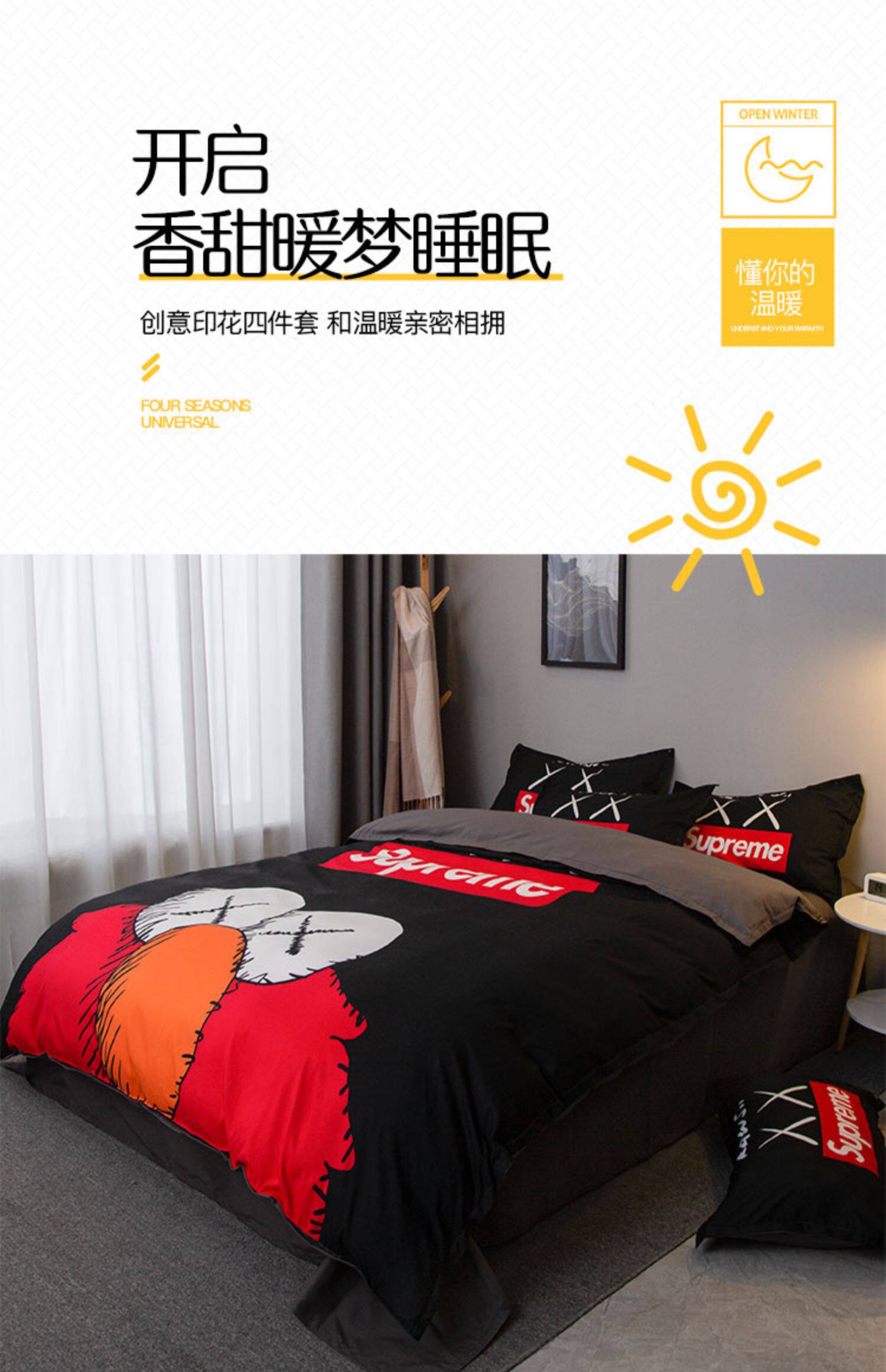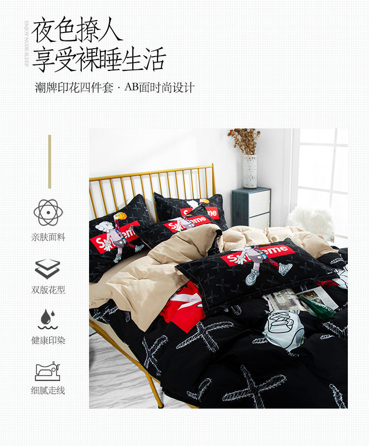 潮牌網紅簡約四件套個性黑色男士被套床單1.5米m學生宿捨床三件套