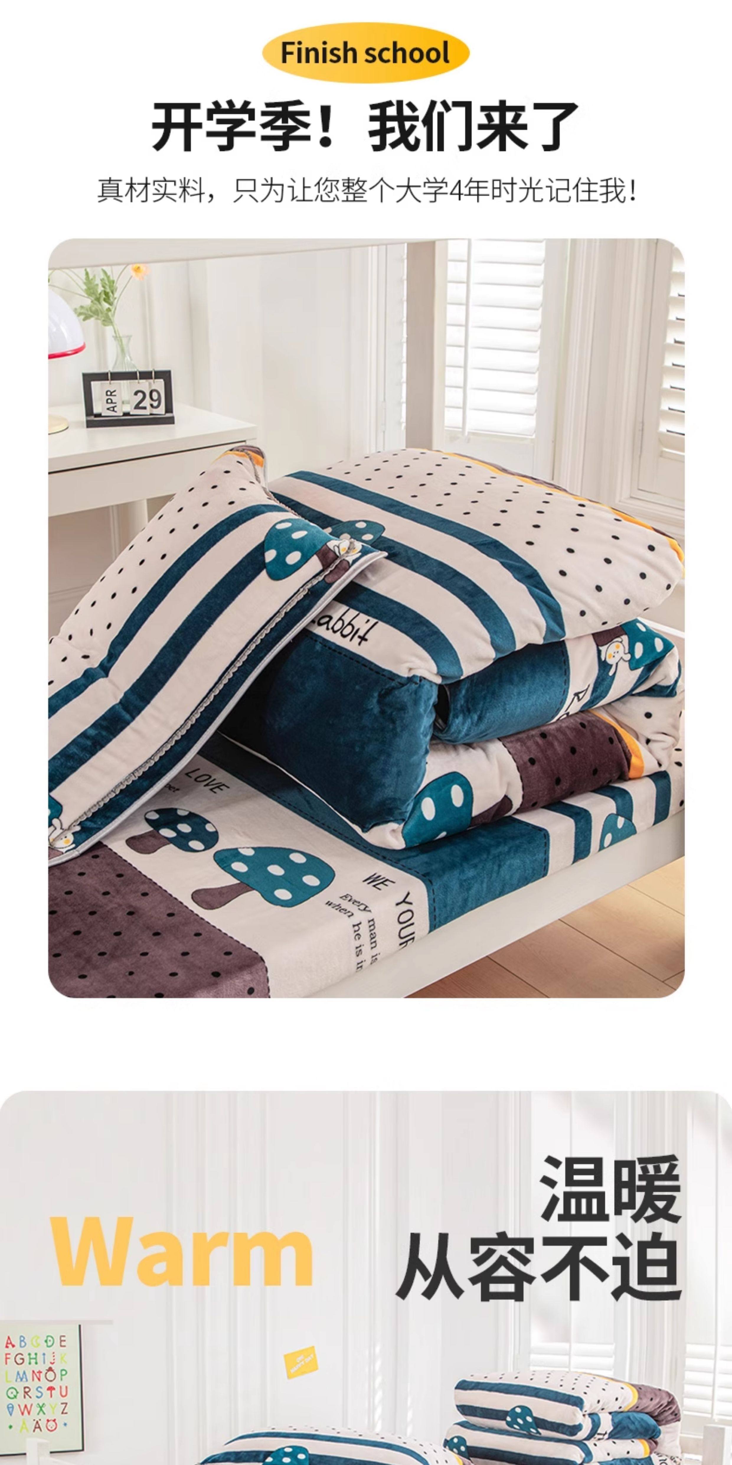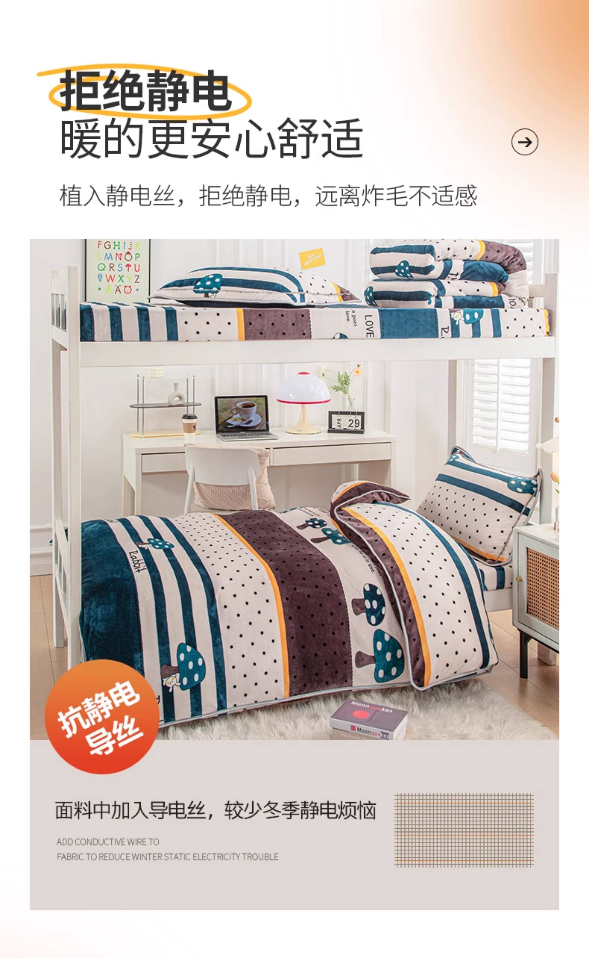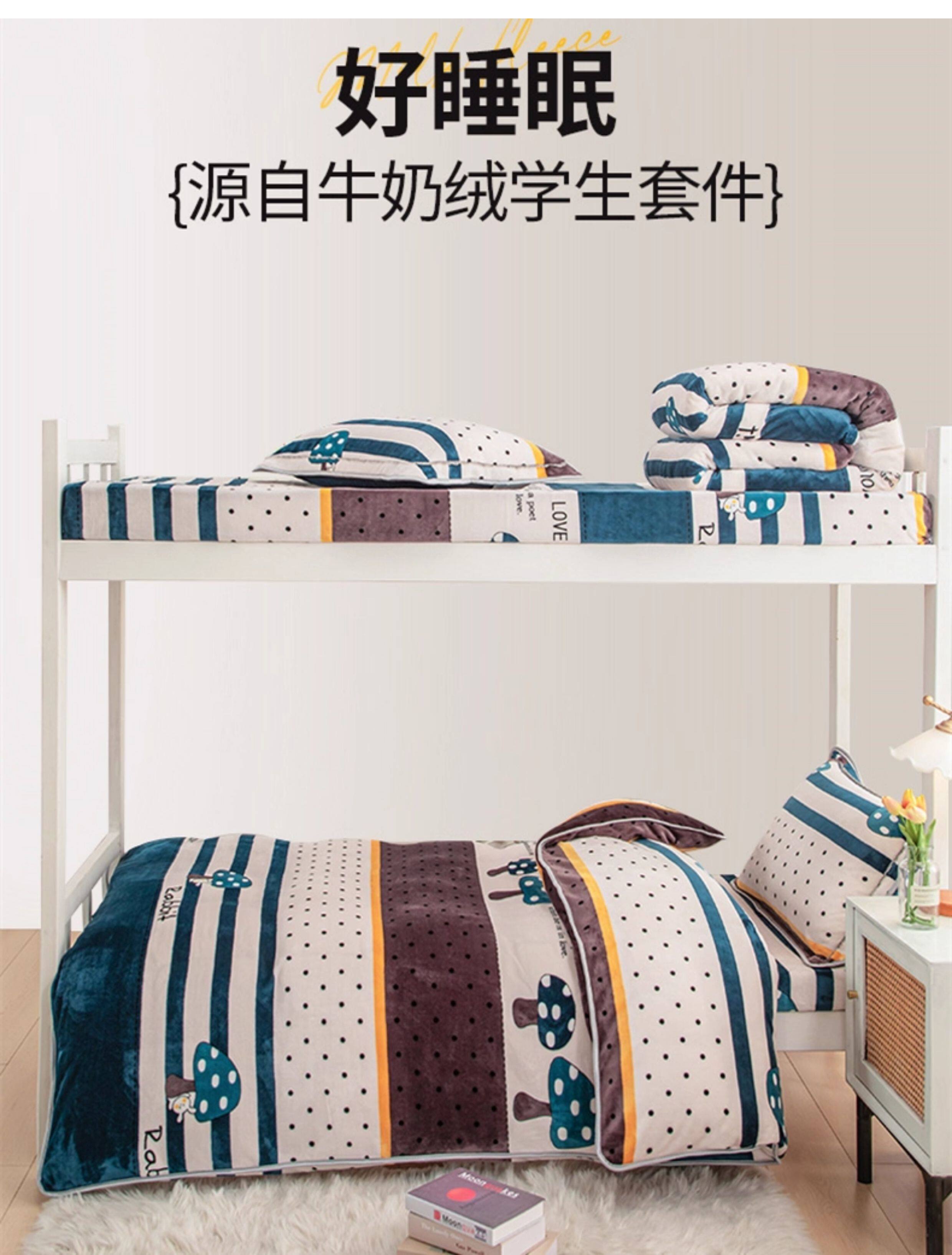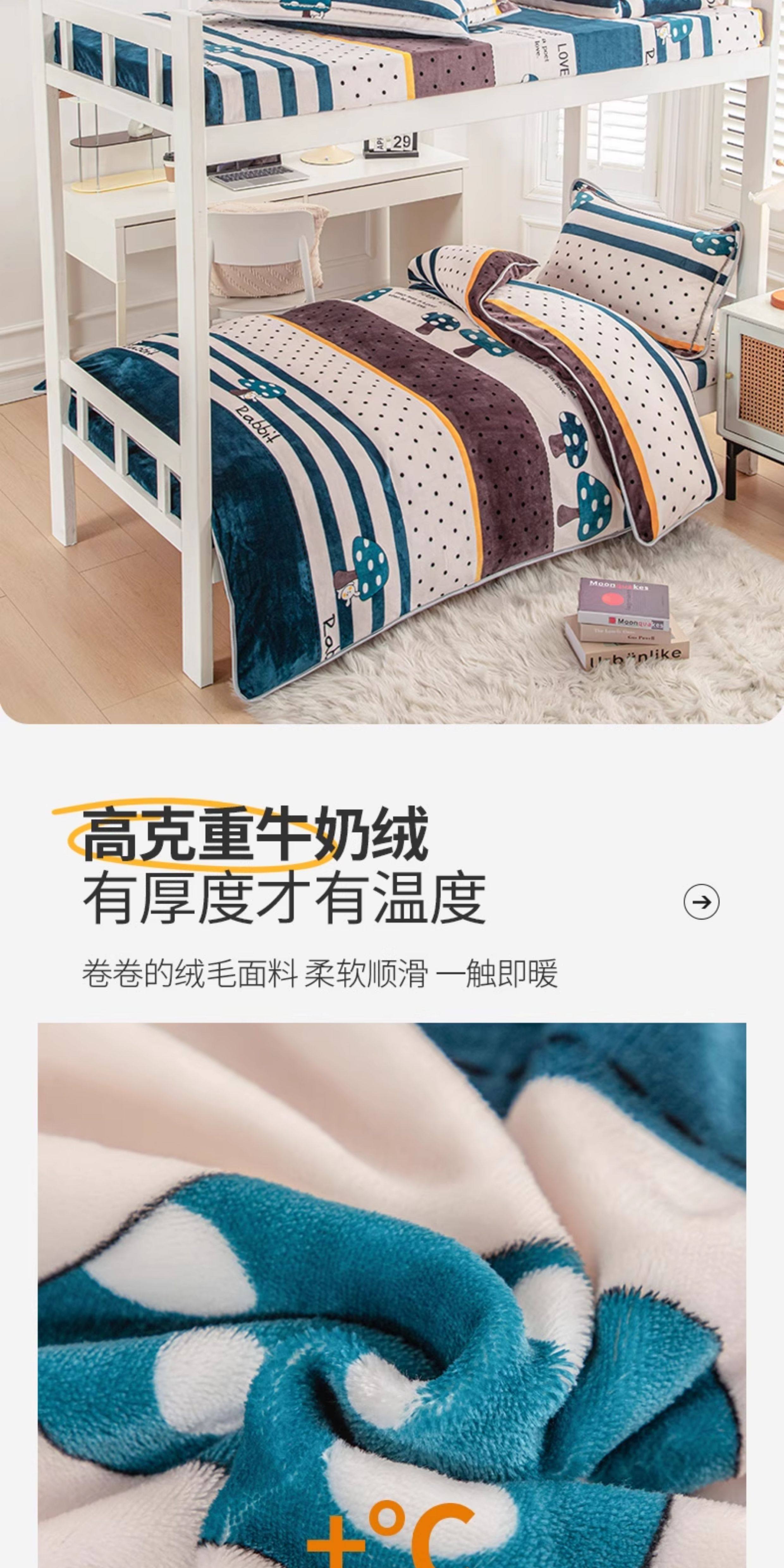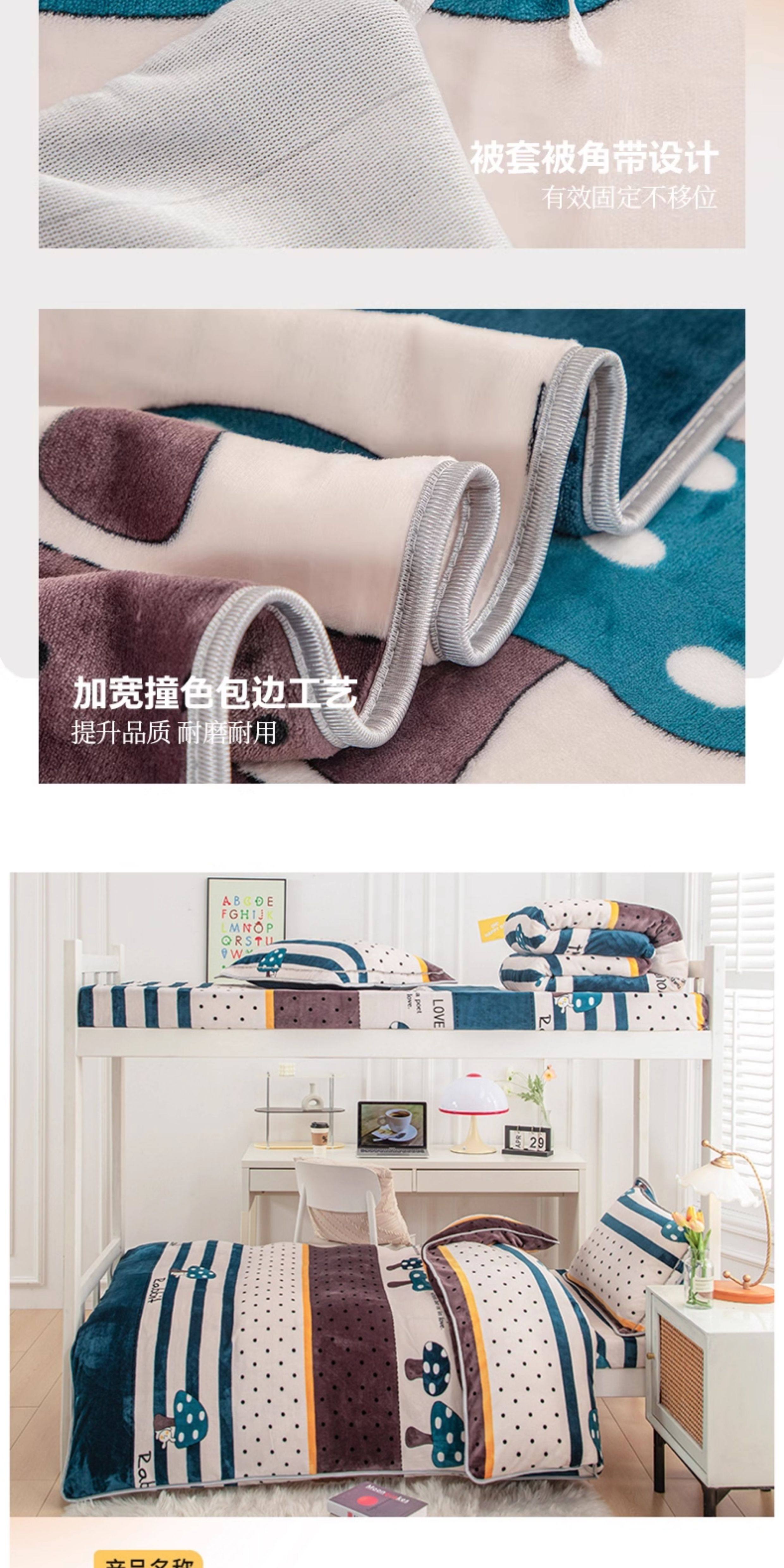 加厚寢室上下鋪牛奶絨三件套雙面加絨珊瑚絨單人大學生宿捨被罩