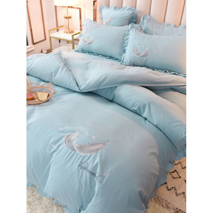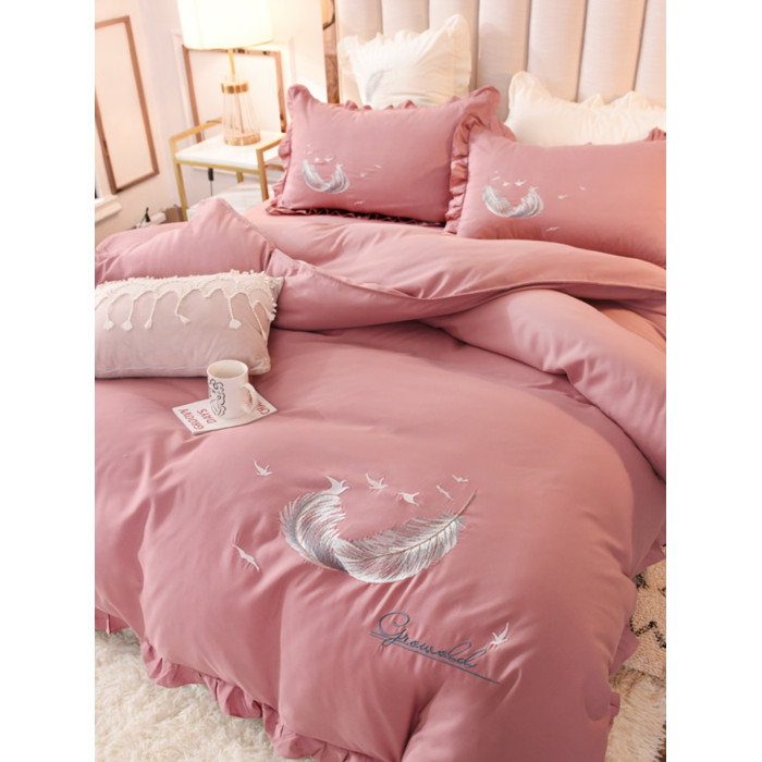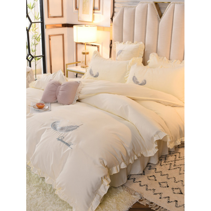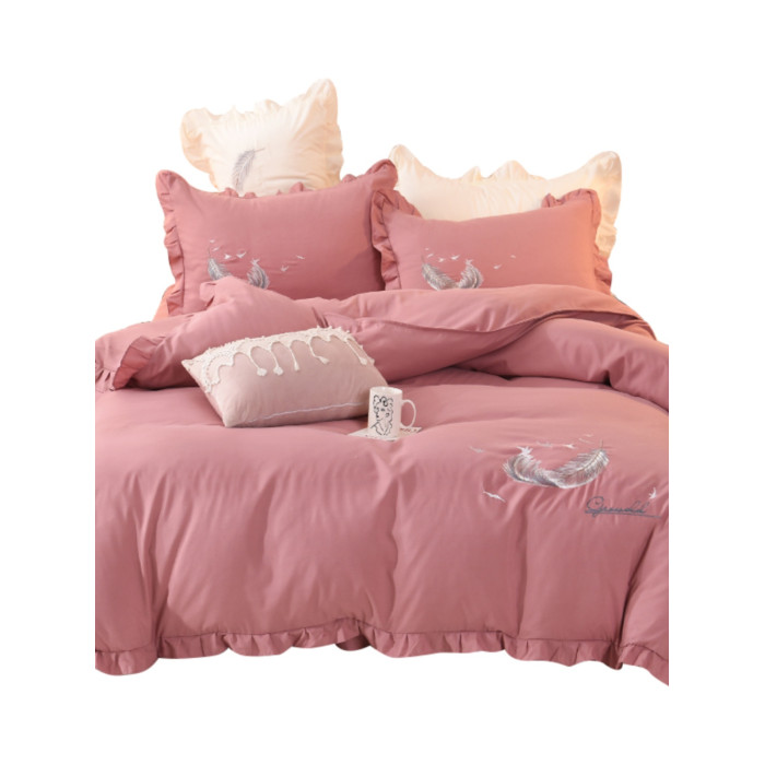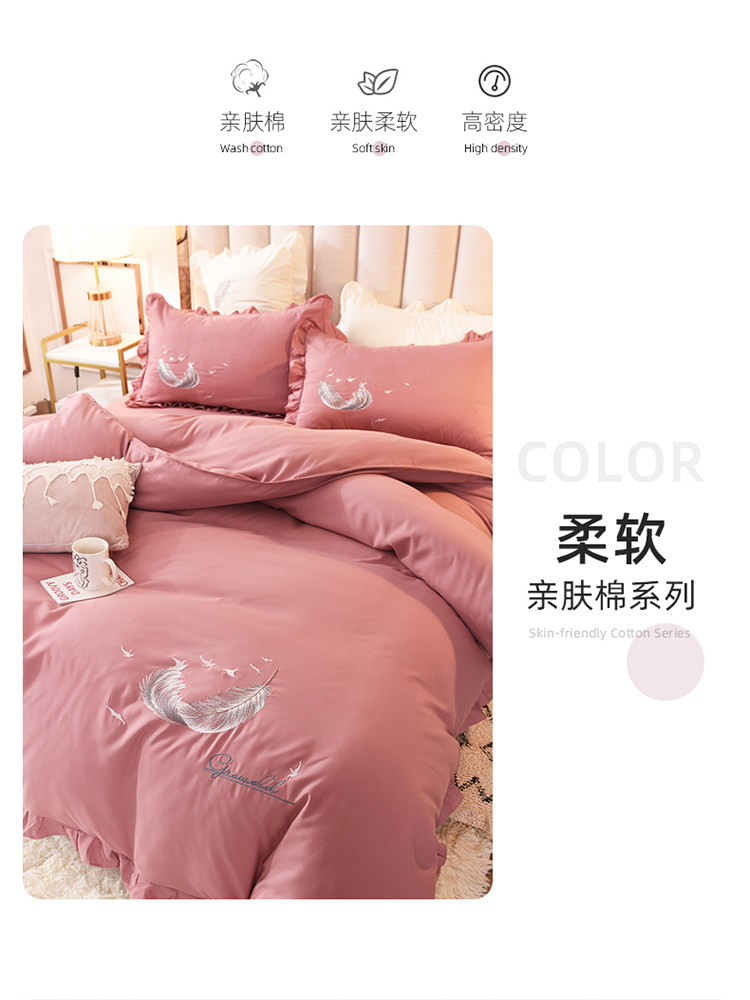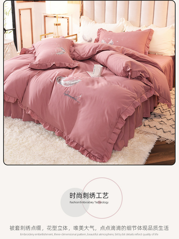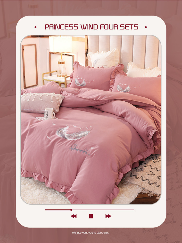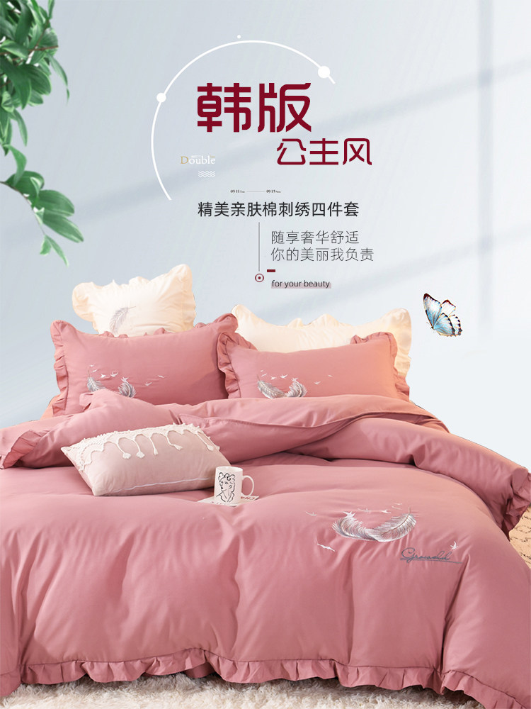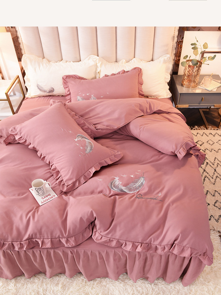 床上四件套四季全棉純棉床裙公主風純色少女心小紅書被套床罩被單