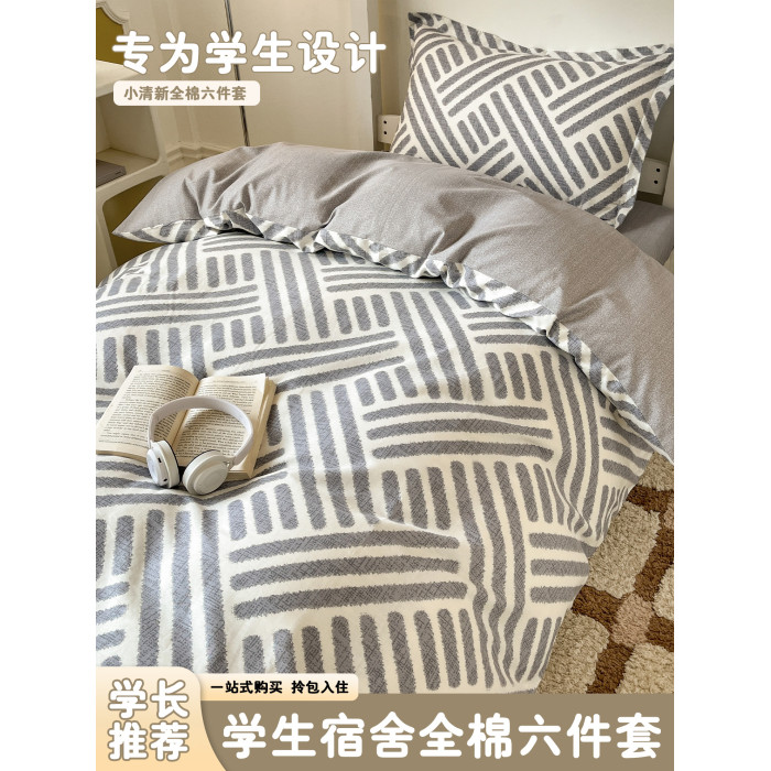 學生宿捨床上三件套全棉純棉六件套被套床單人被褥床墊一整套床品