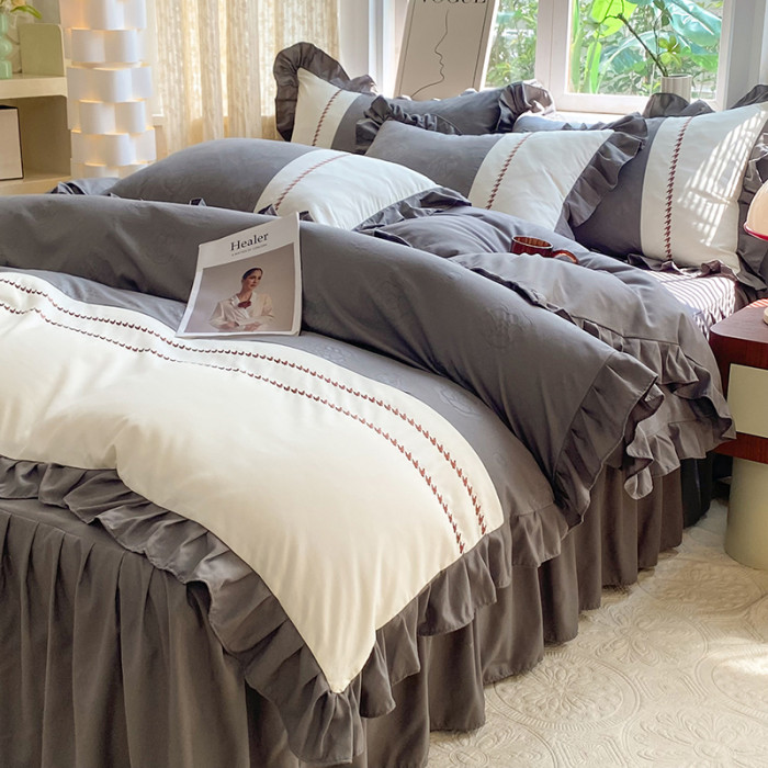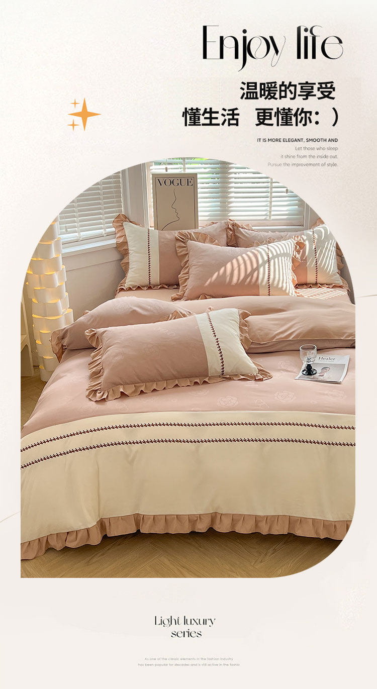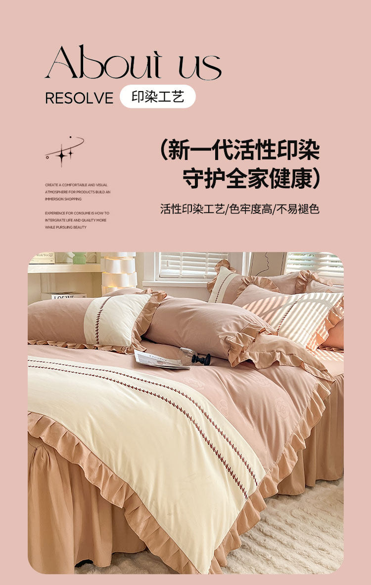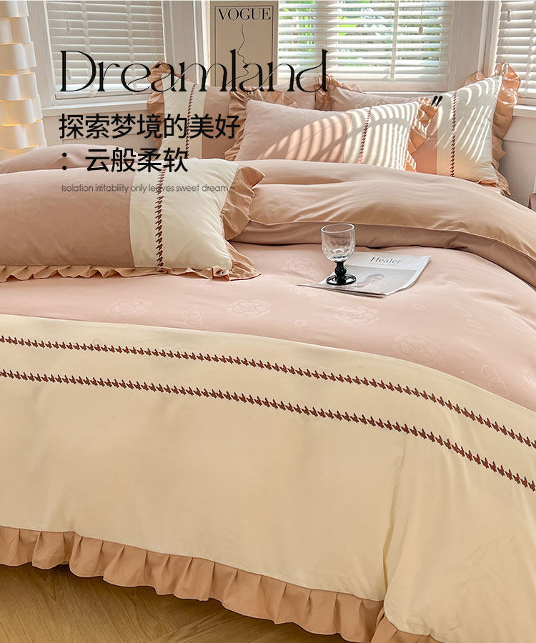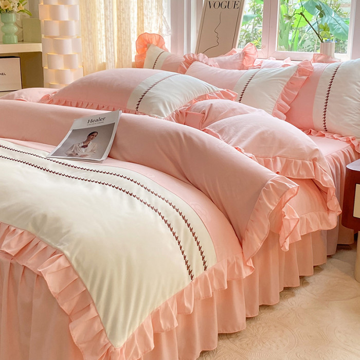 小清新純棉床上四件套全棉新款床品被套防滑床裙床單北歐風水洗棉