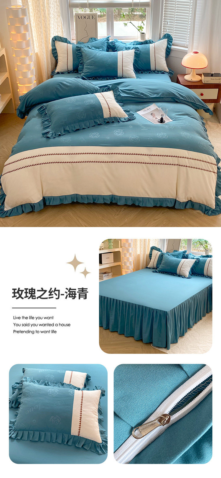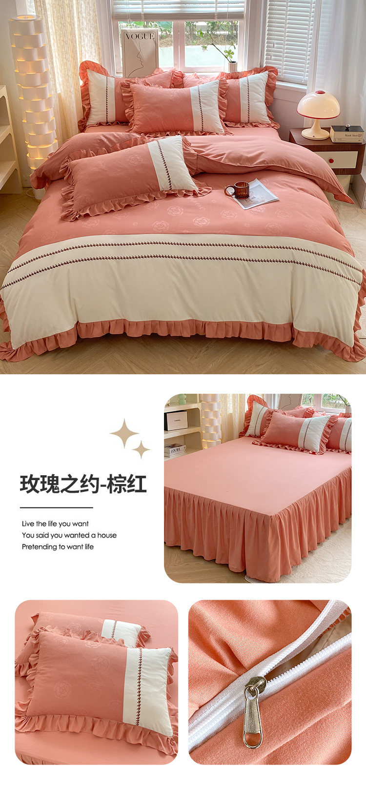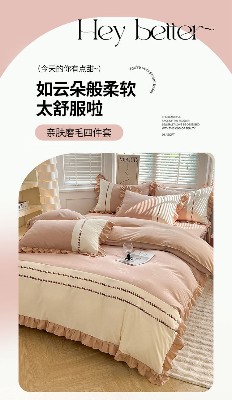 小清新純棉床上四件套全棉新款床品被套防滑床裙床單北歐風水洗棉