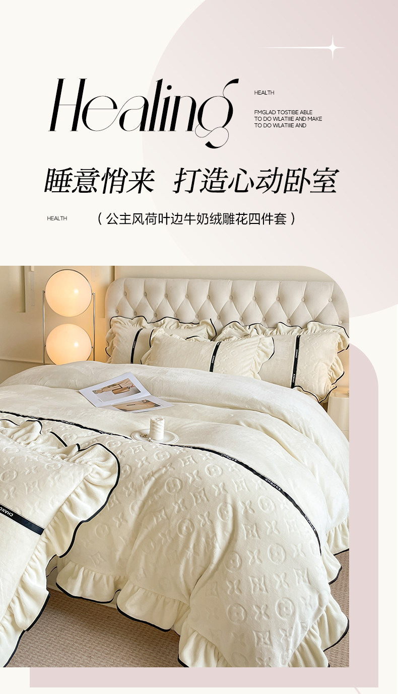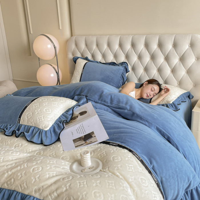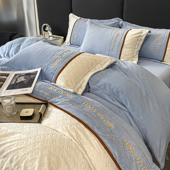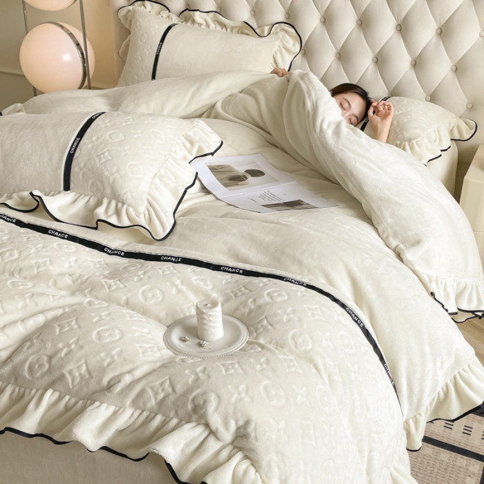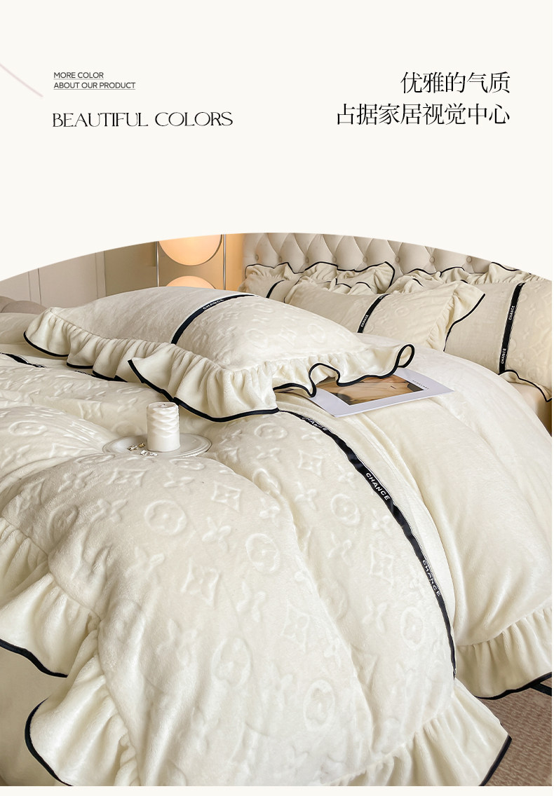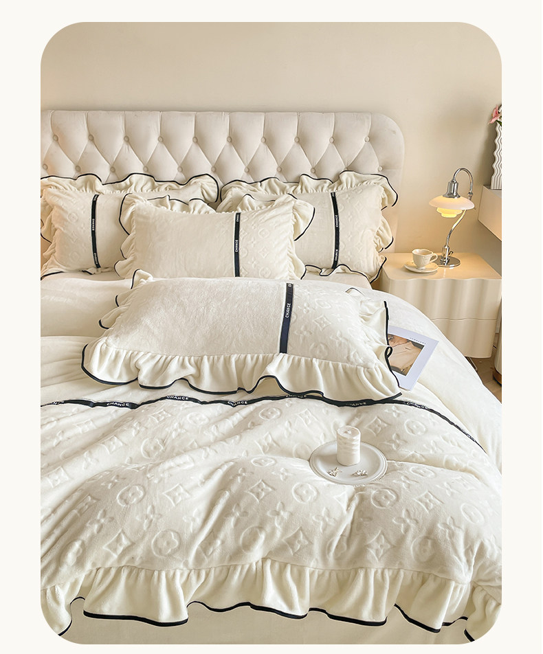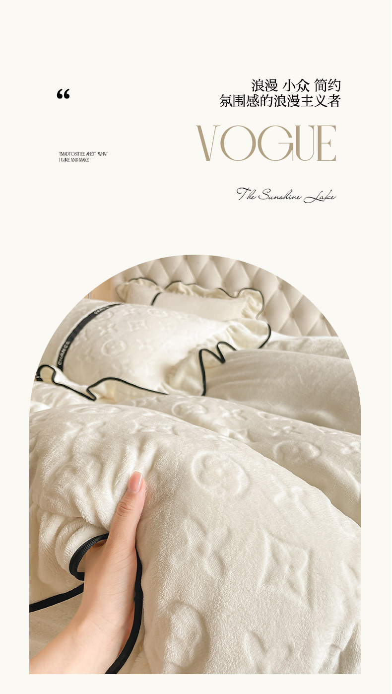 冬季輕奢速暖牛奶絨四件套加厚保暖裸睡被罩防靜電雙面珊瑚絨床罩