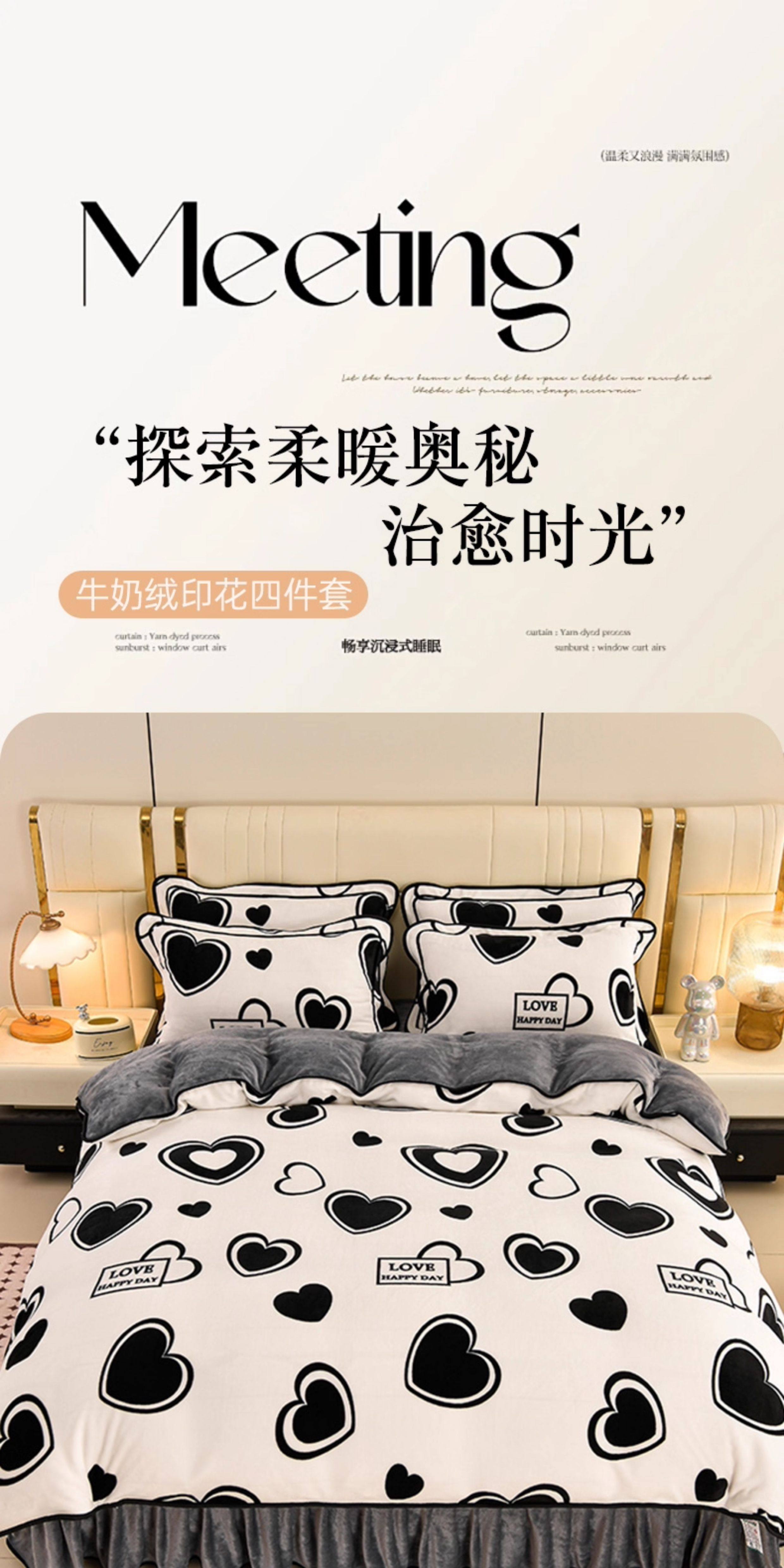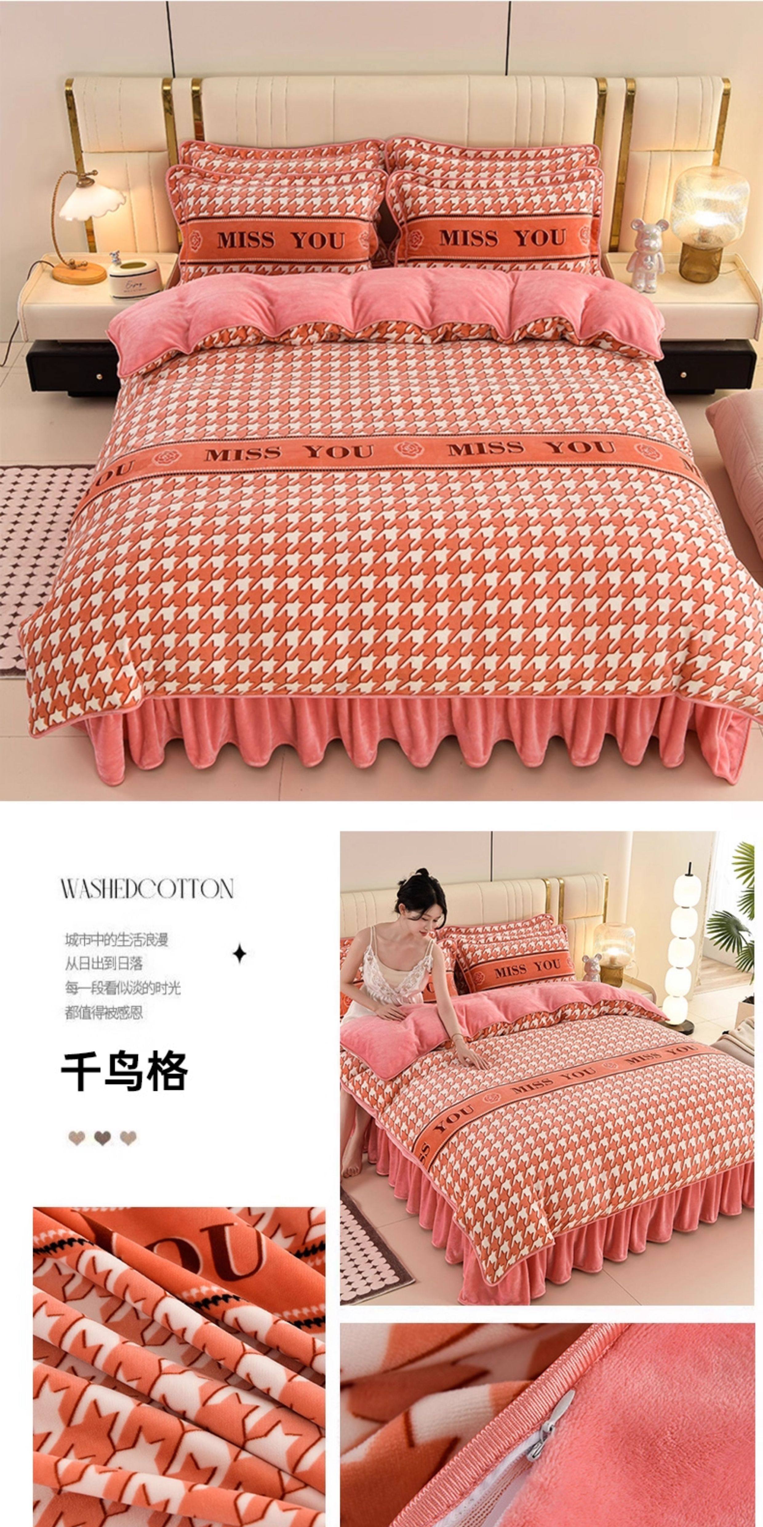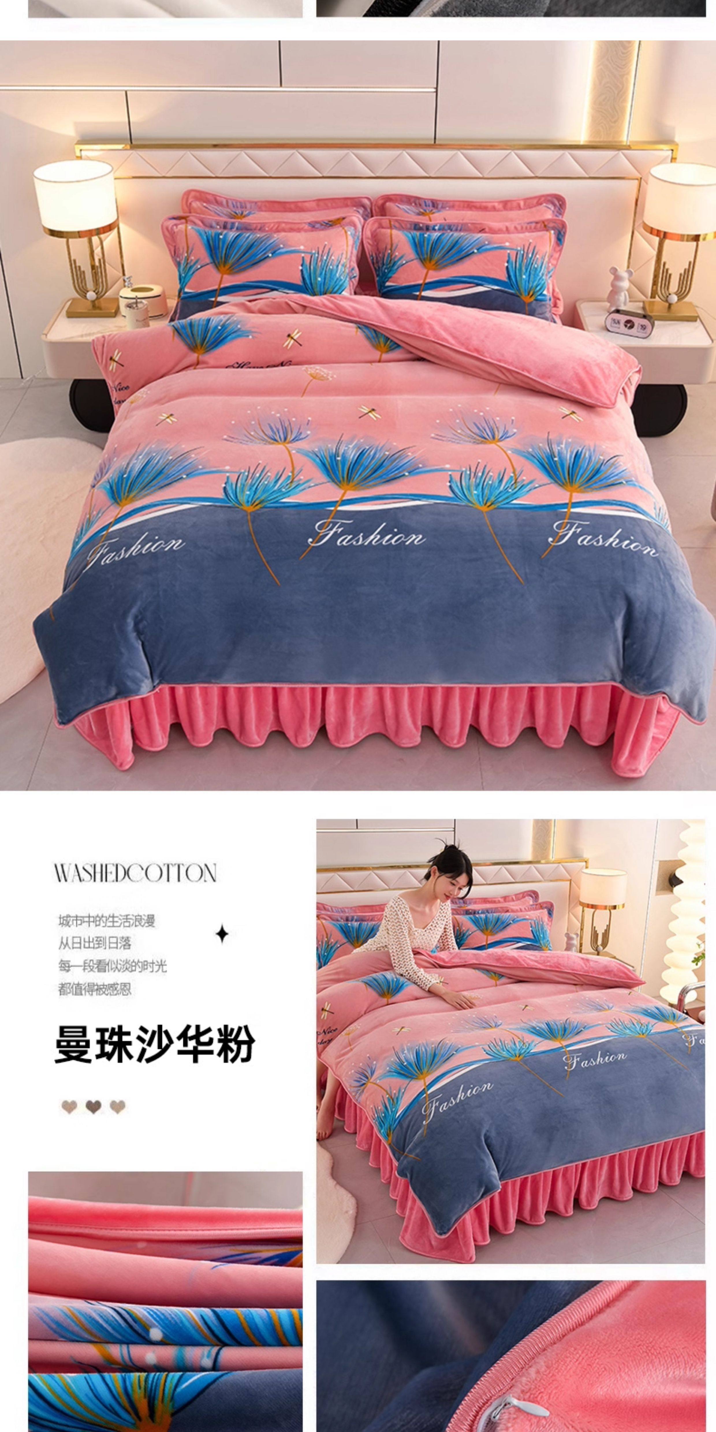 加厚牛奶絨床上四件套冬天季雙面加絨法蘭絨被套珊瑚絨床單床裙款