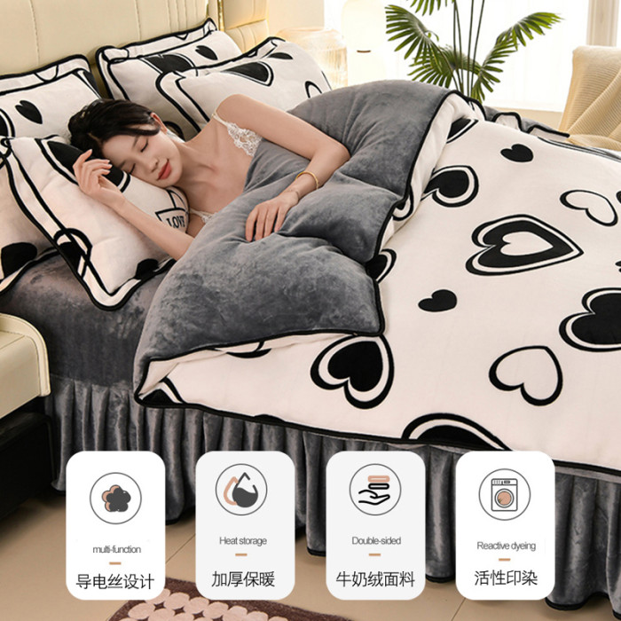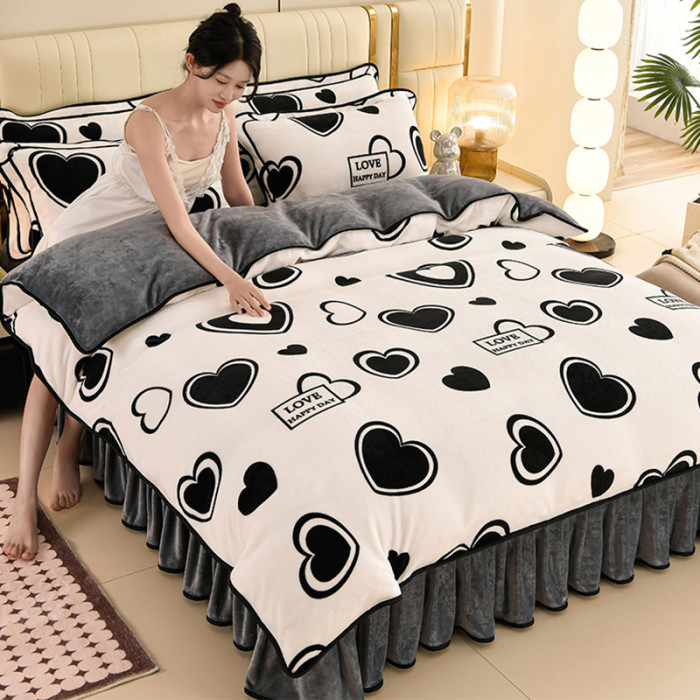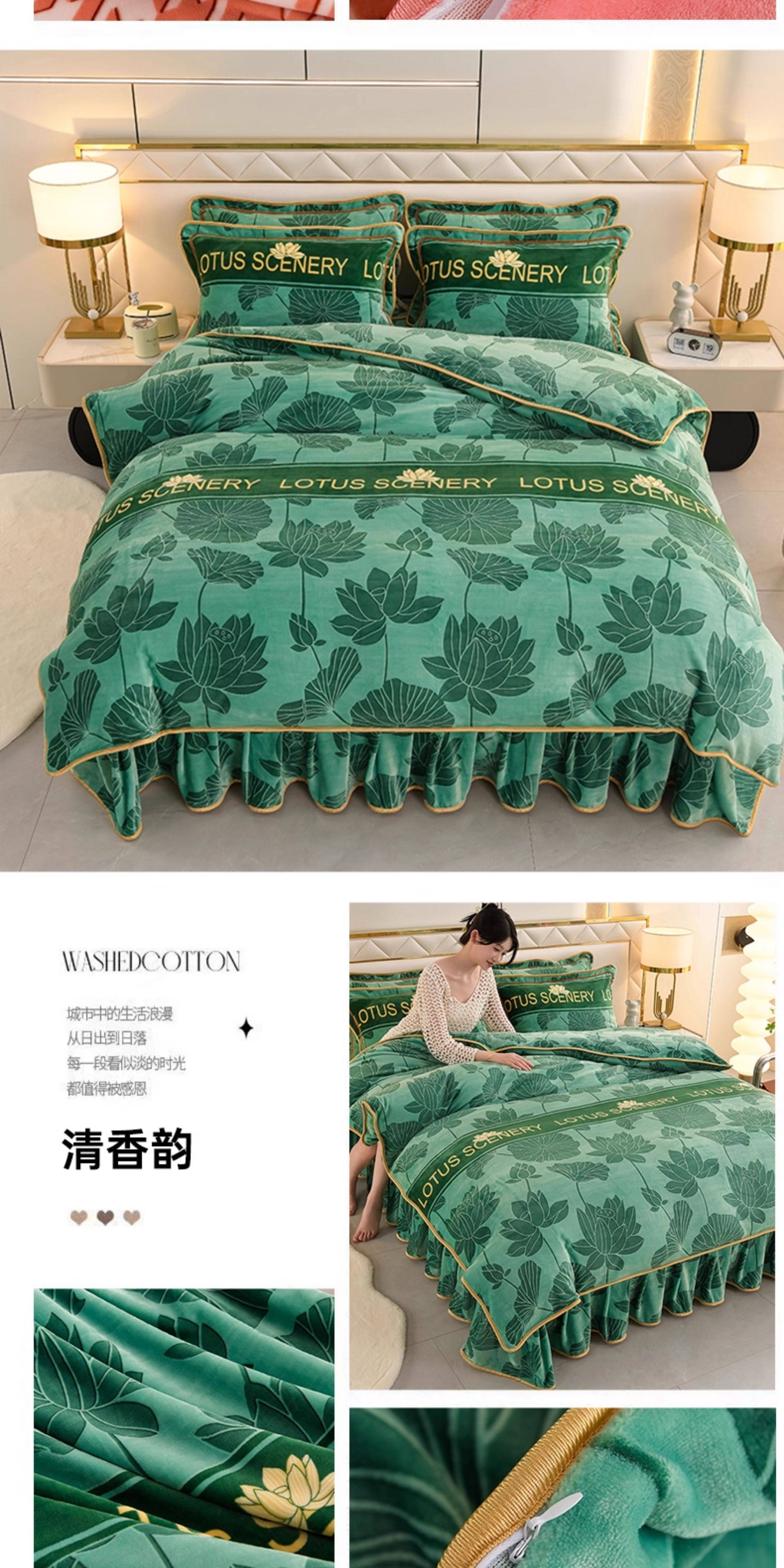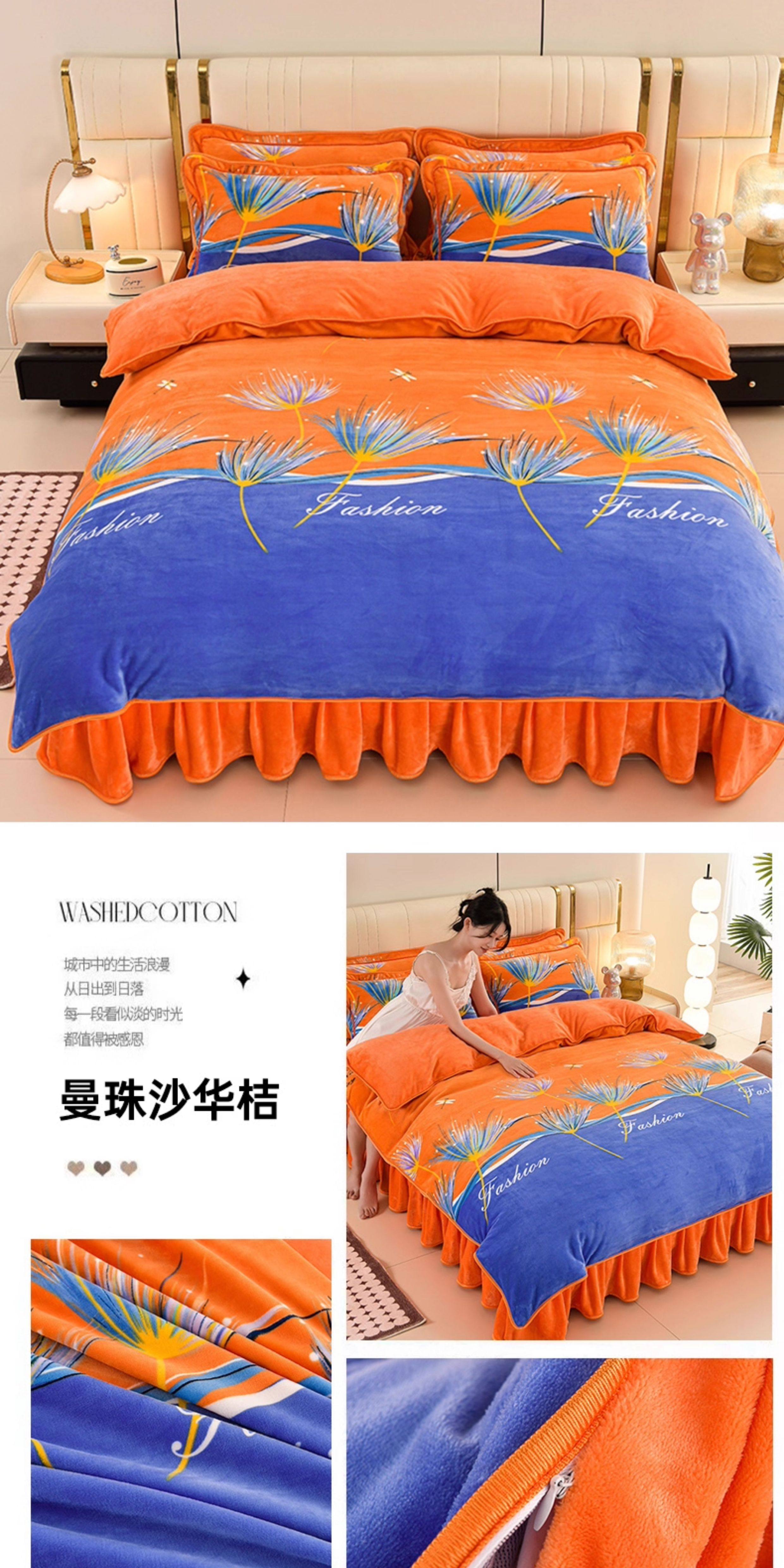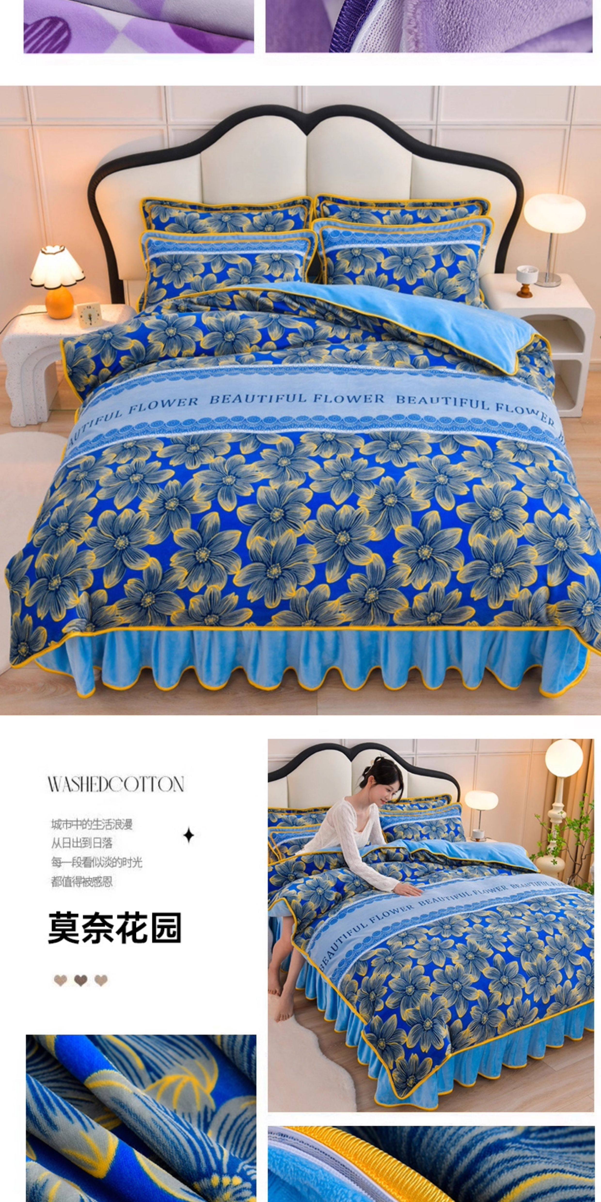 加厚牛奶絨床上四件套冬天季雙面加絨法蘭絨被套珊瑚絨床單床裙款