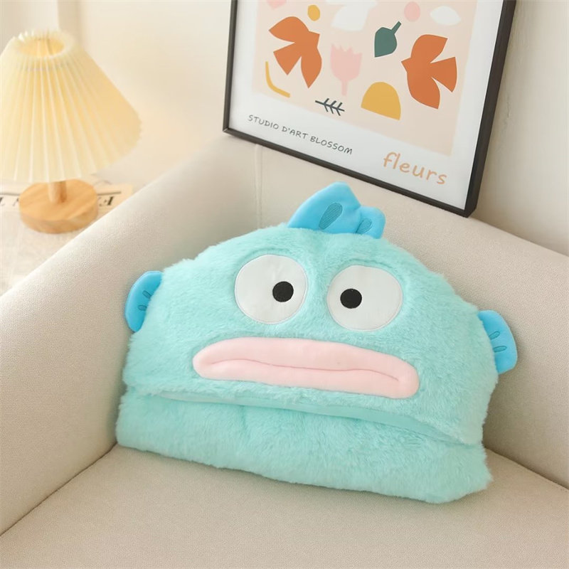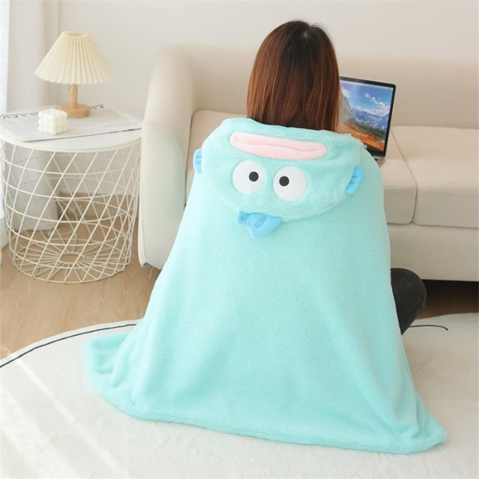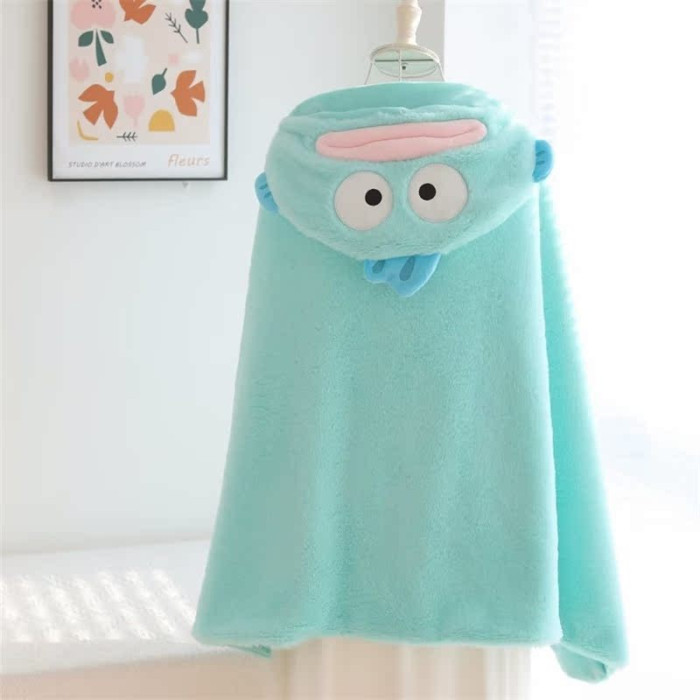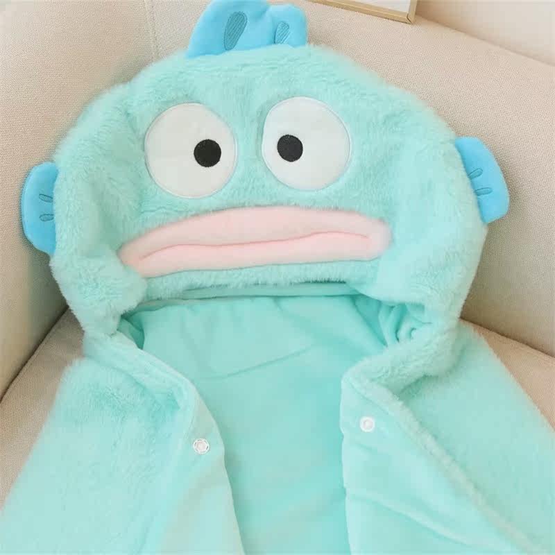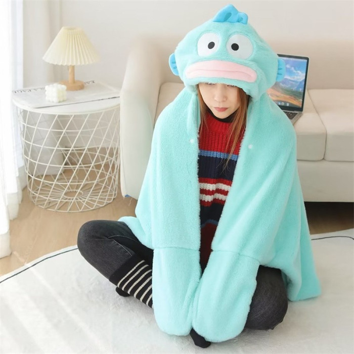 醜魚披肩毯子加厚保暖毛毯冬季學生午休毯鬥篷午睡毯懶人連帽披風