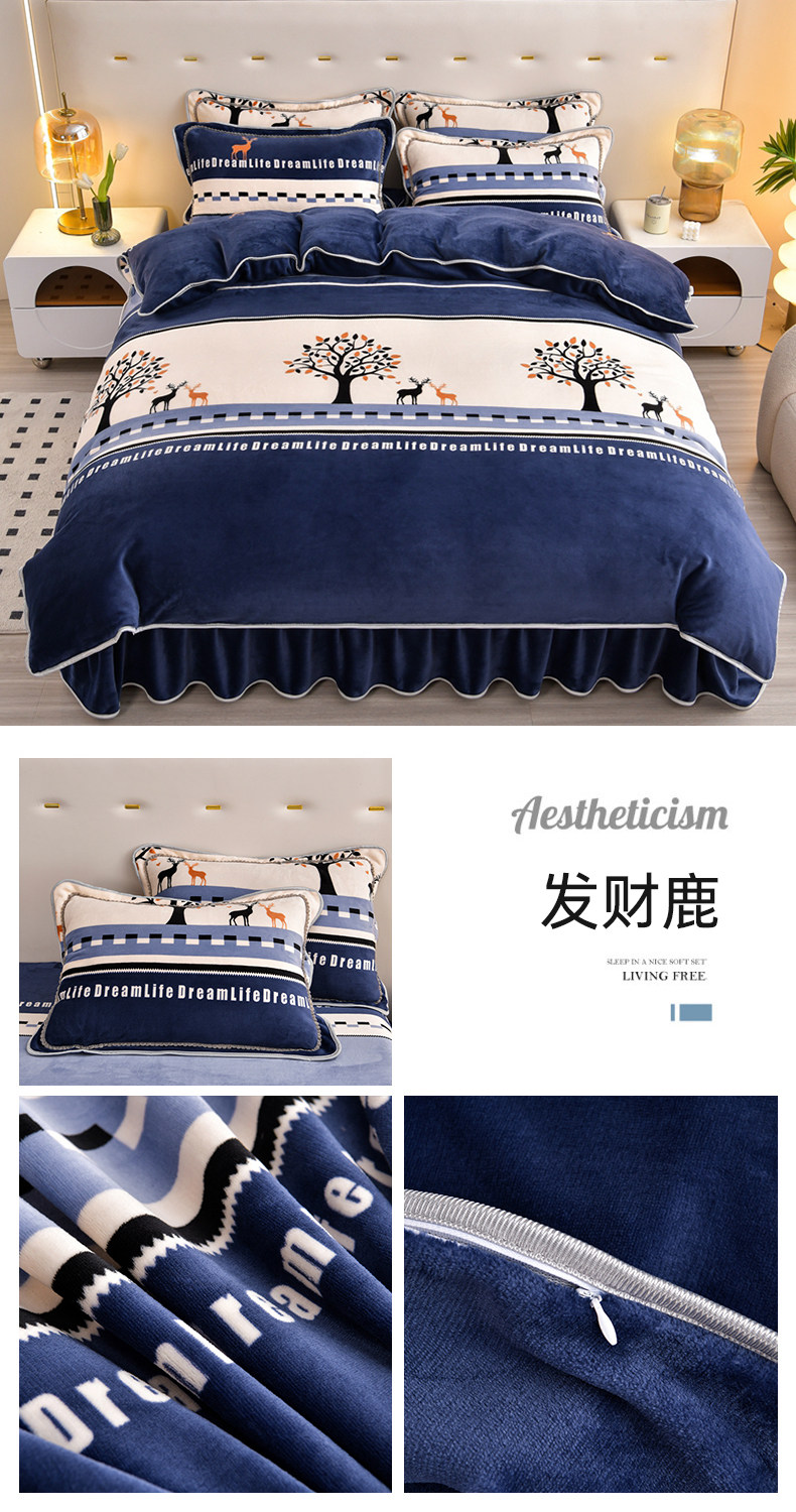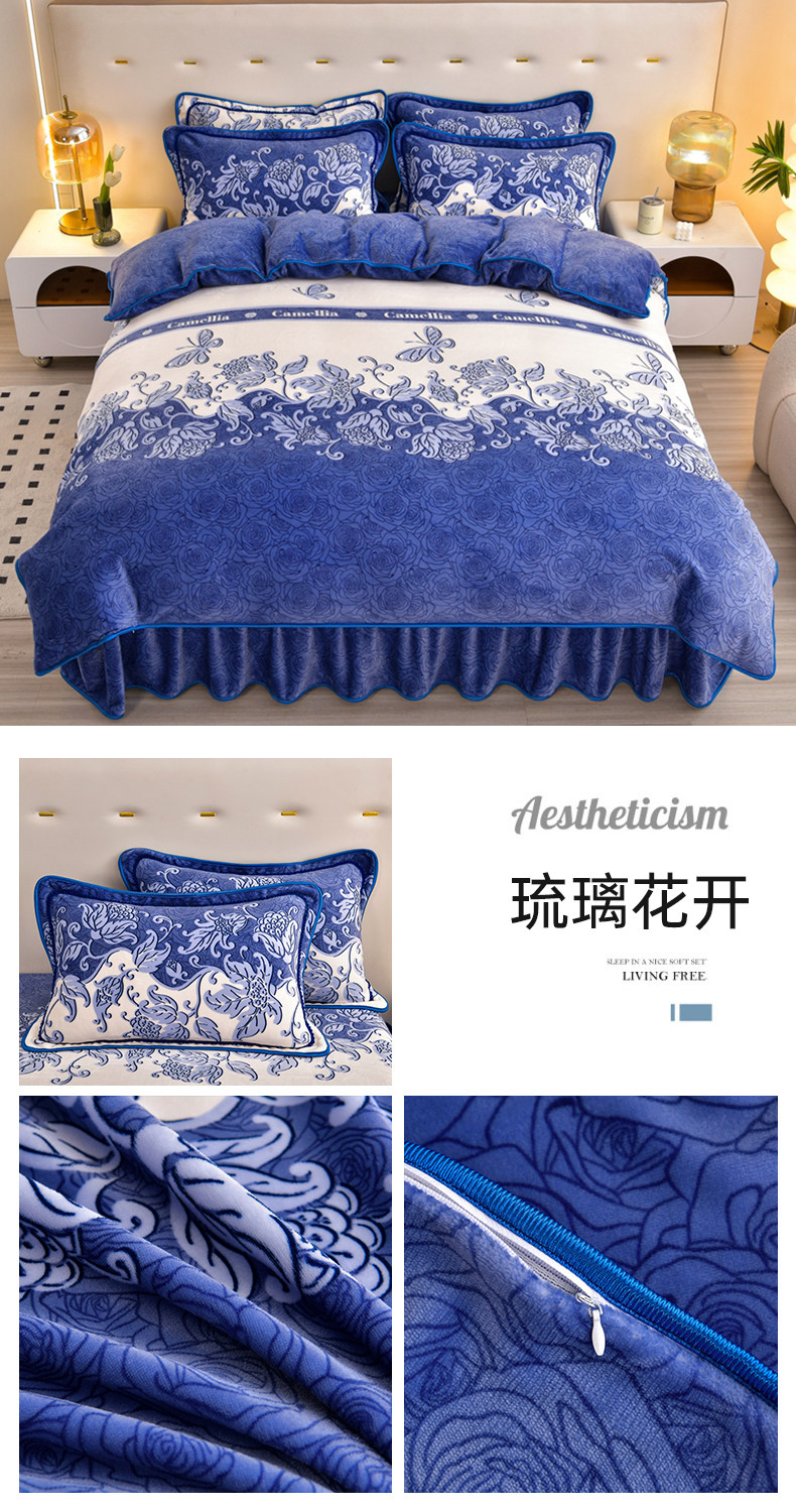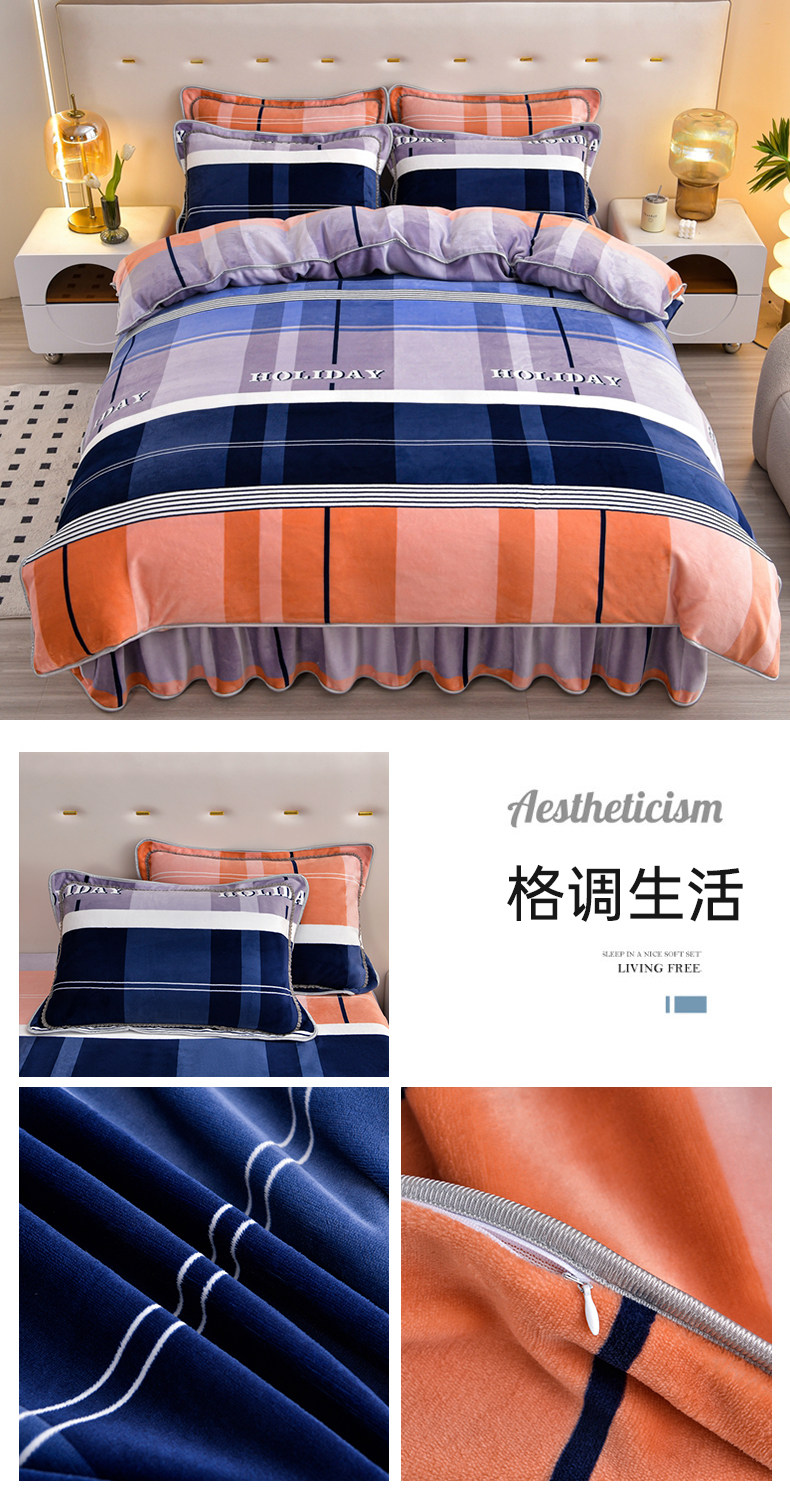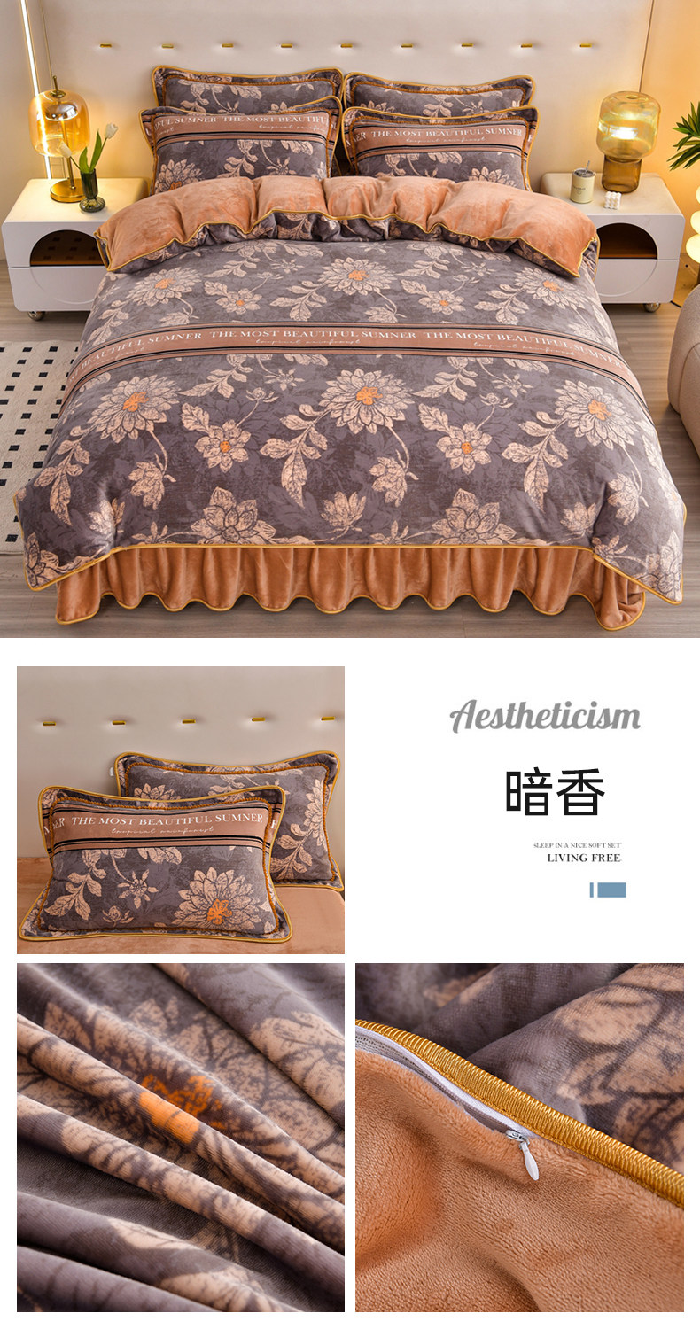 8.5斤冬季加厚牛奶絨單被套四件套雙面金貂絨被罩床裙款床上用品