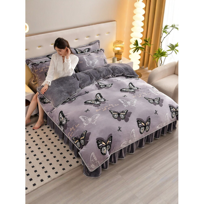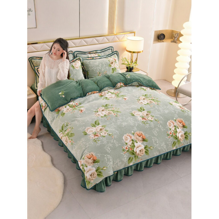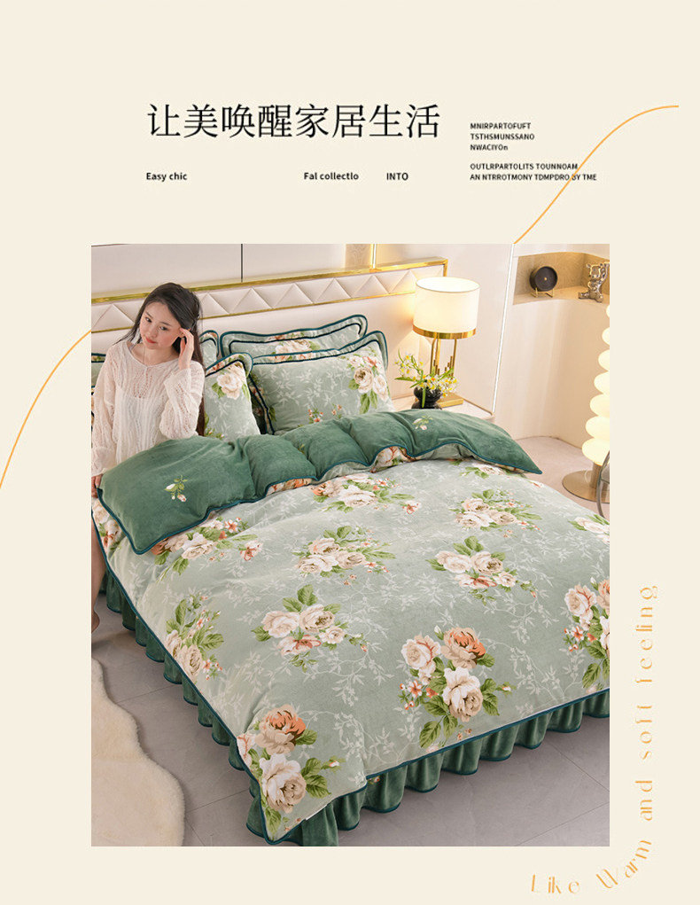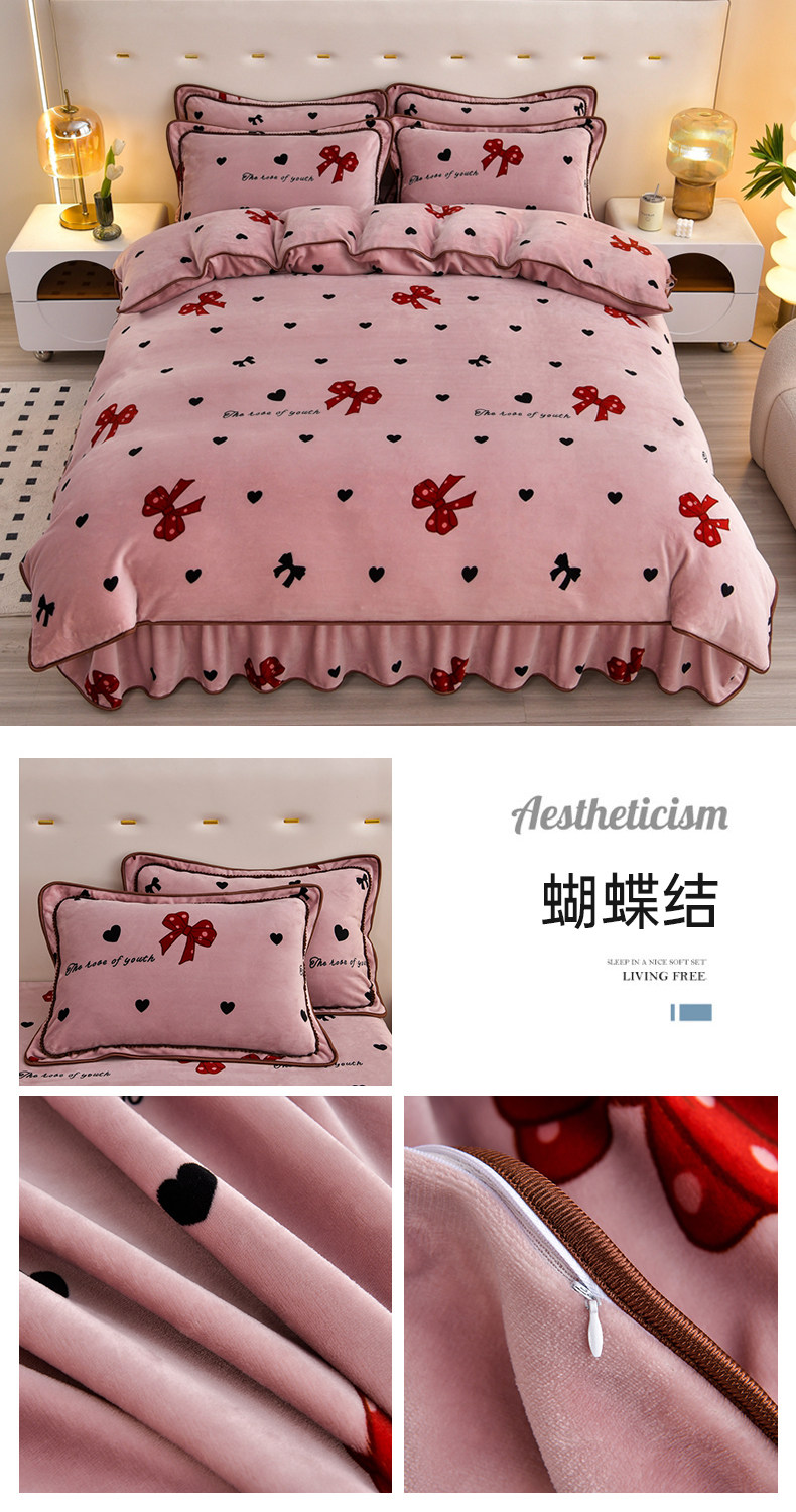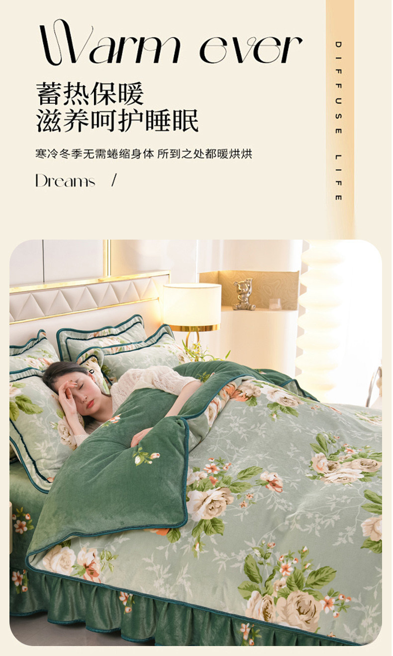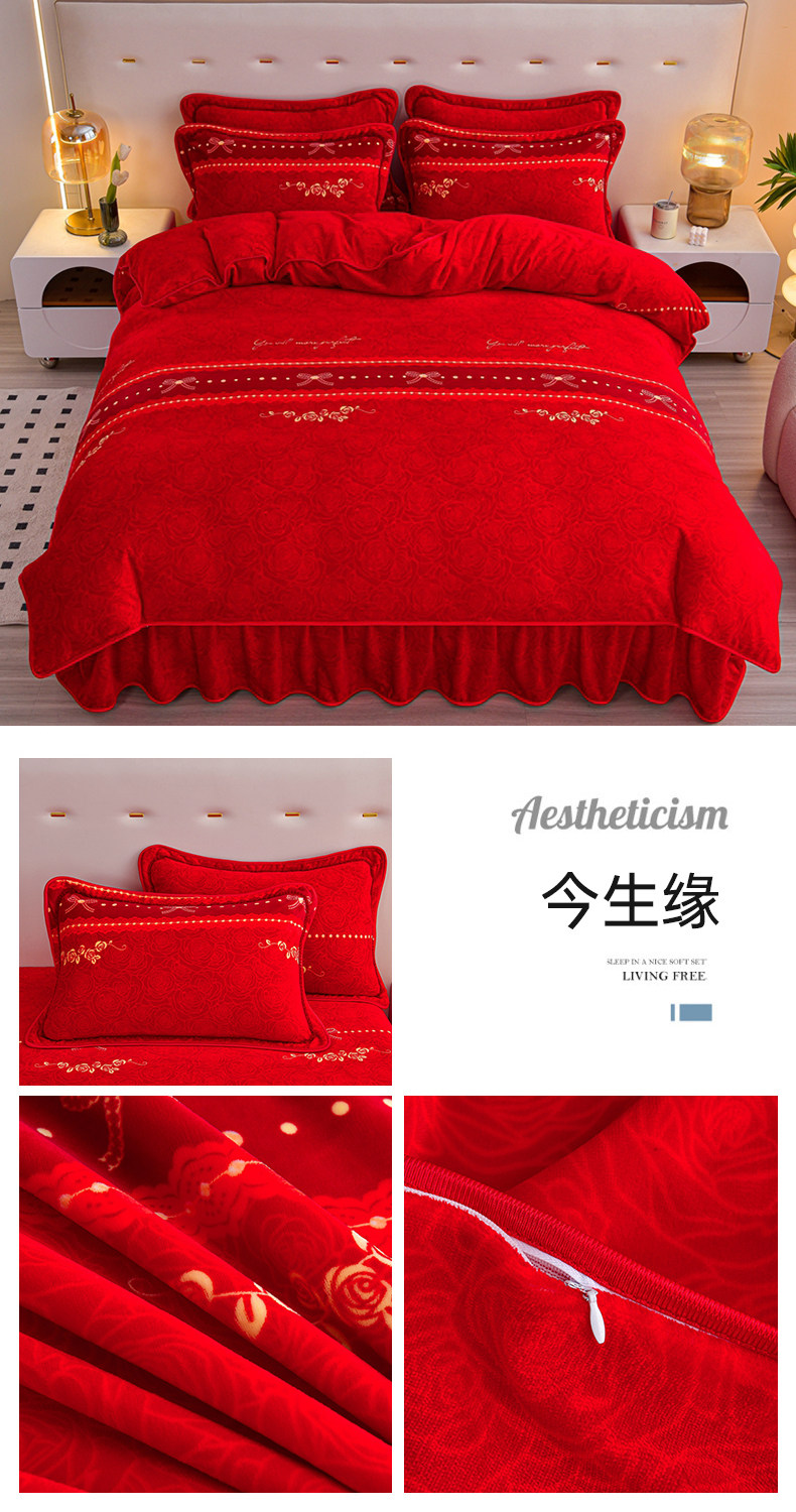 8.5斤冬季加厚牛奶絨單被套四件套雙面金貂絨被罩床裙款床上用品
