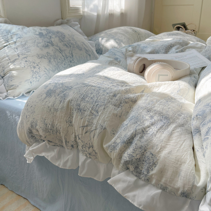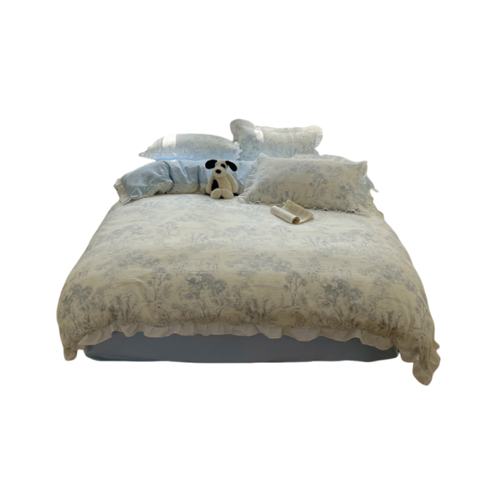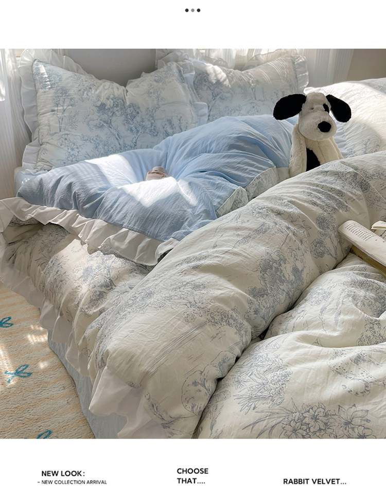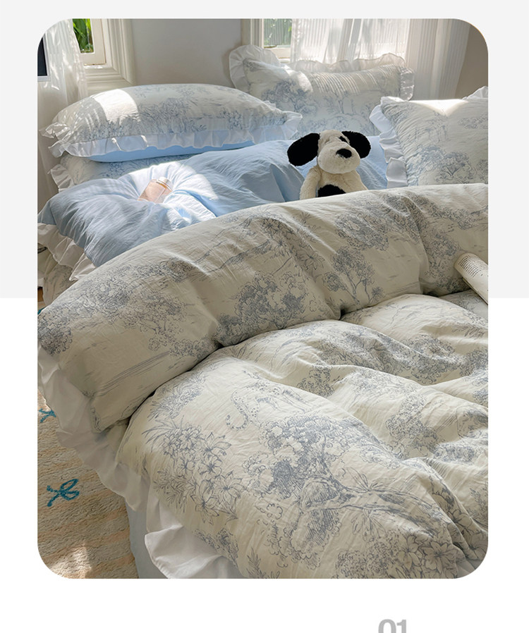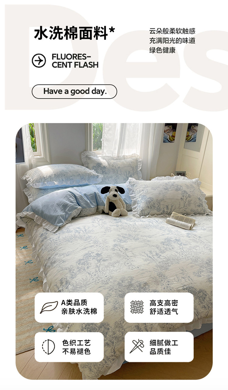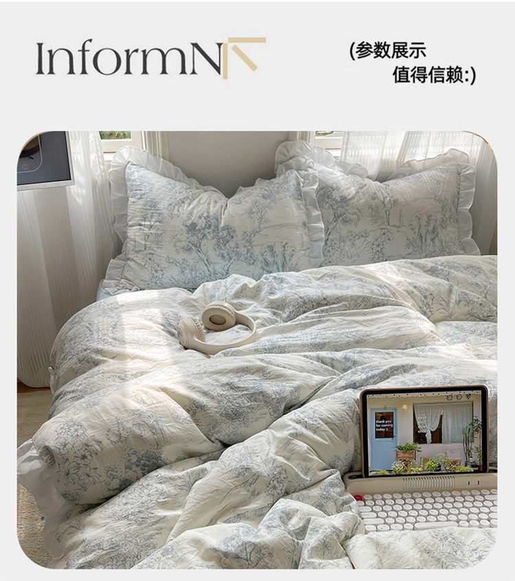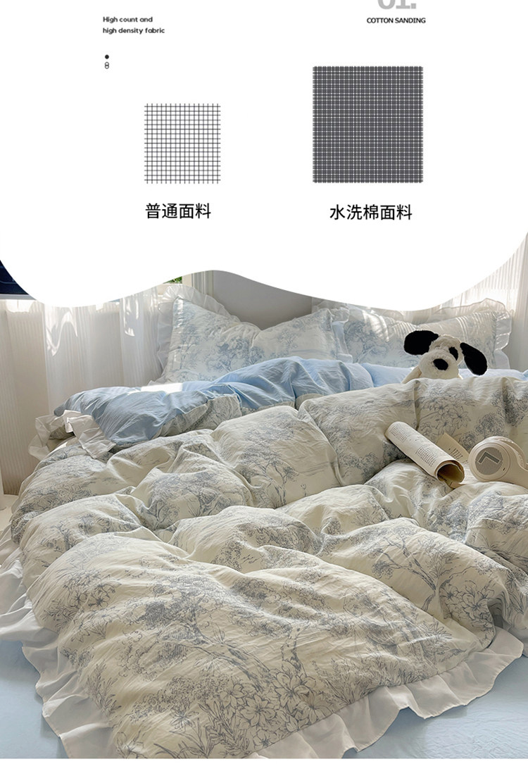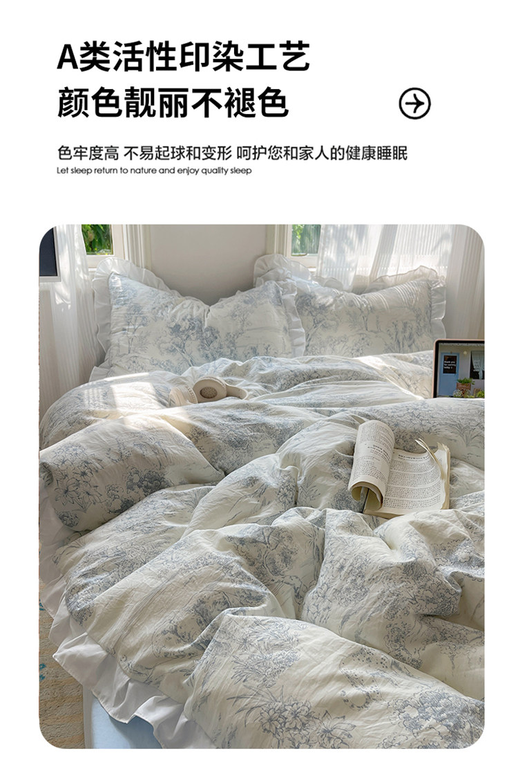 小紅書推薦公主風裸睡純棉全棉四件套少女心花邊床單被罩床上用品