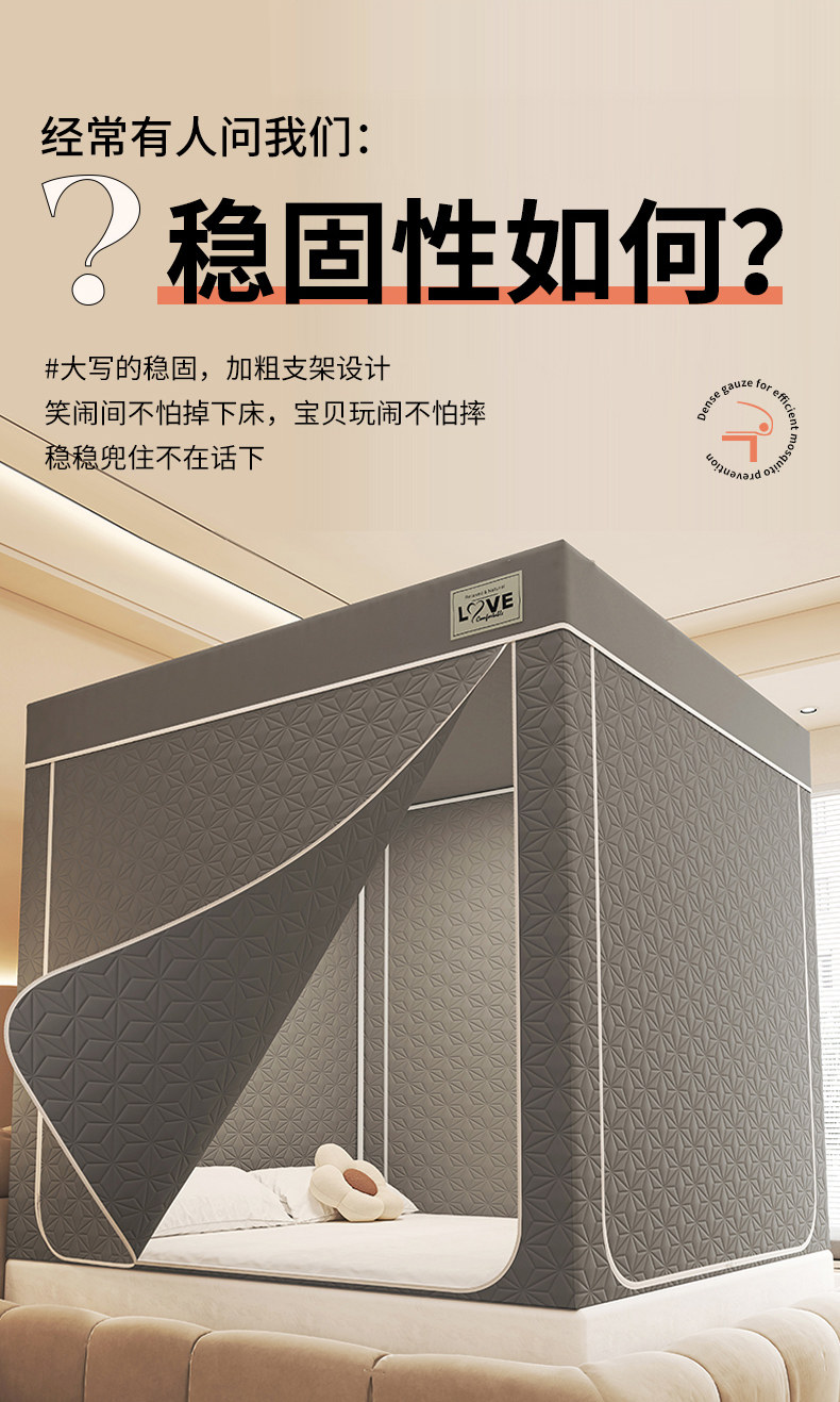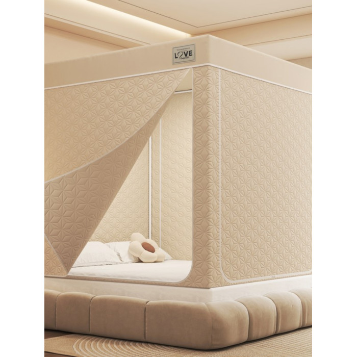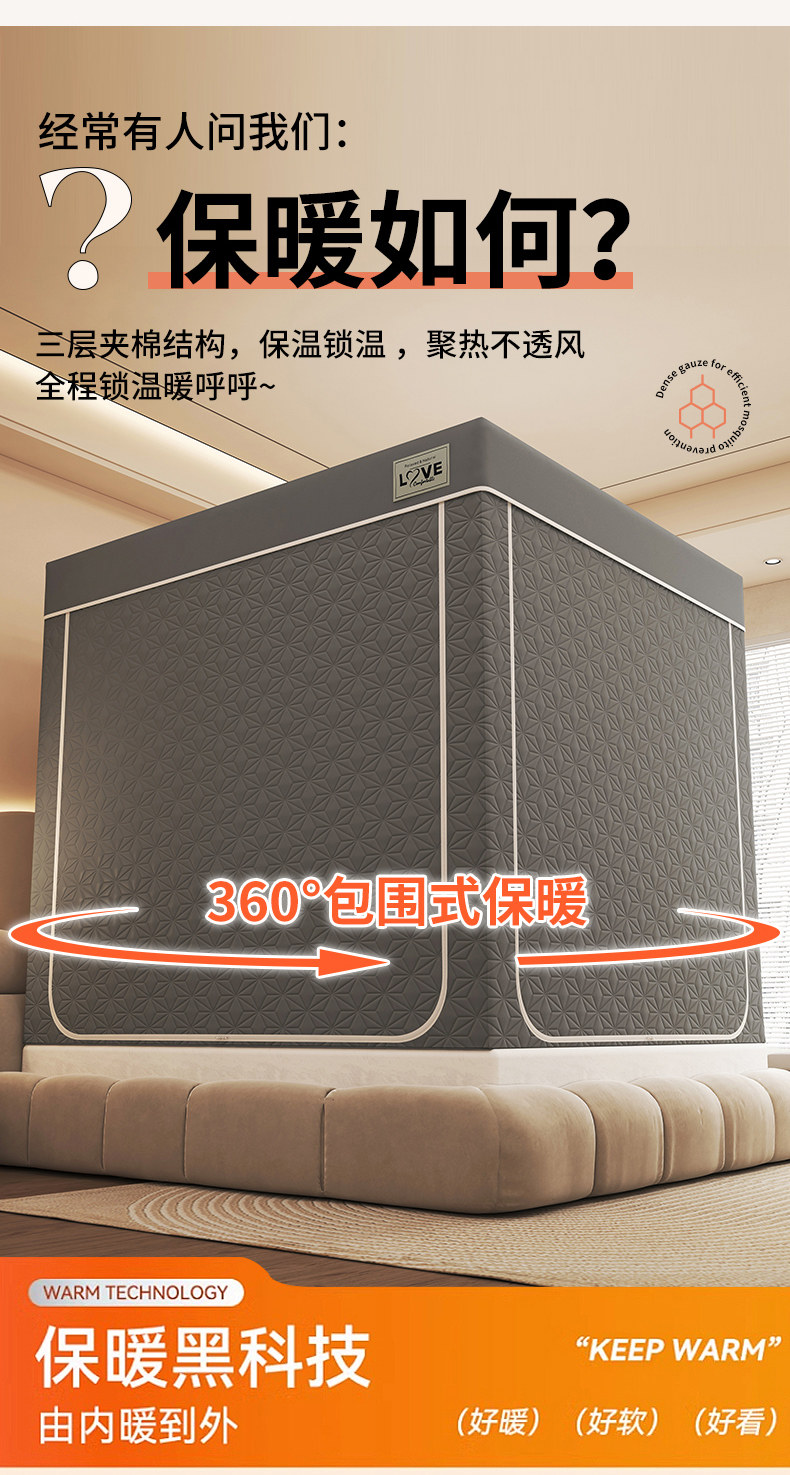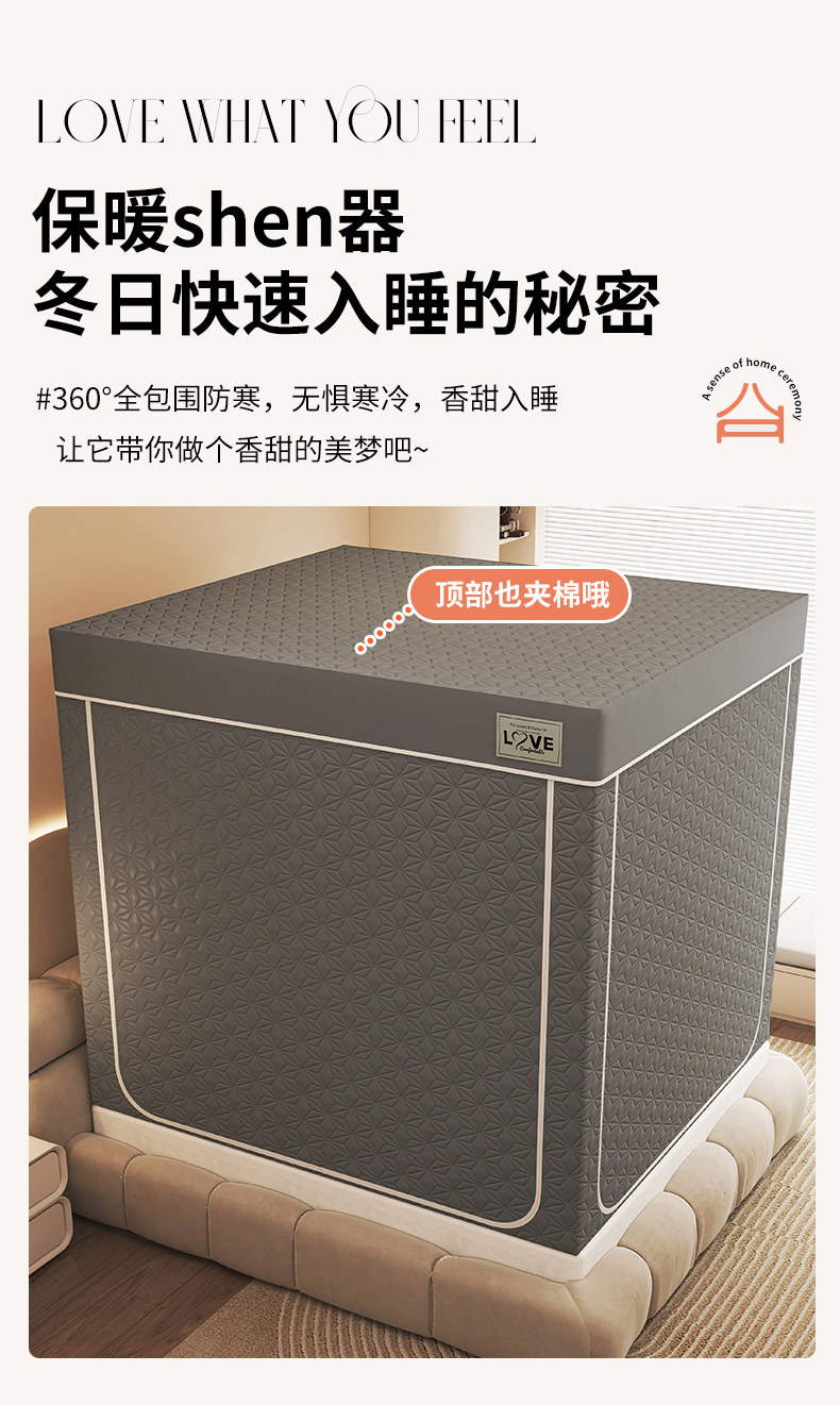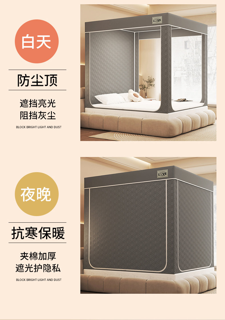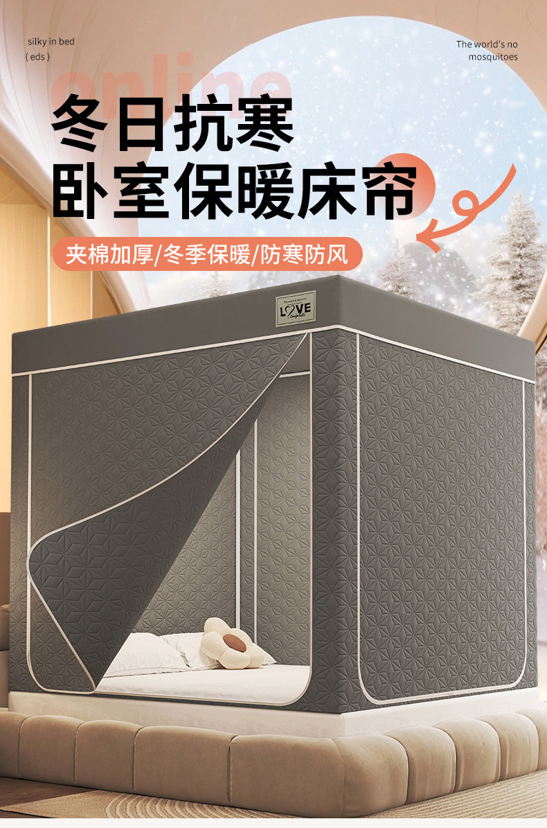 加厚保暖五面夾棉床簾床幔遮光防風帳篷室內防寒廻底三開門拉鍊帳