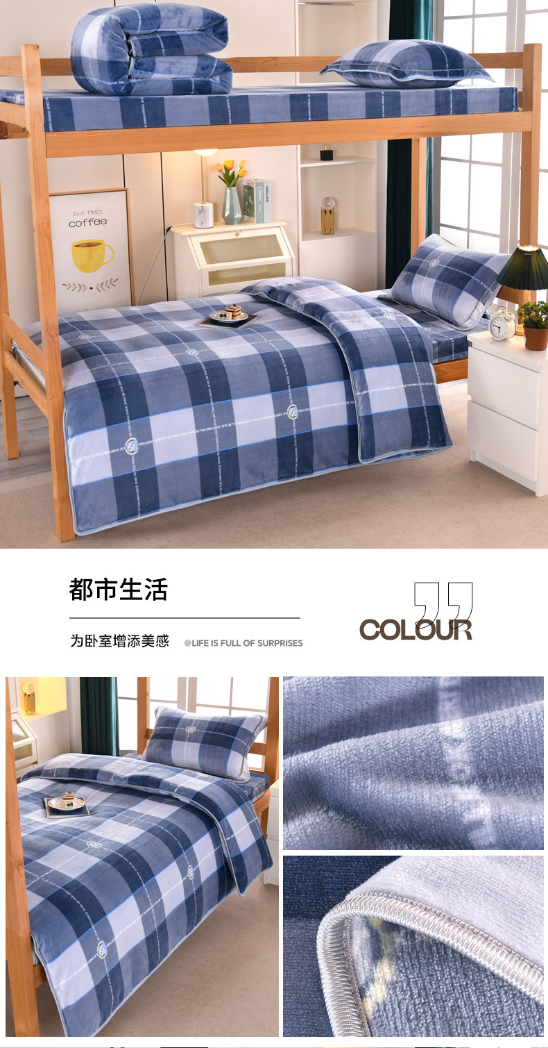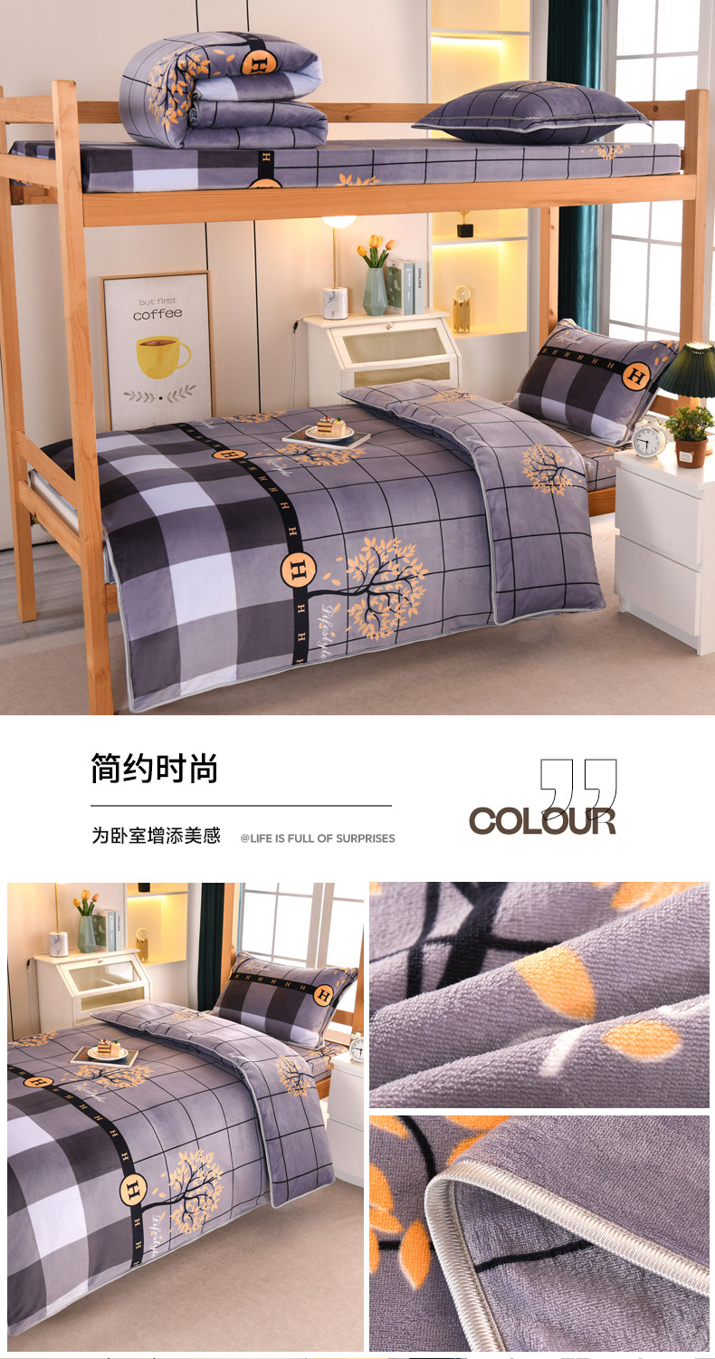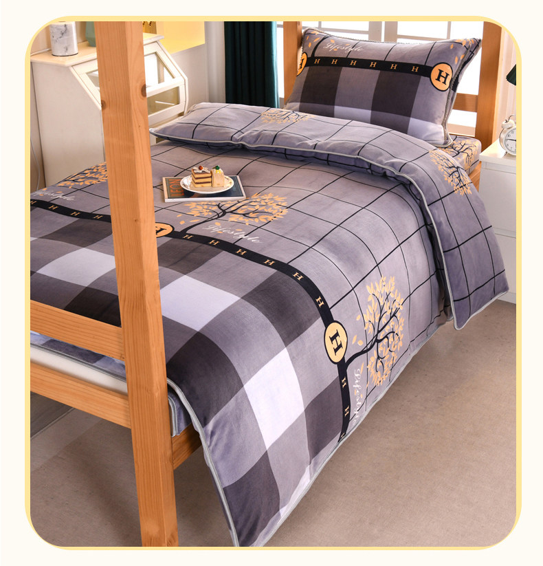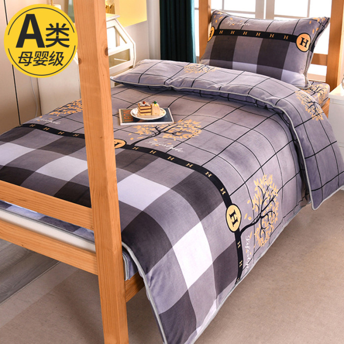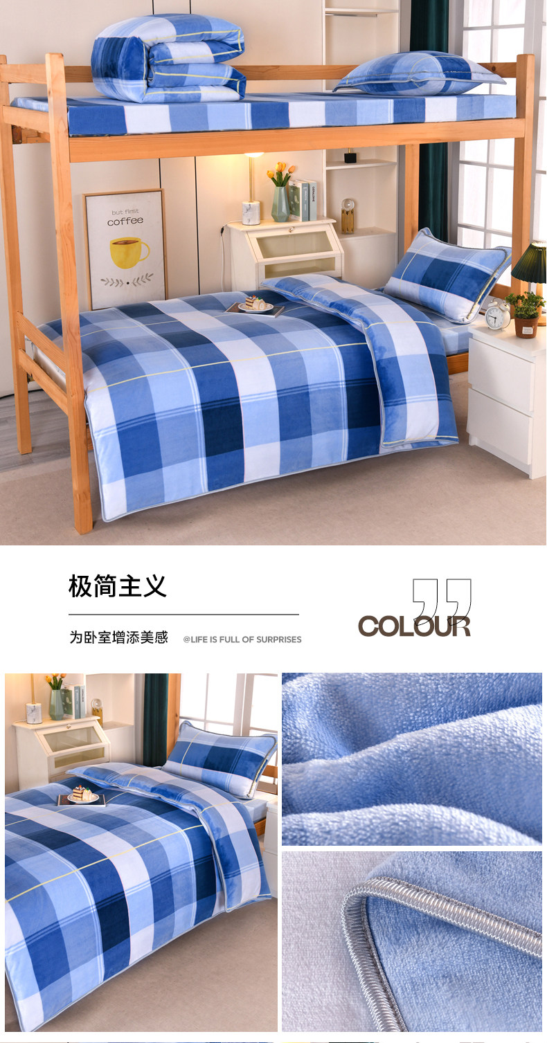 A類牛奶絨單人宿捨床上三件套加絨床單被套150x200被罩珊瑚絨加厚