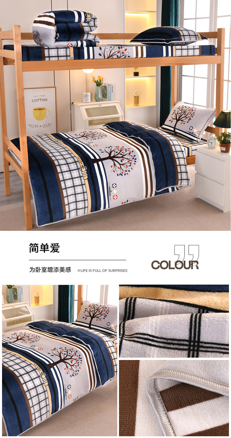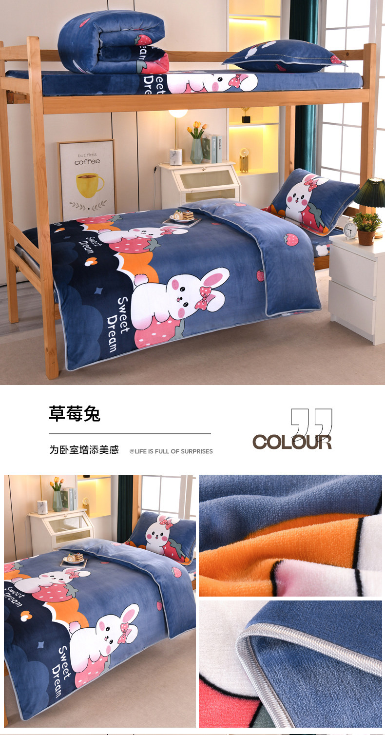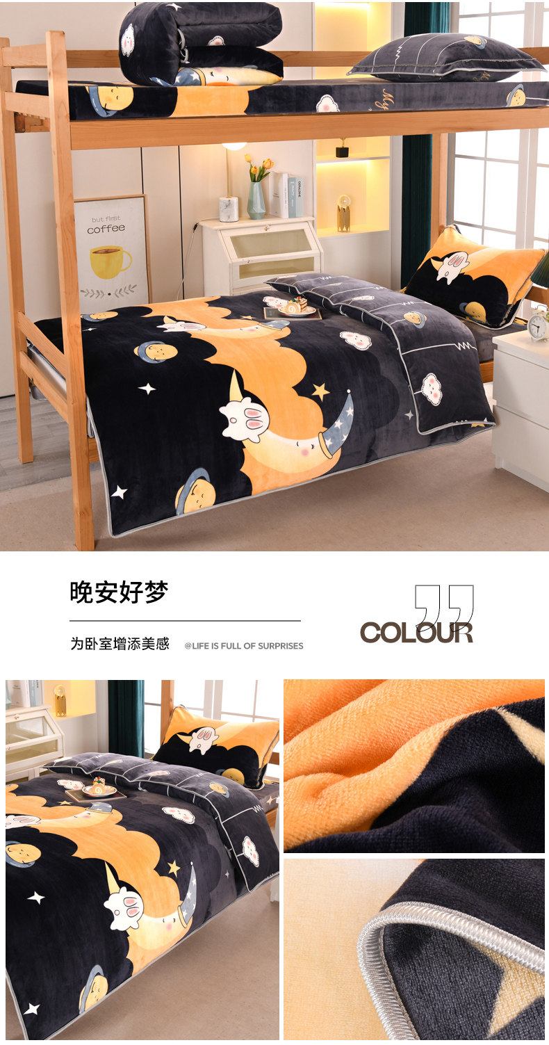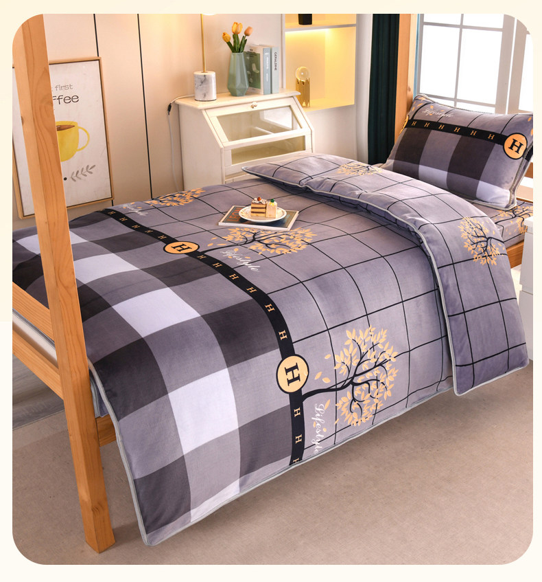 A類牛奶絨單人宿捨床上三件套加絨床單被套150x200被罩珊瑚絨加厚