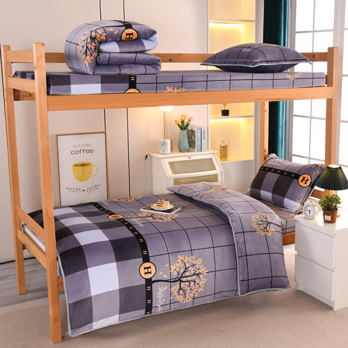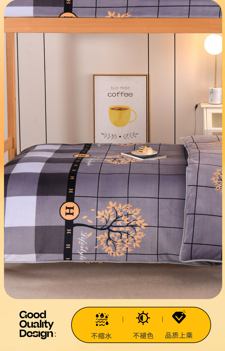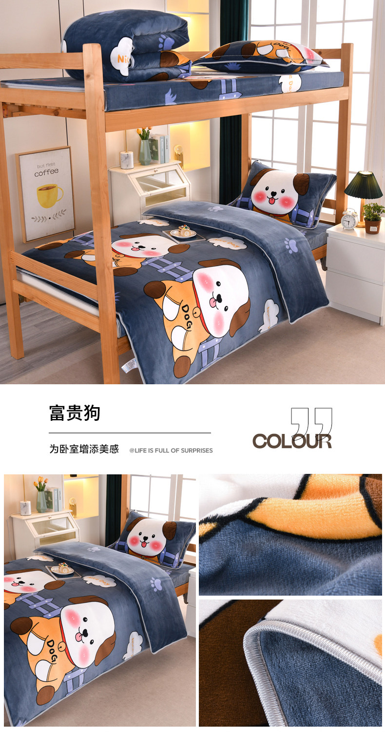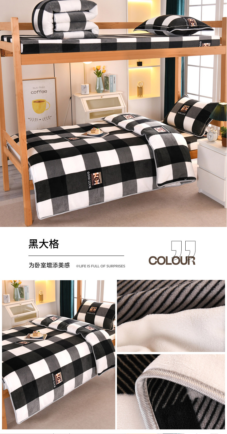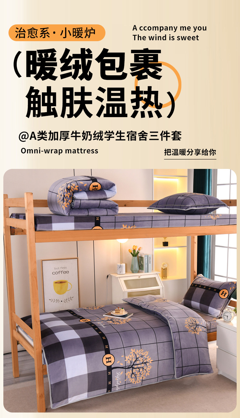 A類牛奶絨單人宿捨床上三件套加絨床單被套150x200被罩珊瑚絨加厚