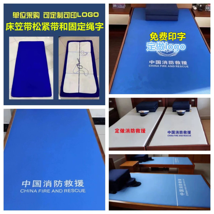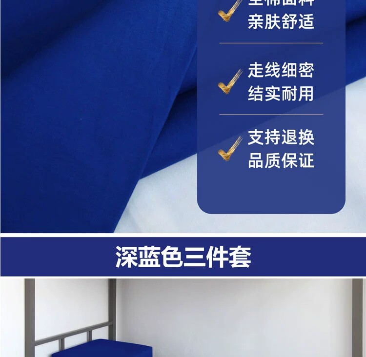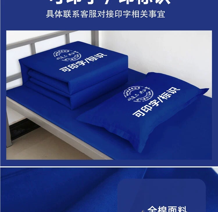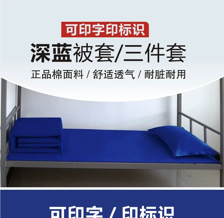藍色純棉床單三件套單位宿捨床上用品單人床消防火焰藍被套