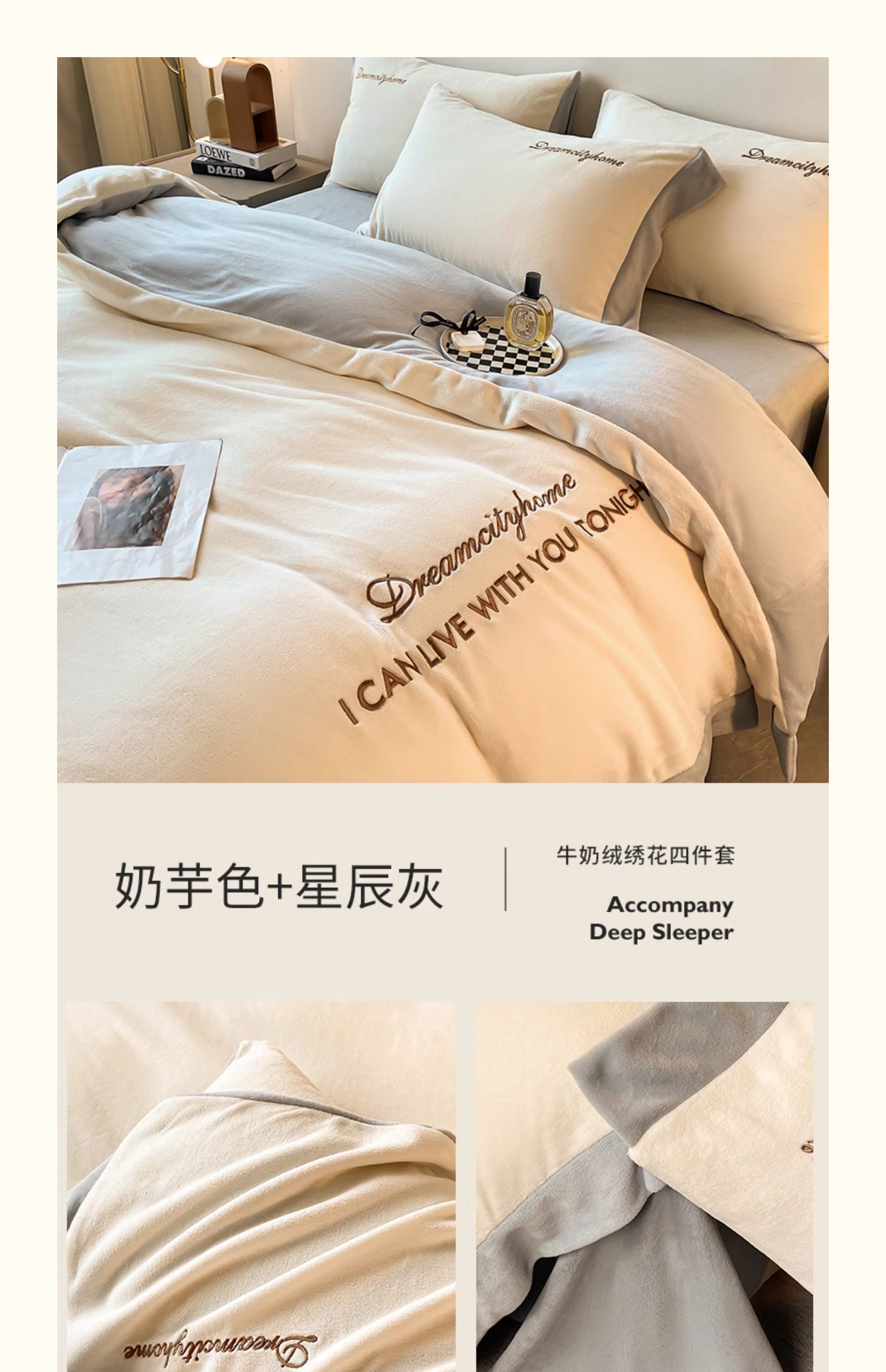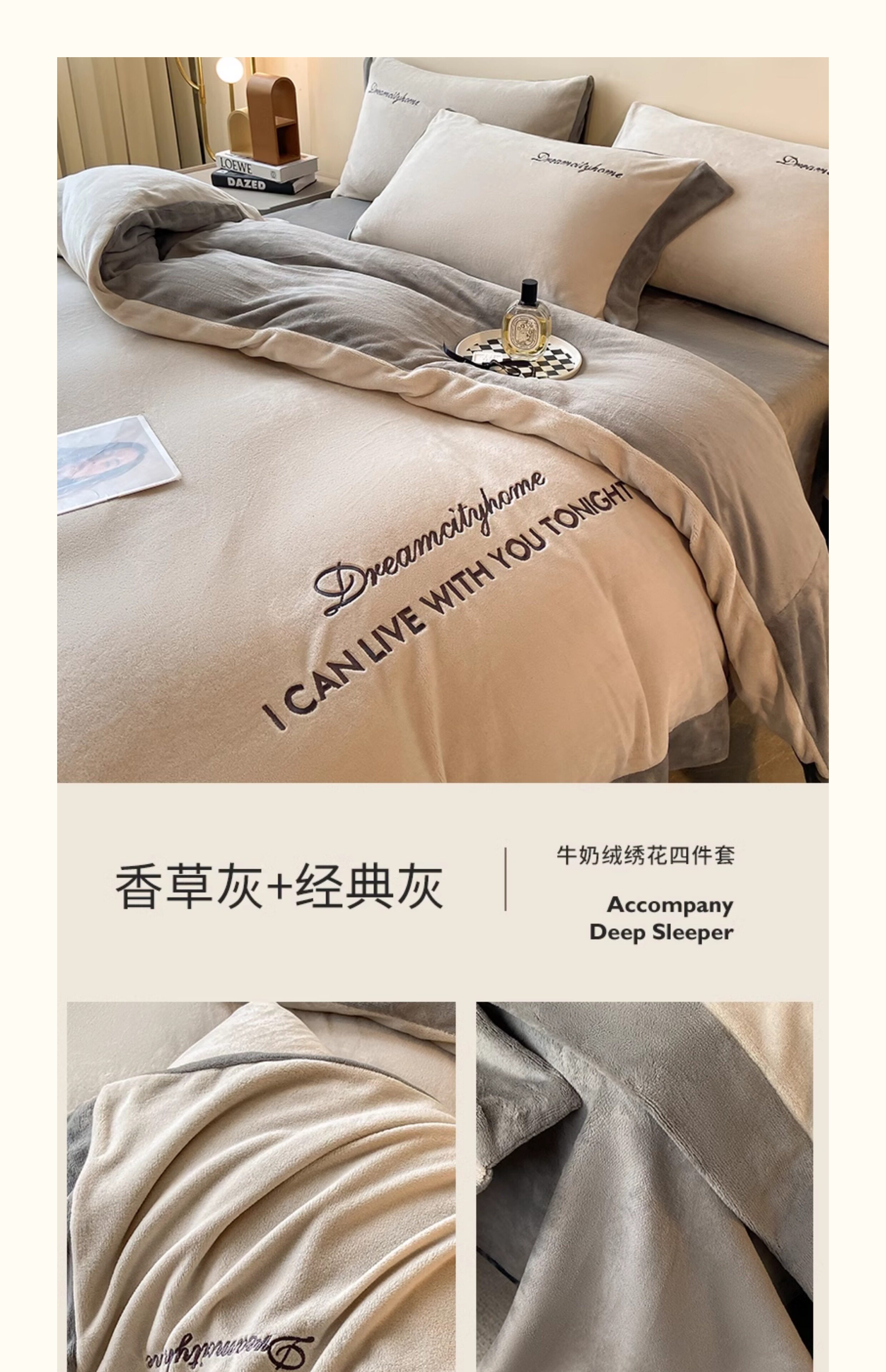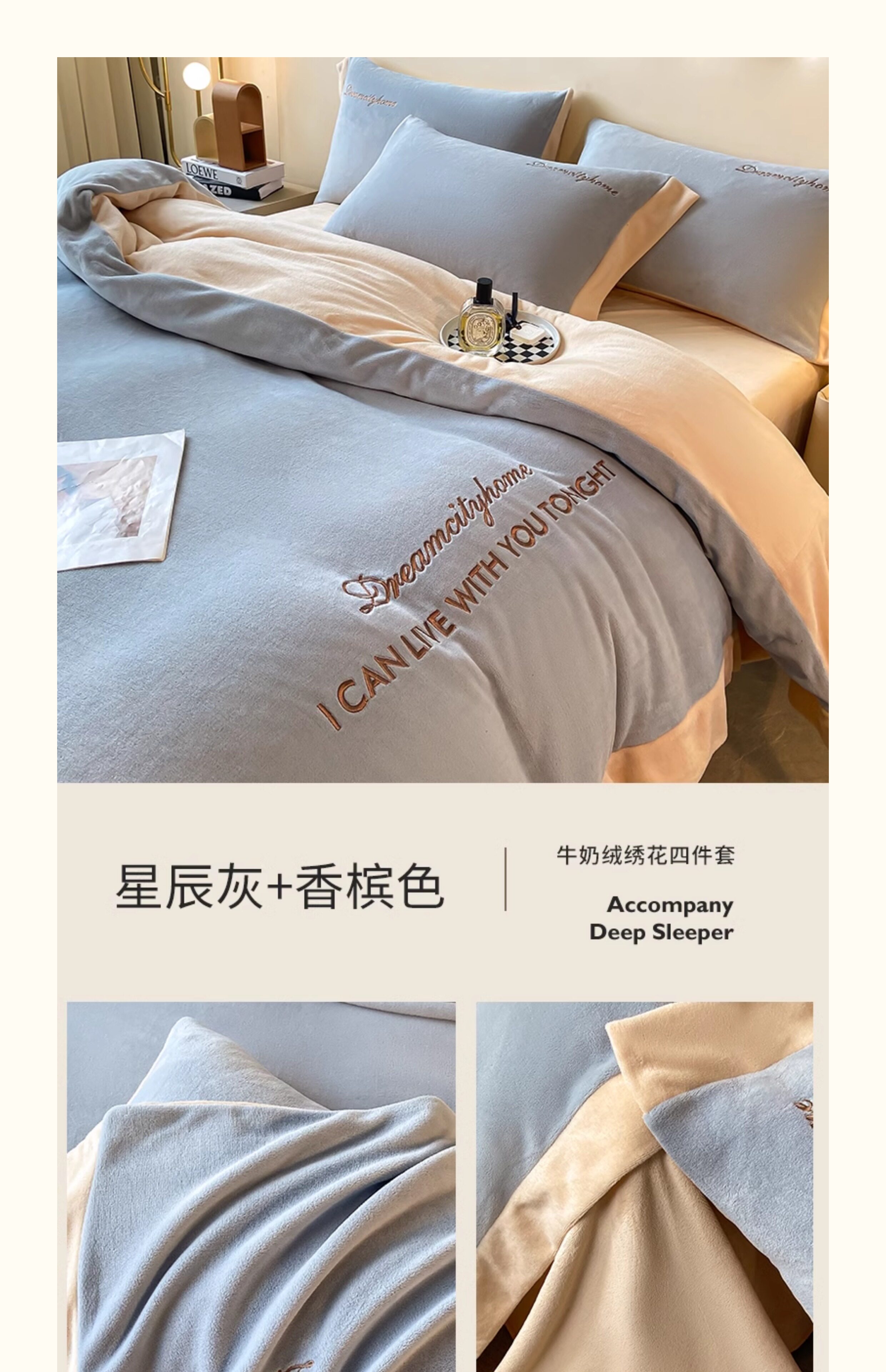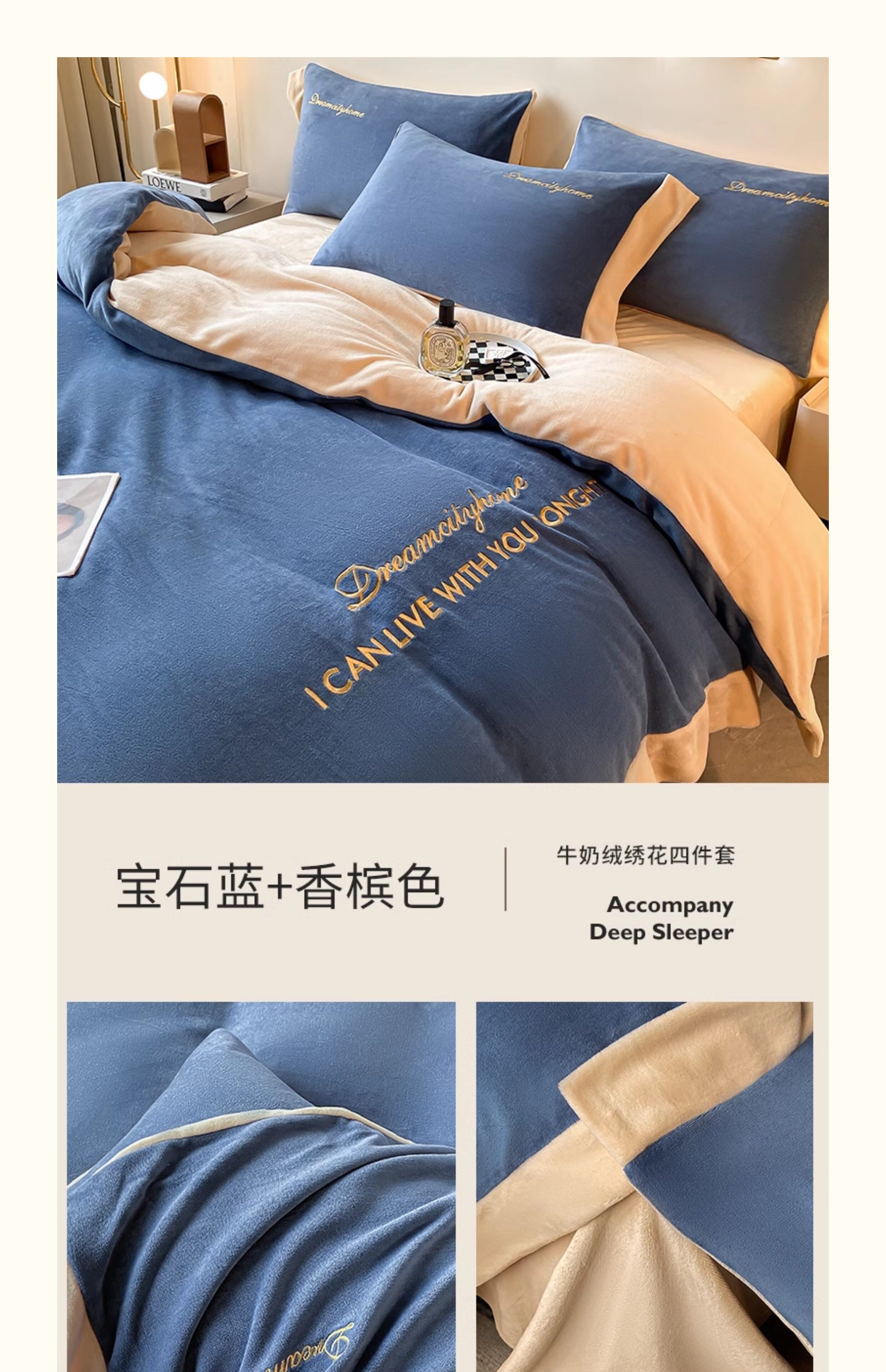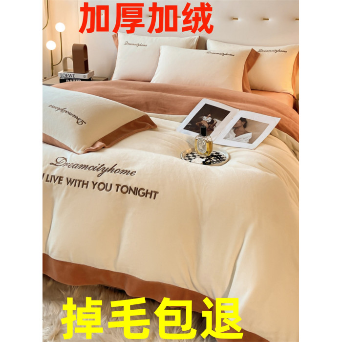 冬季牛奶絨床上四件套加絨加厚珊瑚法萊絨被套床單學生宿捨三件套