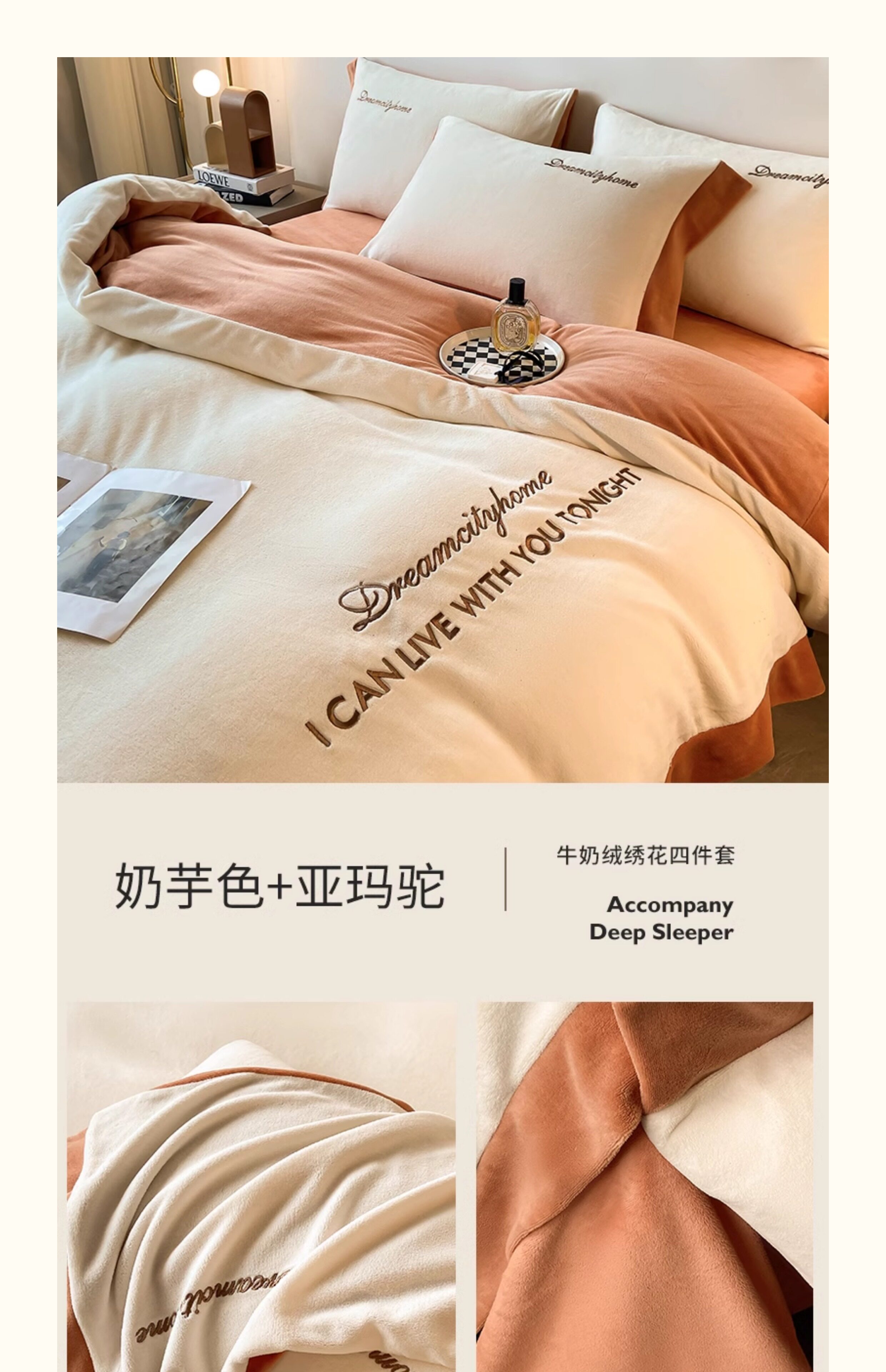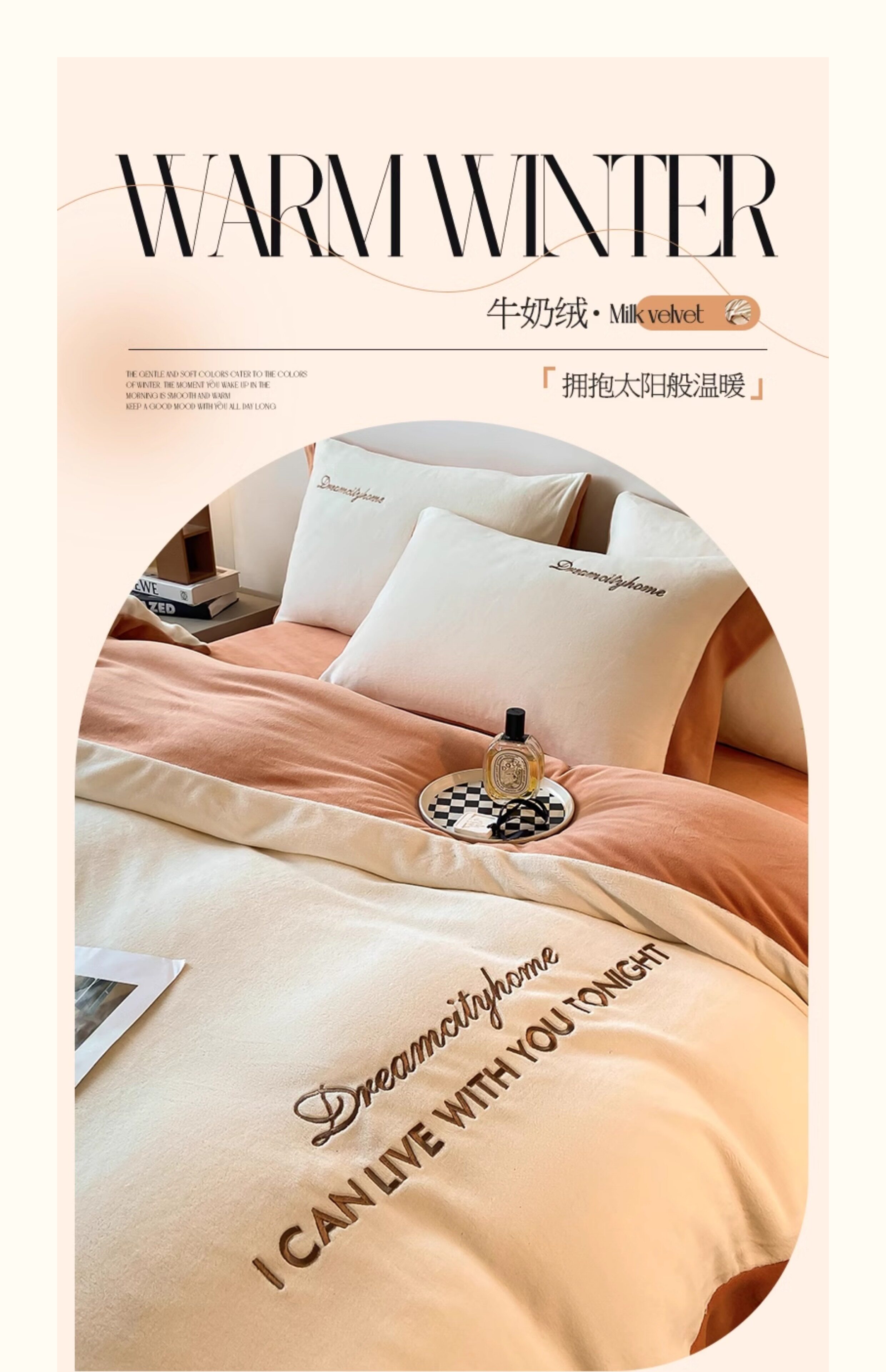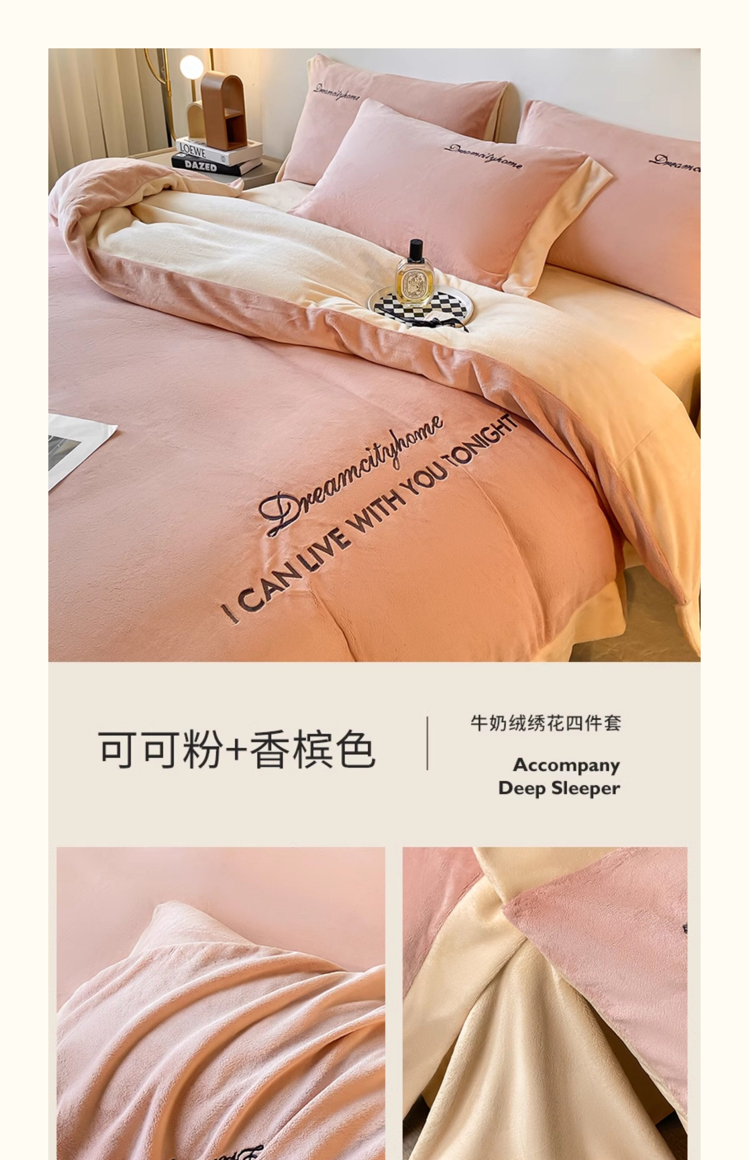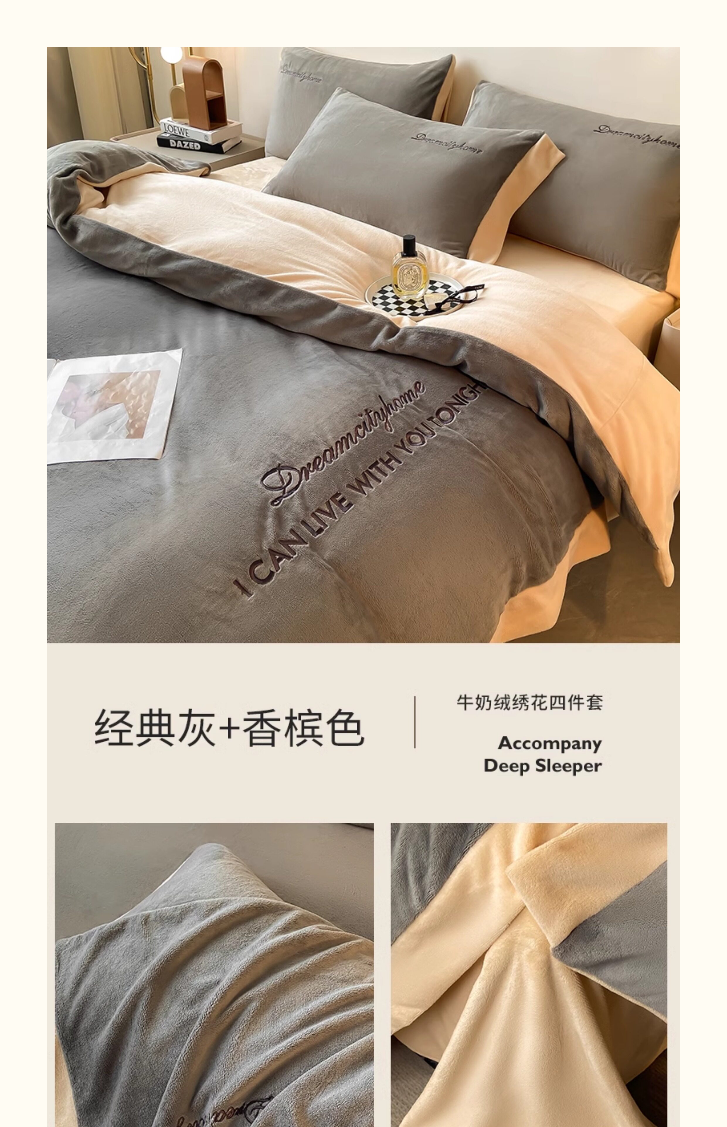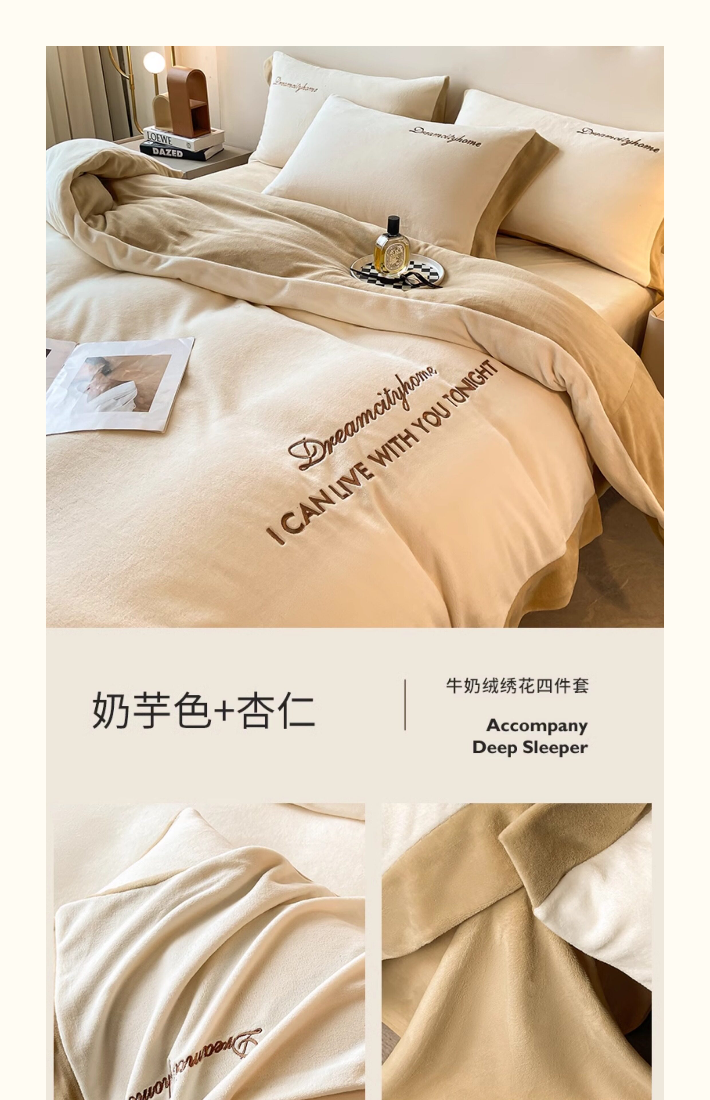 冬季牛奶絨床上四件套加絨加厚珊瑚法萊絨被套床單學生宿捨三件套