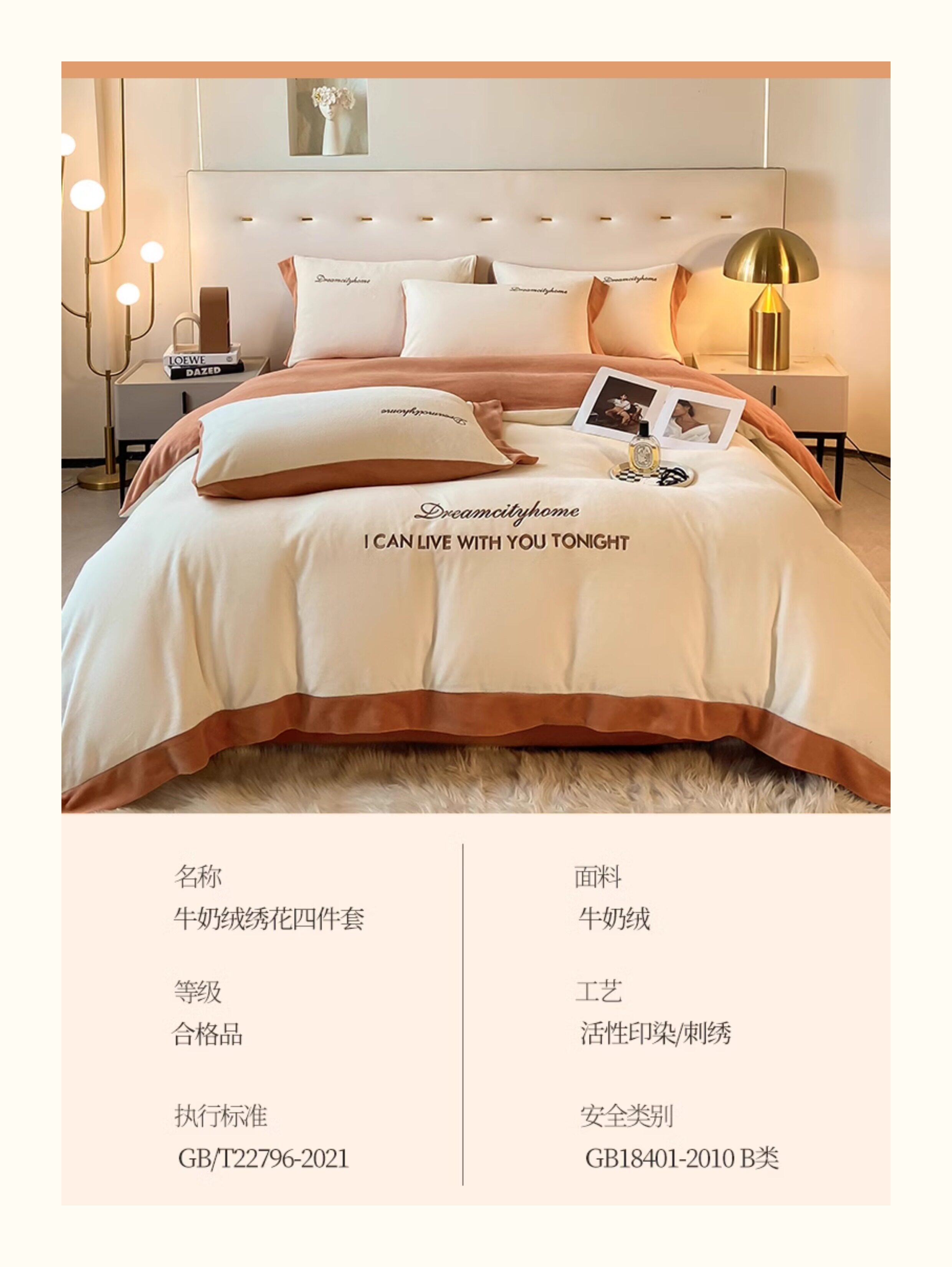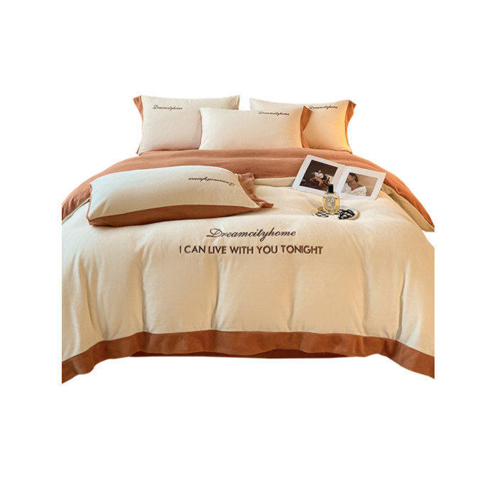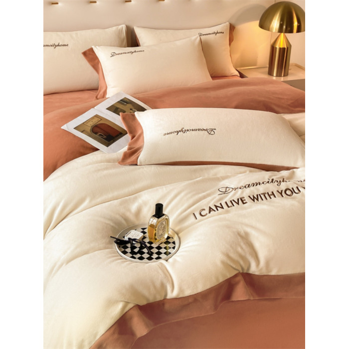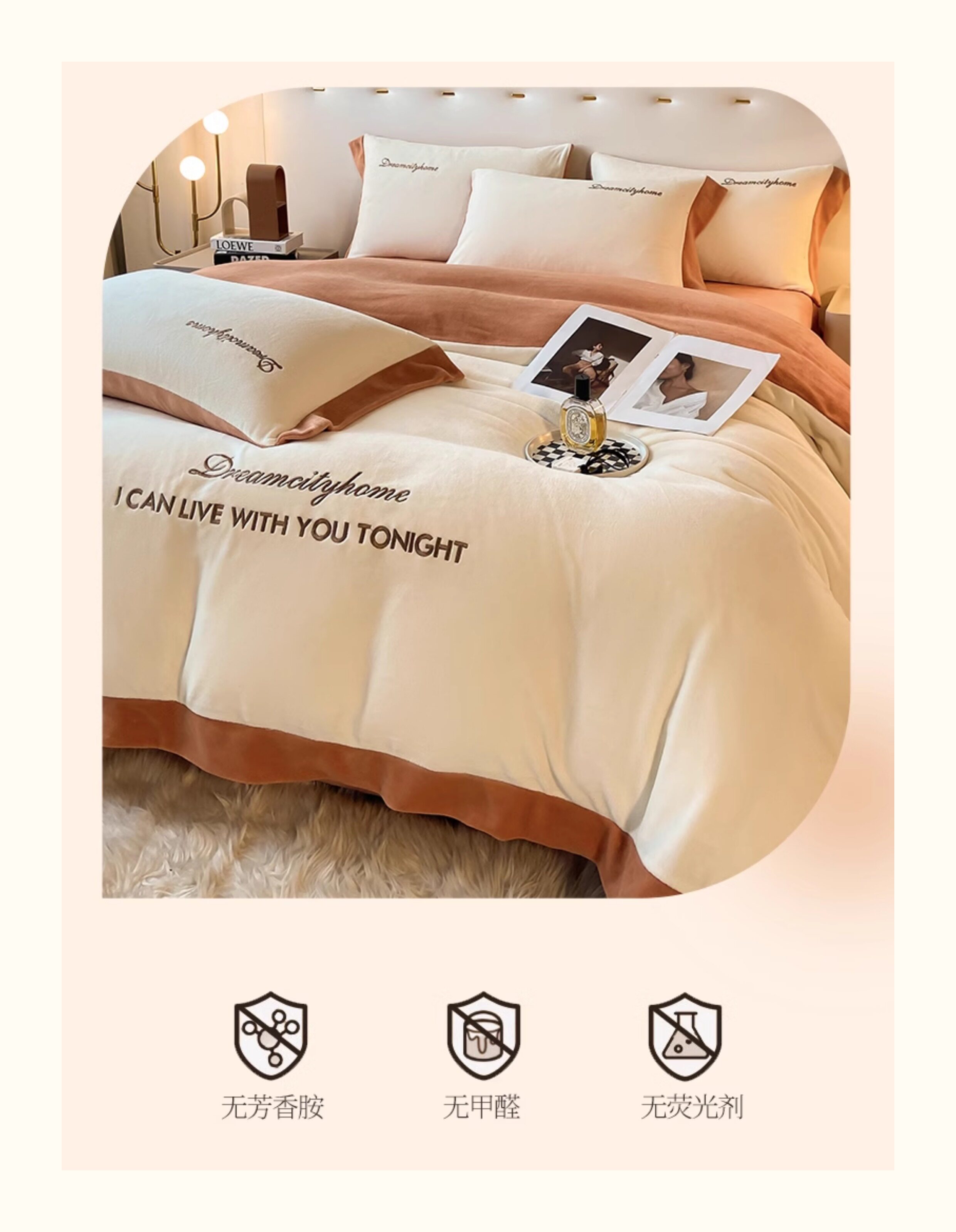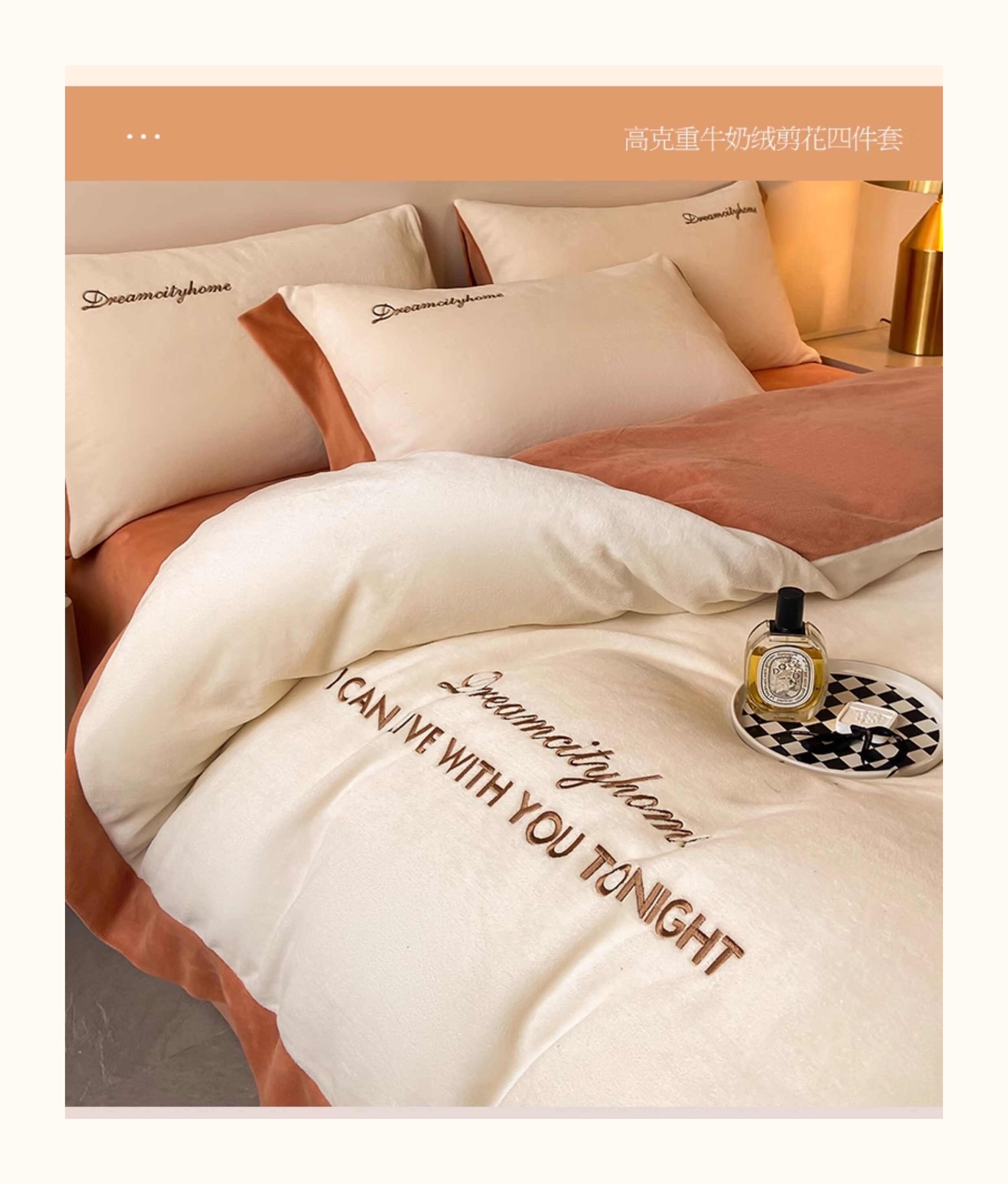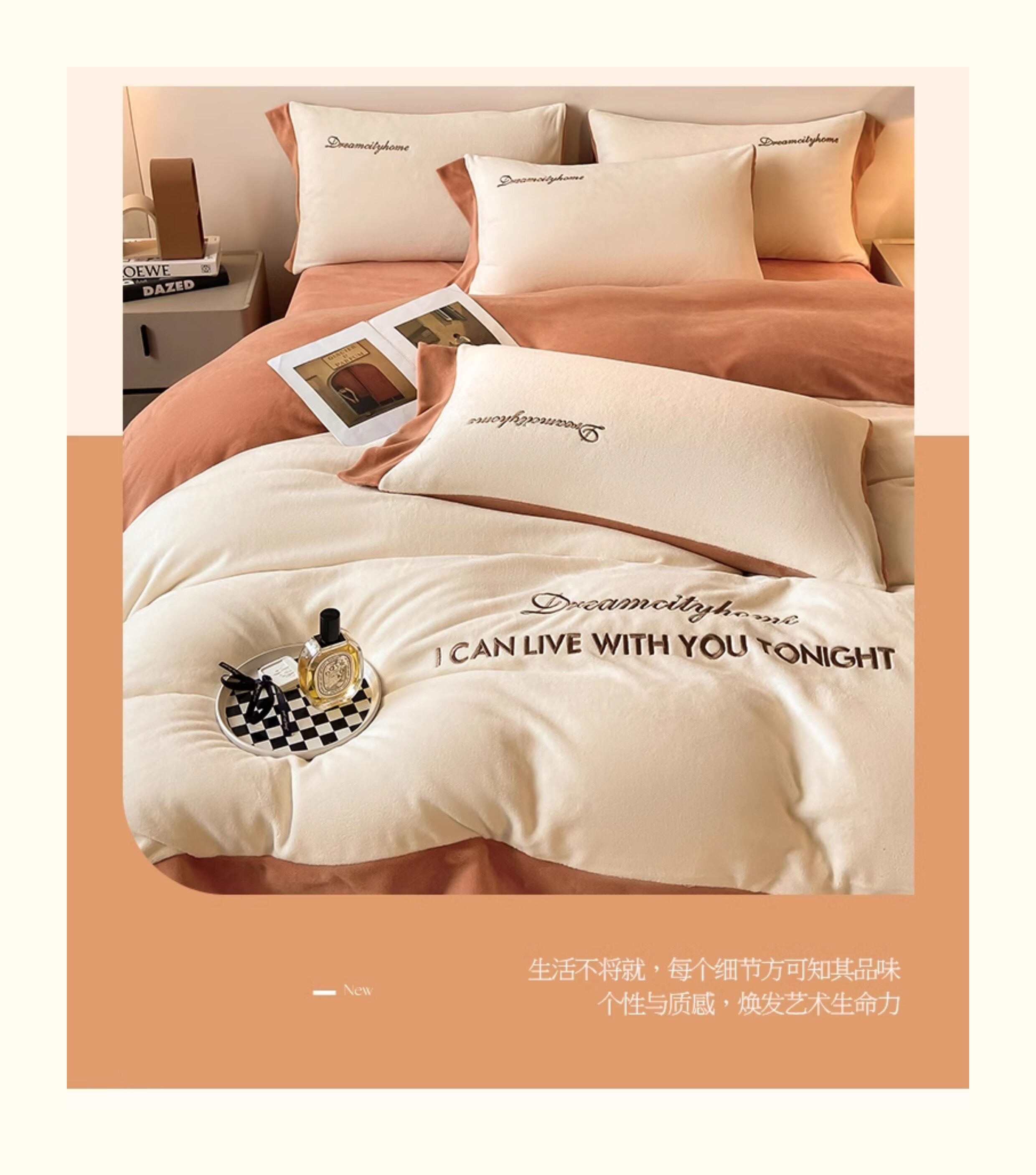 冬季牛奶絨床上四件套加絨加厚珊瑚法萊絨被套床單學生宿捨三件套