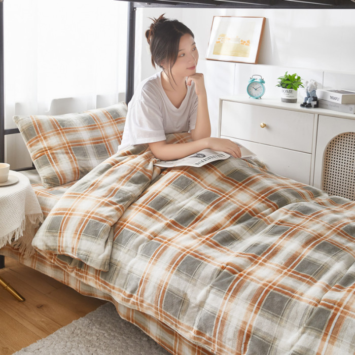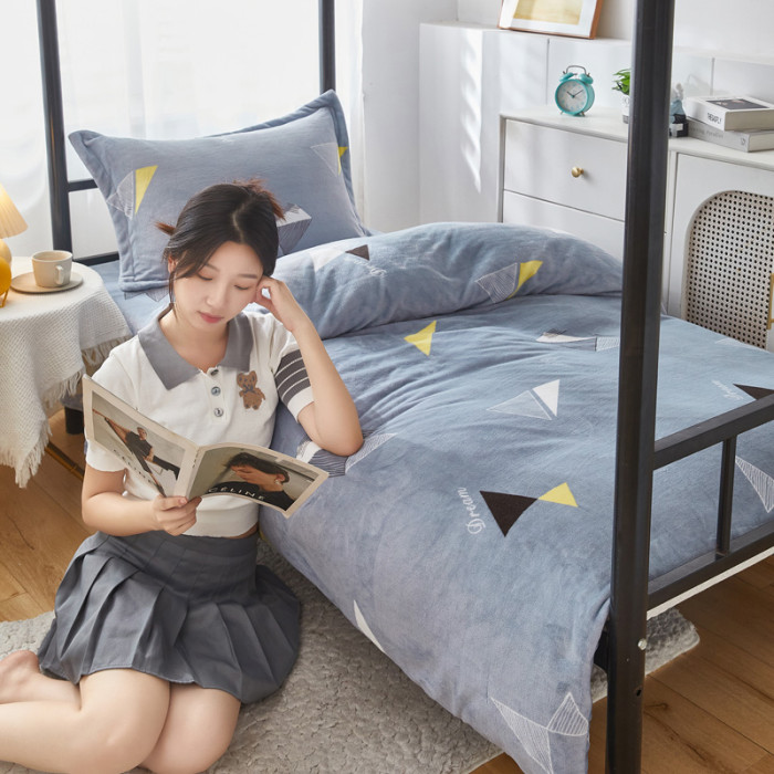 A類牛奶絨學生宿捨床上三件套床包款冬季加厚雙面珊瑚絨被套床單3