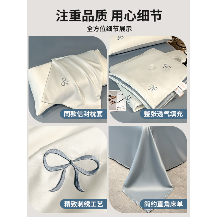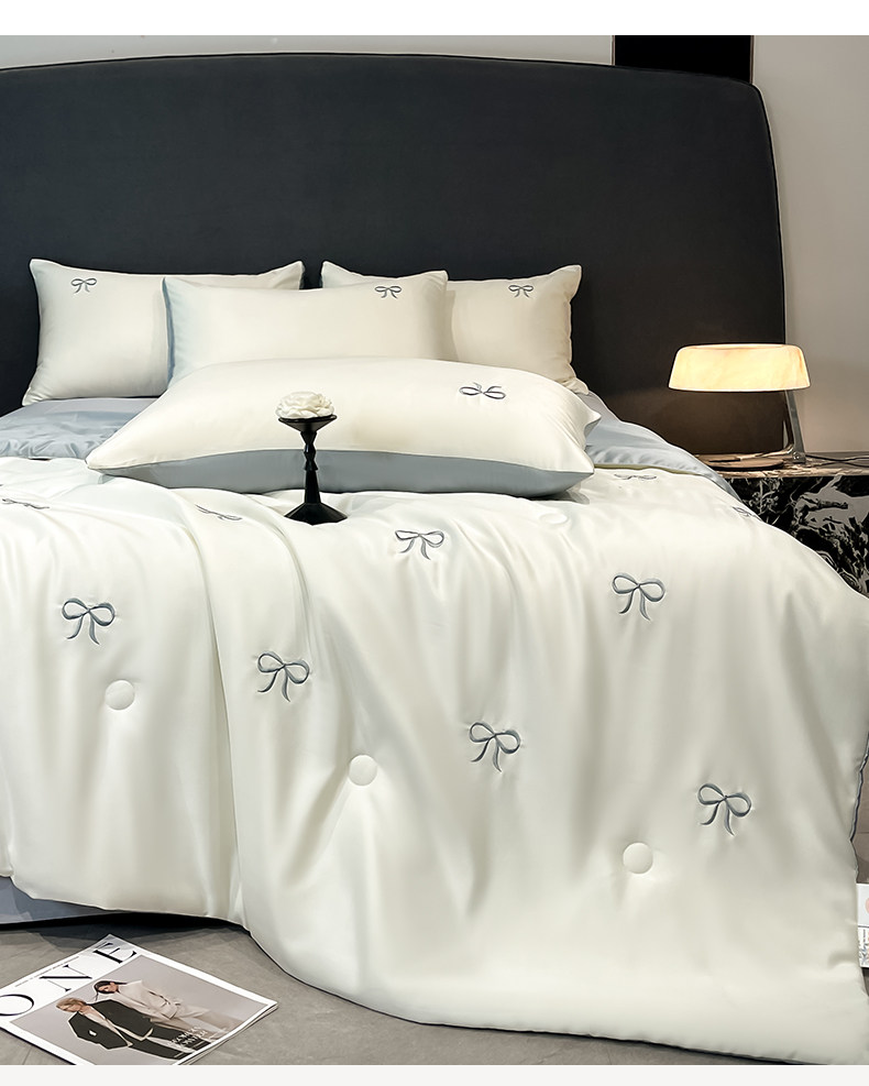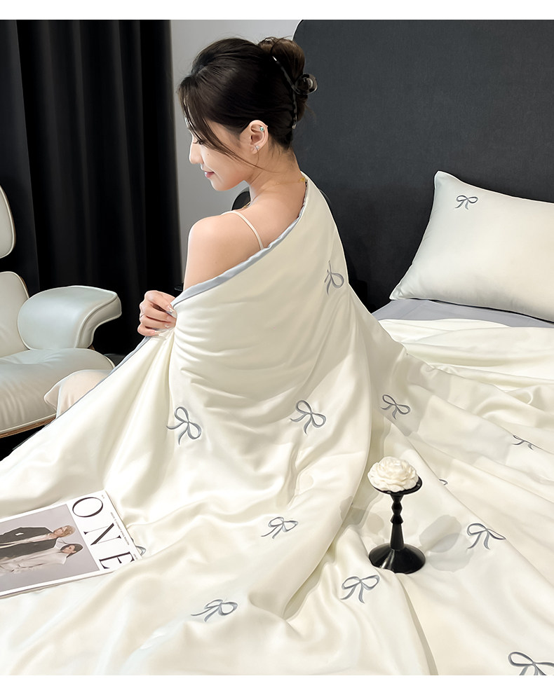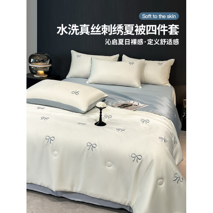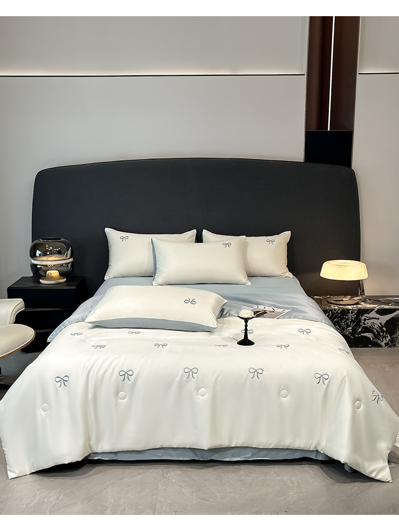 A類涼感冰絲刺綉夏涼被四件套輕奢高級絲滑裸睡被子床單床上用品4