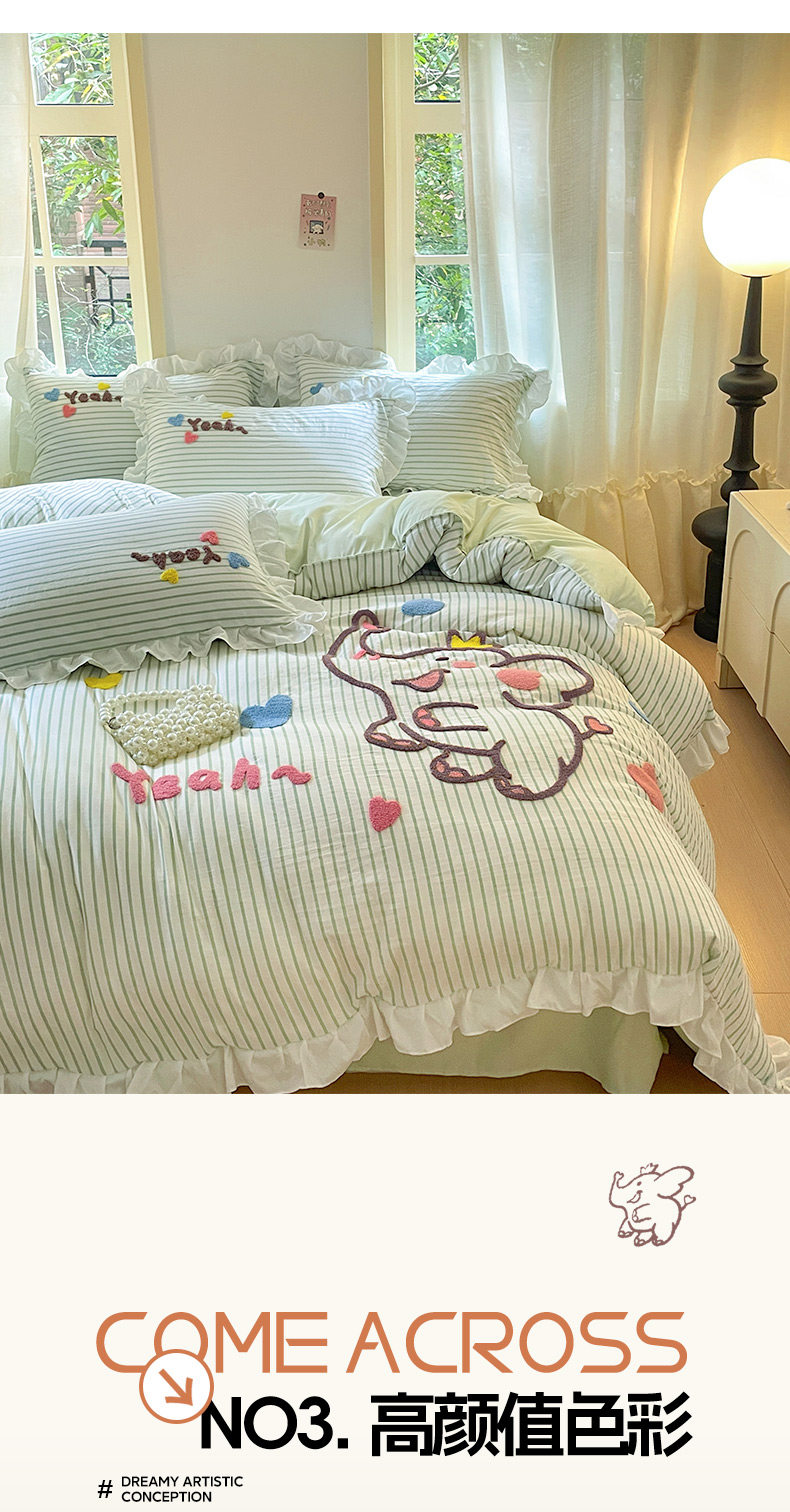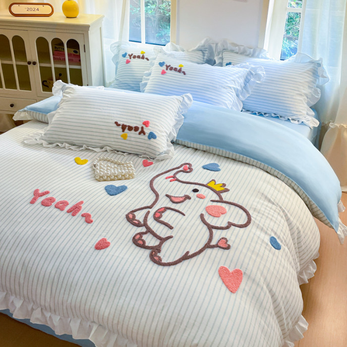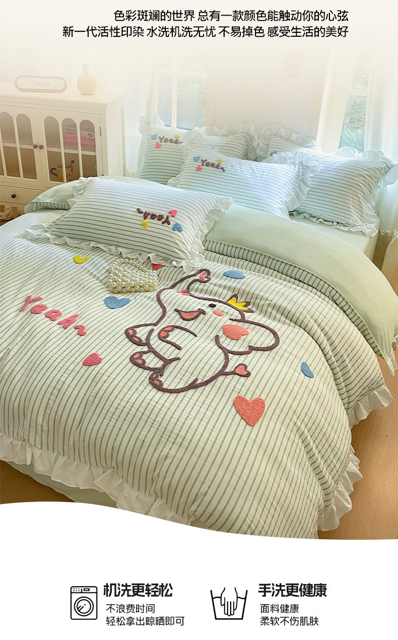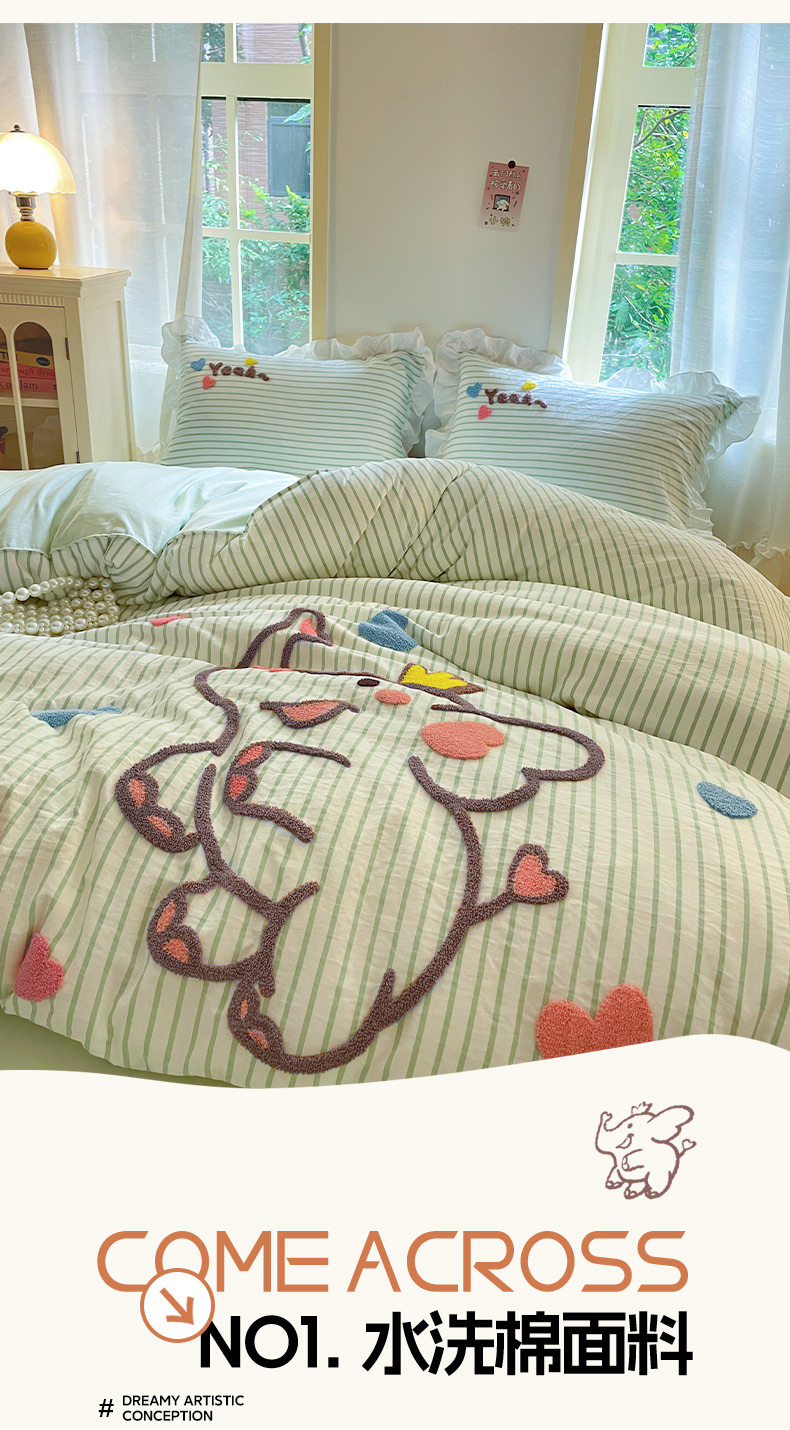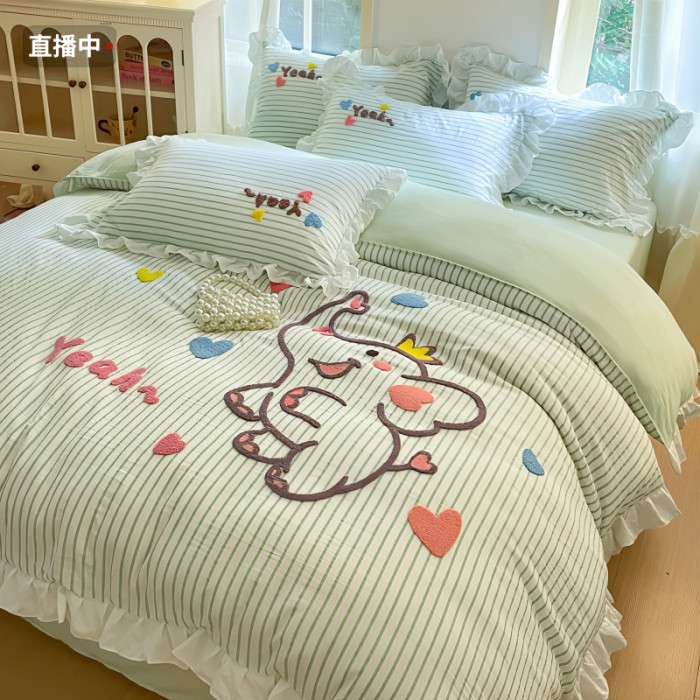 小紅書推薦可愛卡通裸睡純棉床單被套四件套全棉床上被罩床包款