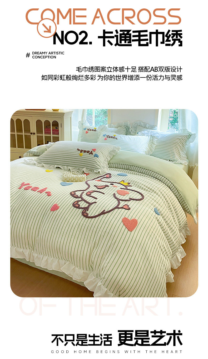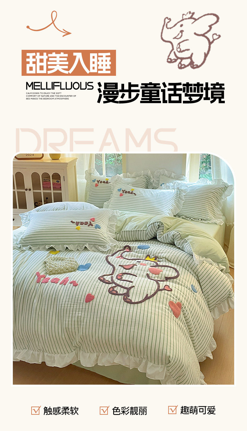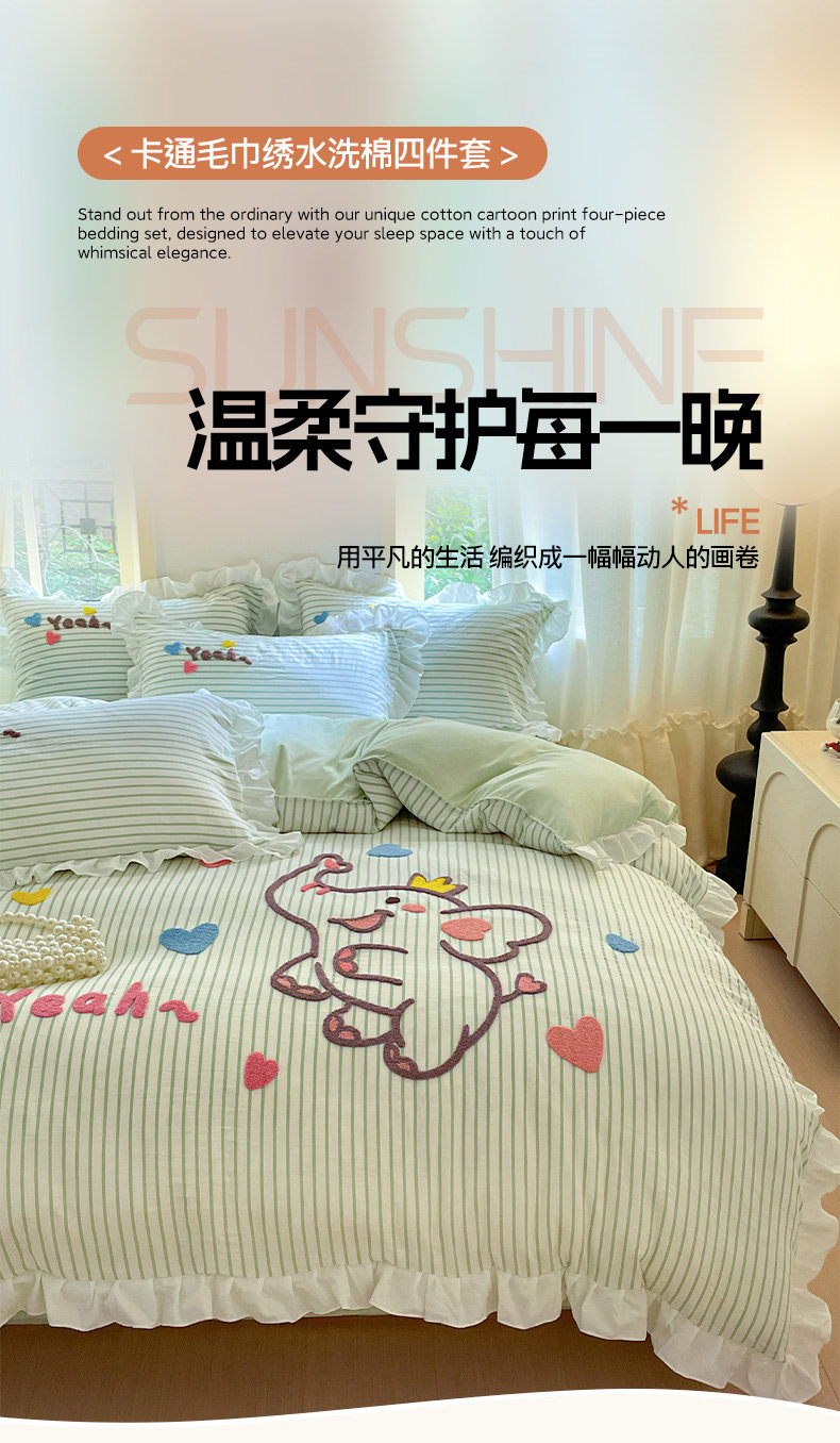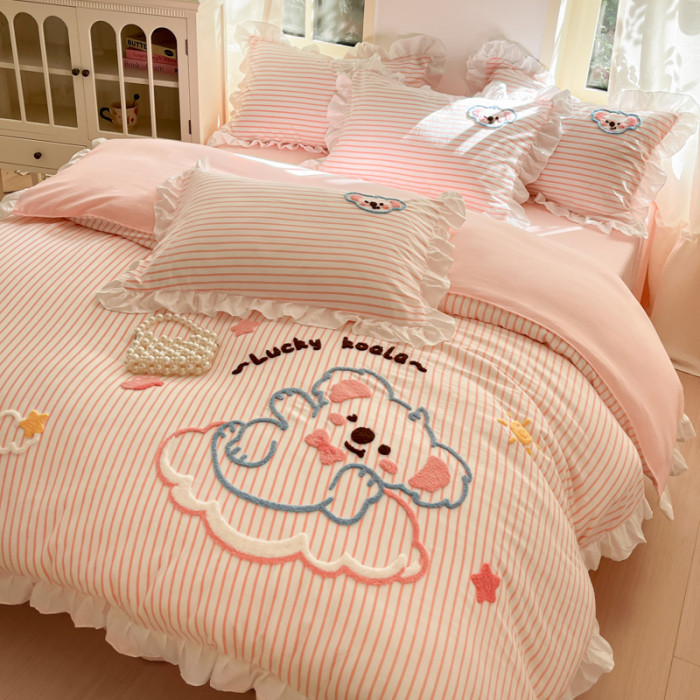 小紅書推薦可愛卡通裸睡純棉床單被套四件套全棉床上被罩床包款