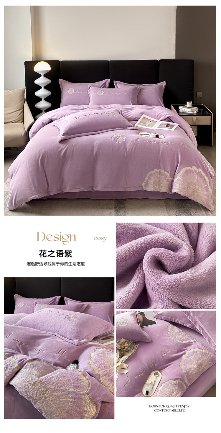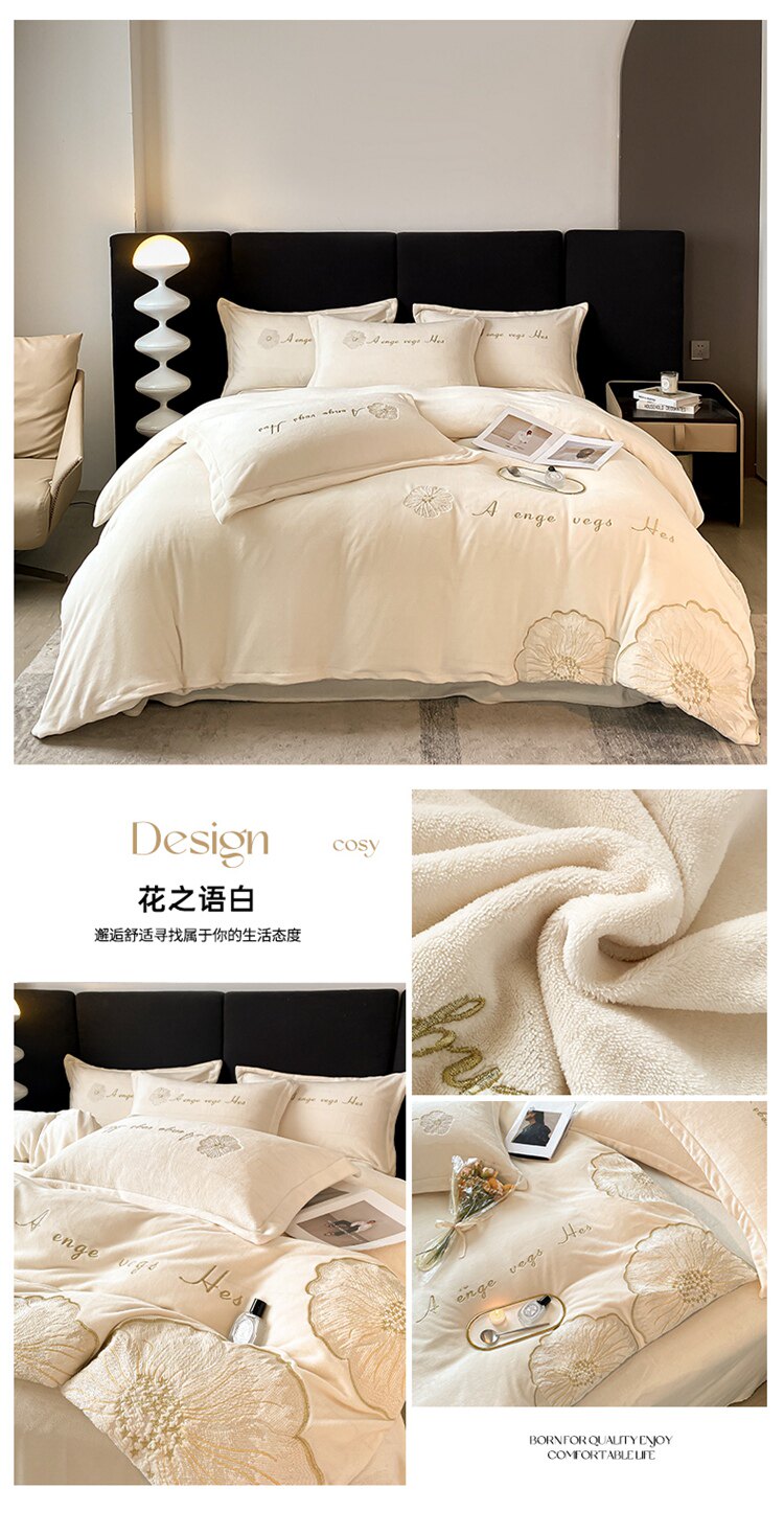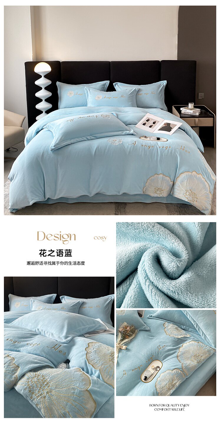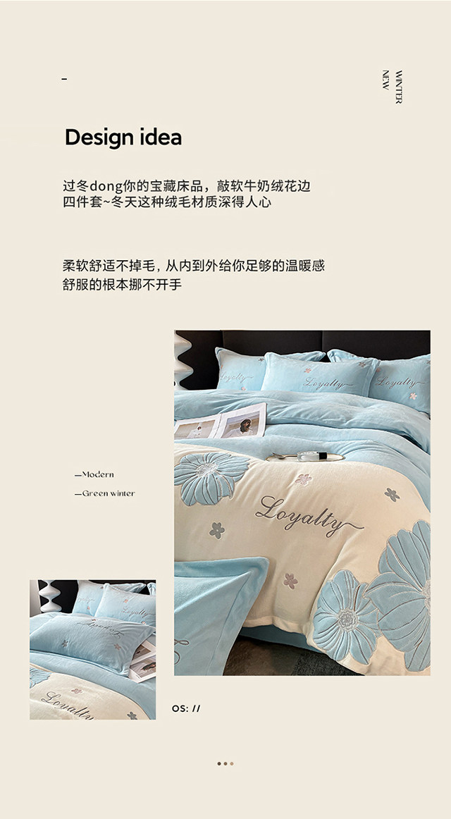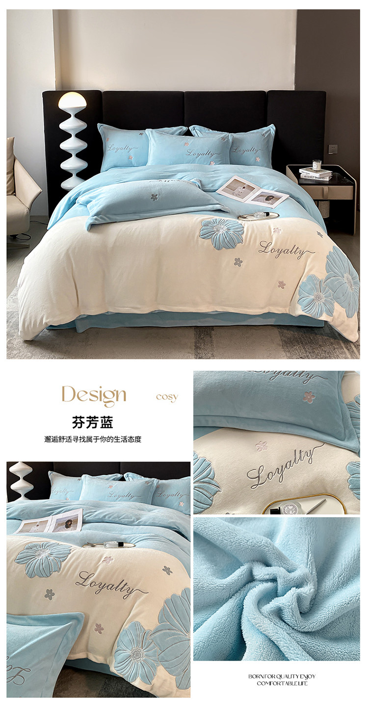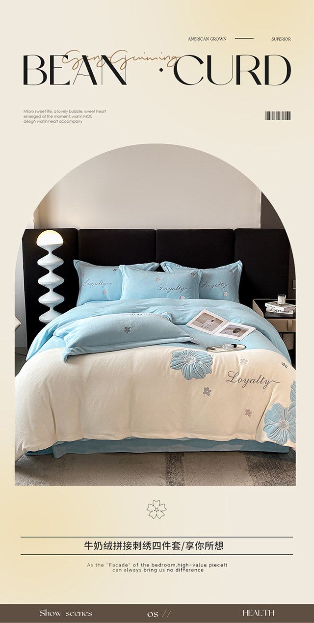 冬季速暖刺綉牛奶絨四件套加厚雙面絨加絨床單被套防滑床包床罩款