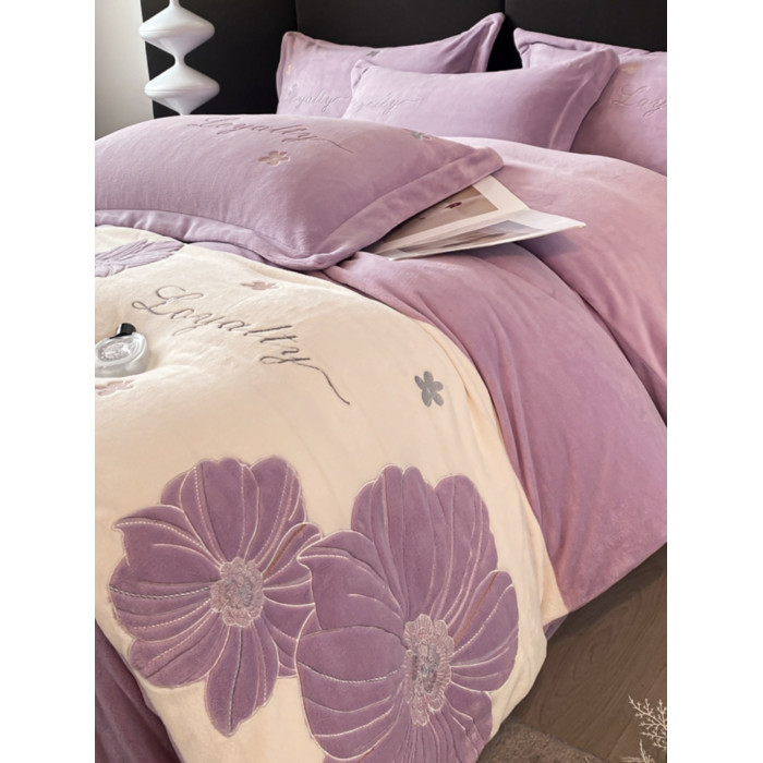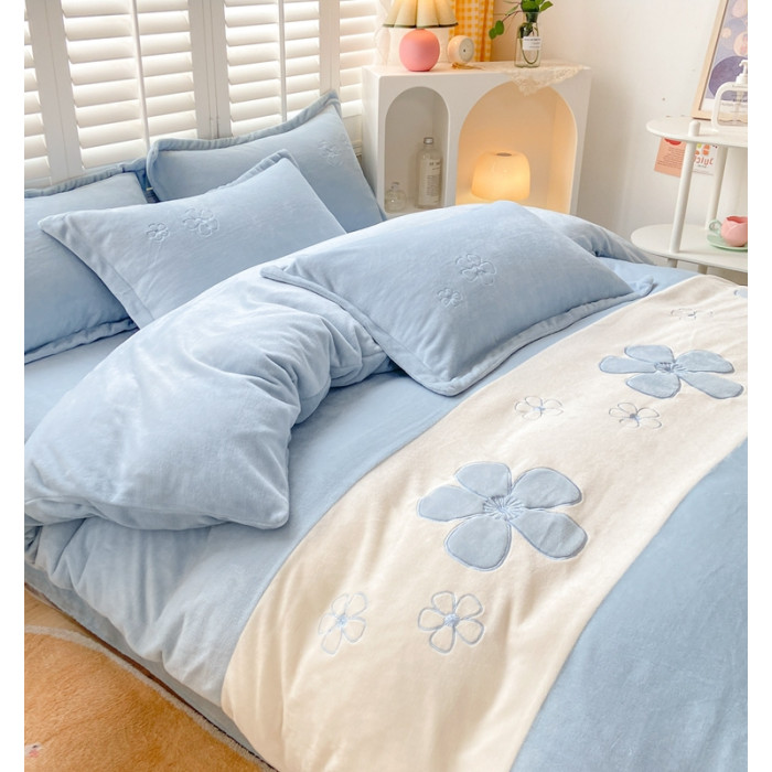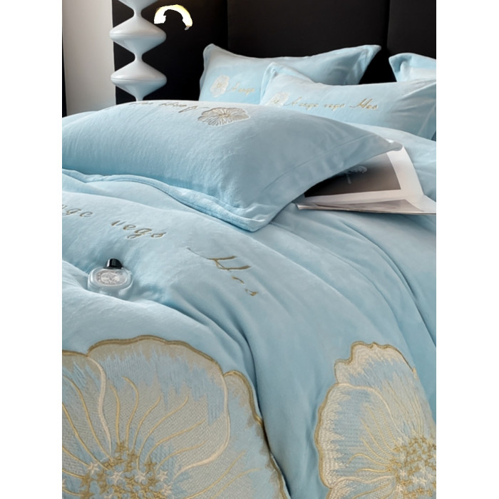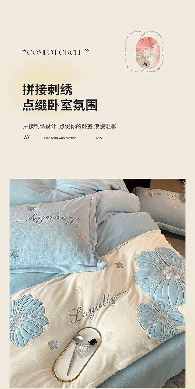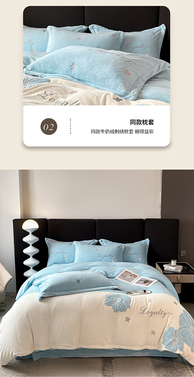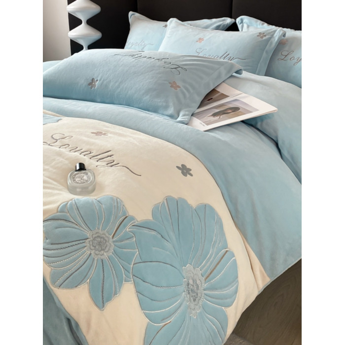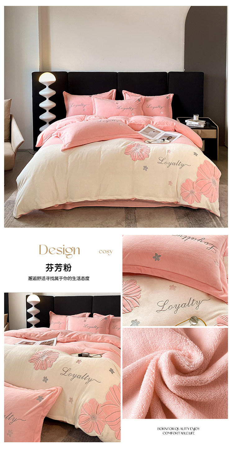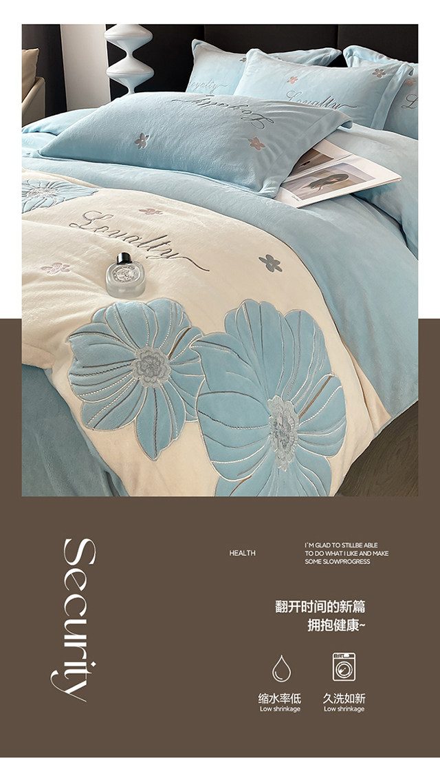 冬季速暖刺綉牛奶絨四件套加厚雙面絨加絨床單被套防滑床包床罩款
