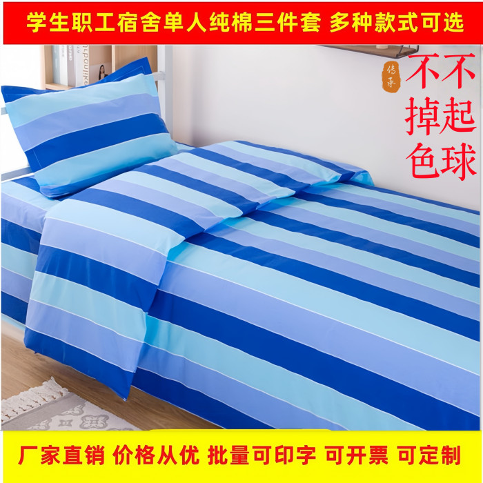 學生宿捨上下鋪純棉三件套大學中學單人被套床單養老院床單被子罩