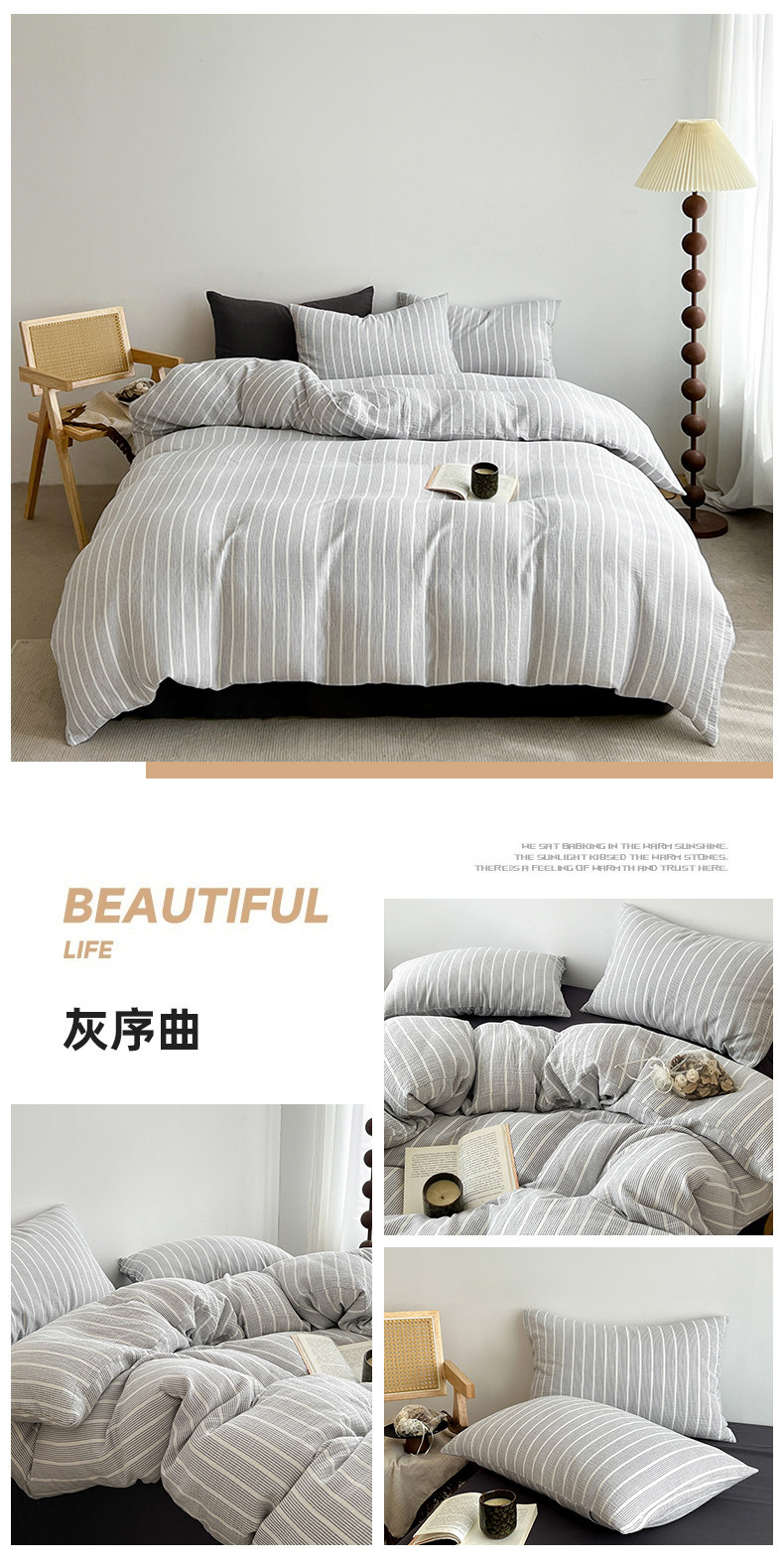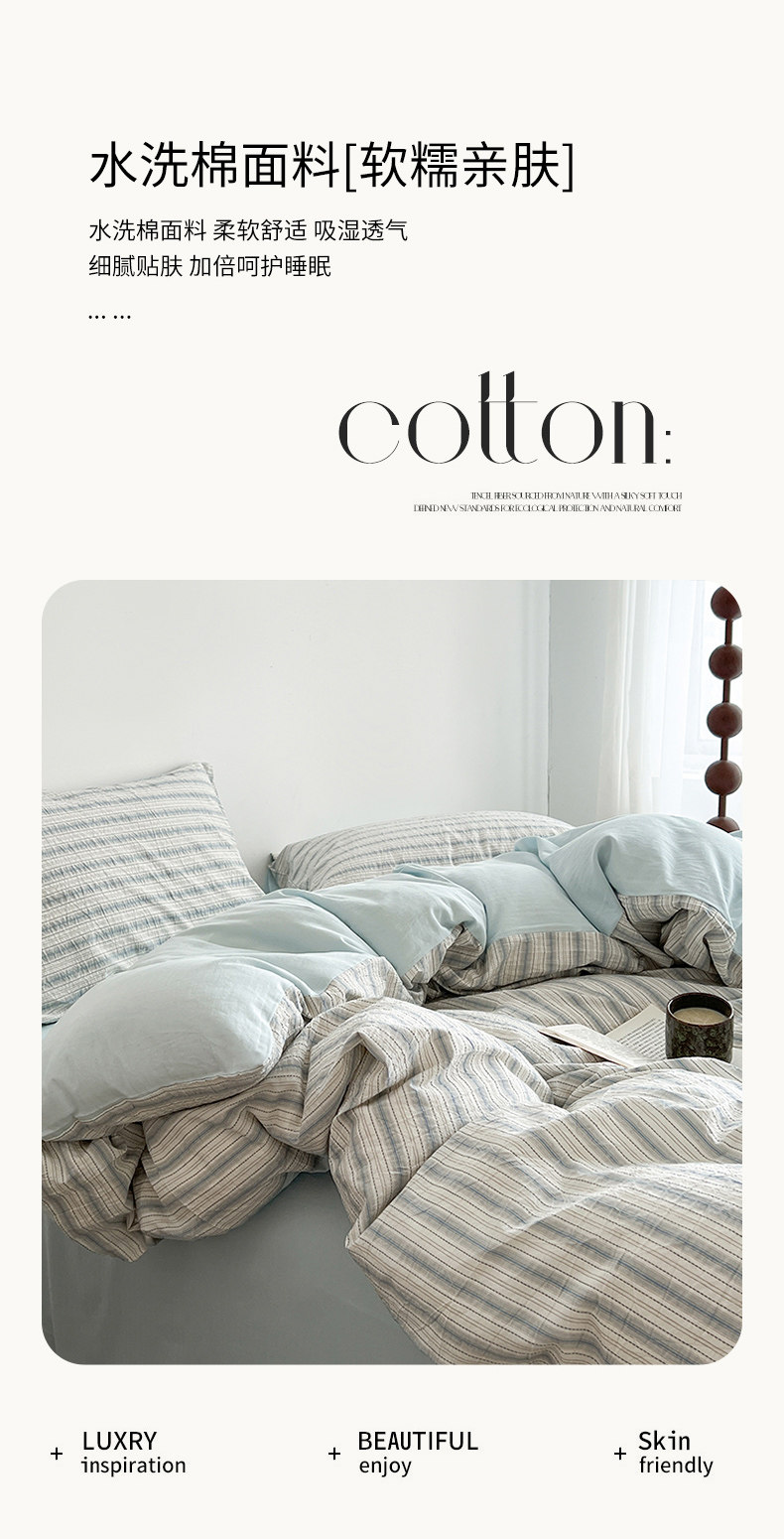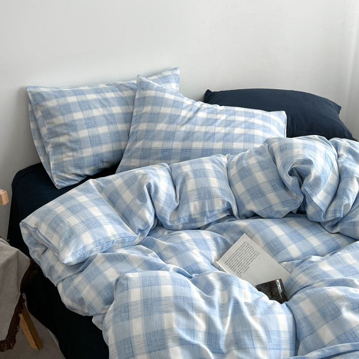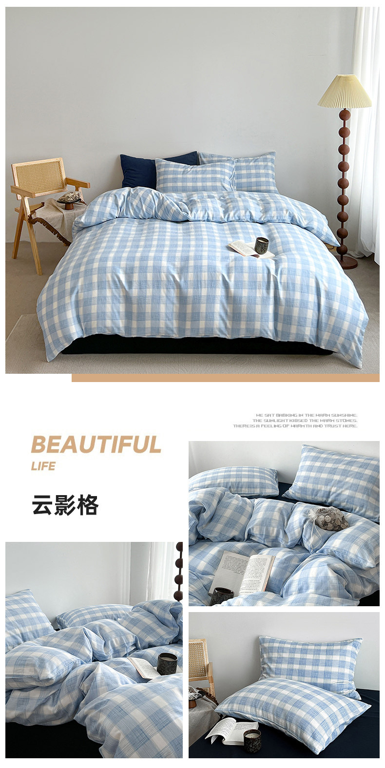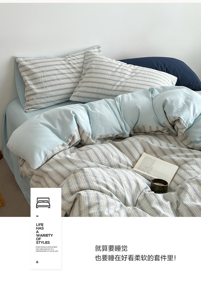 小清新日式簡約條紋被套四件套軟糯親膚方格純棉全棉臥室床單床包