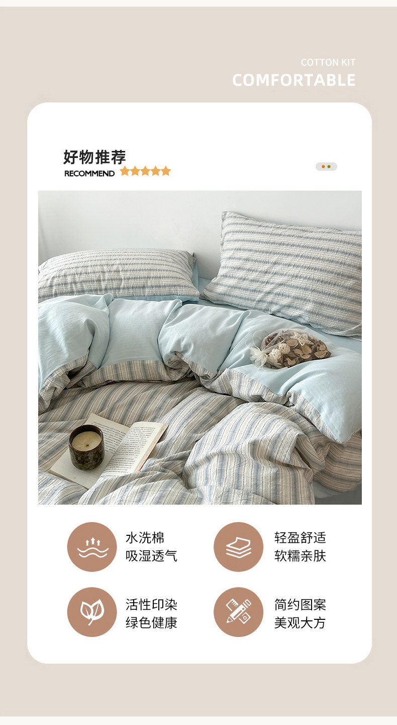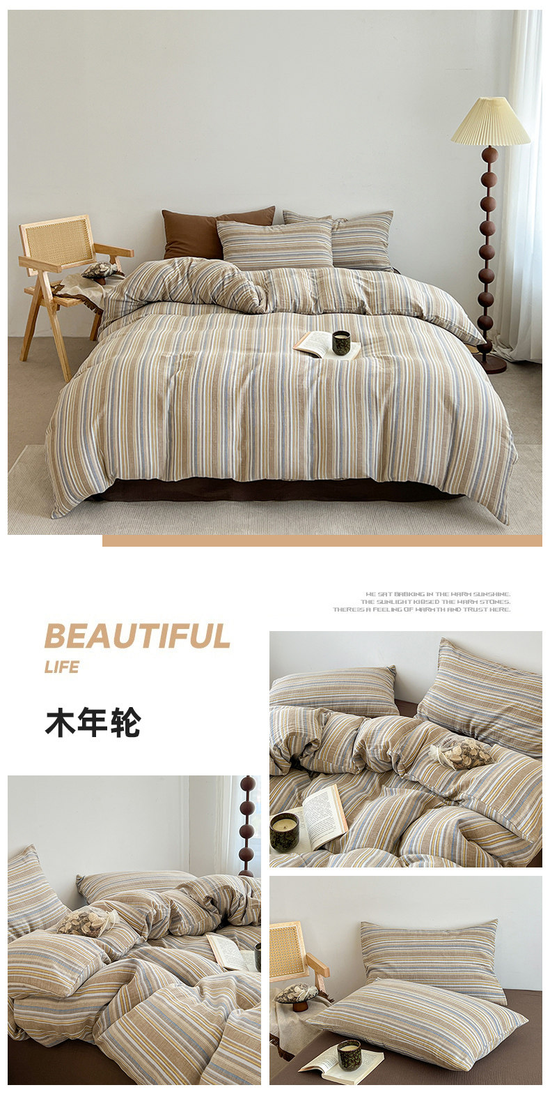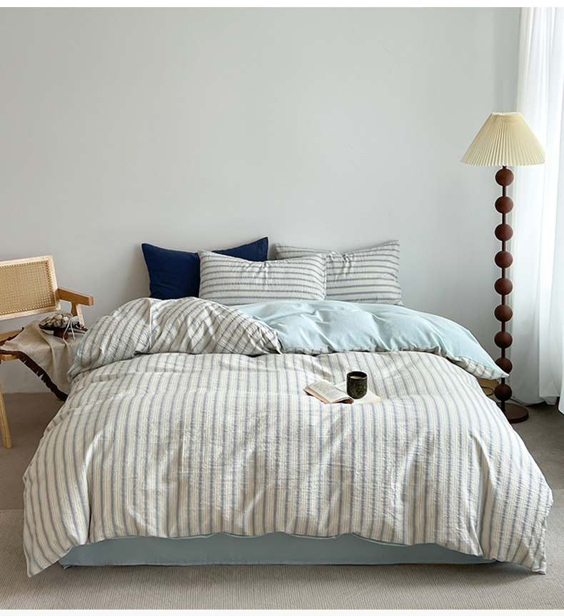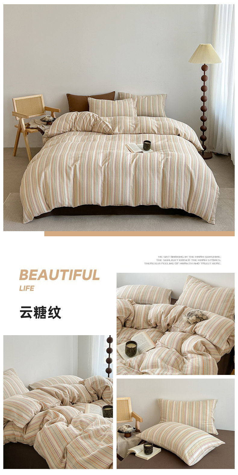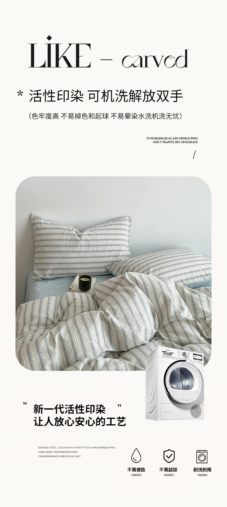小清新日式簡約條紋被套四件套軟糯親膚方格純棉全棉臥室床單床包