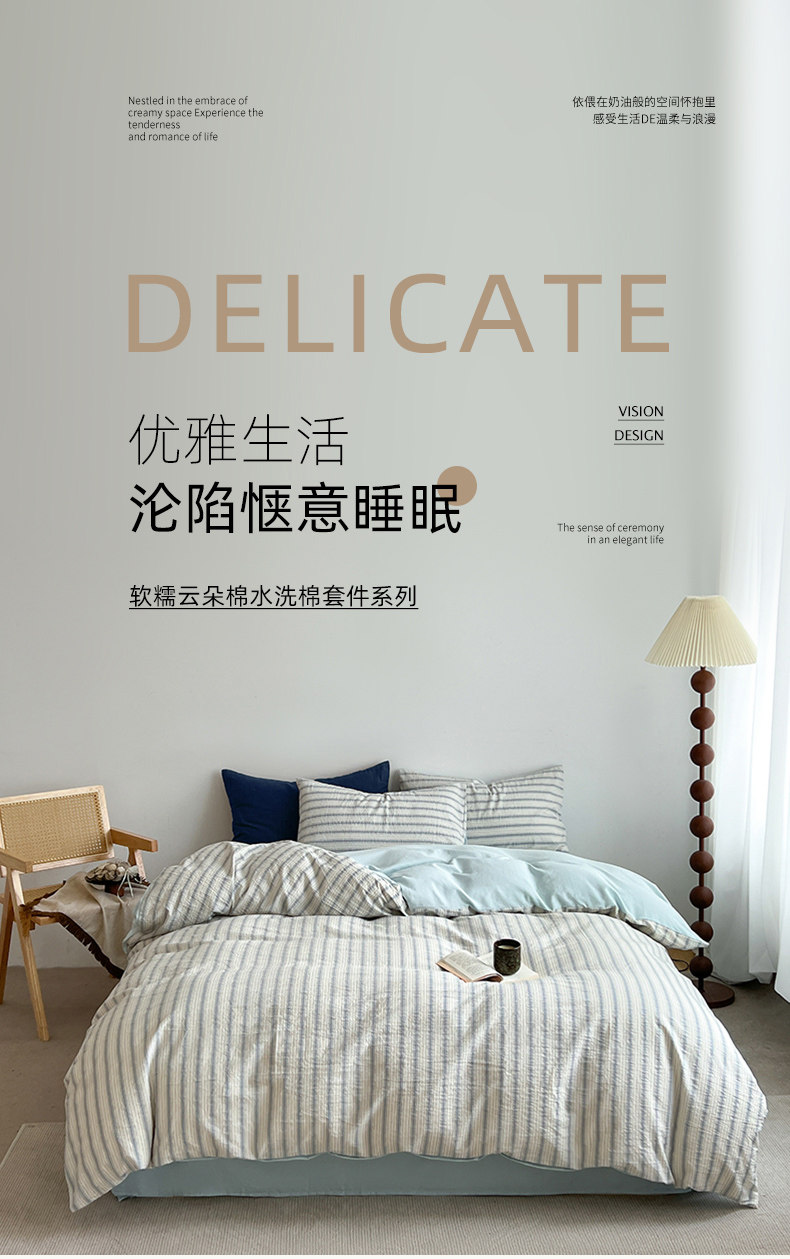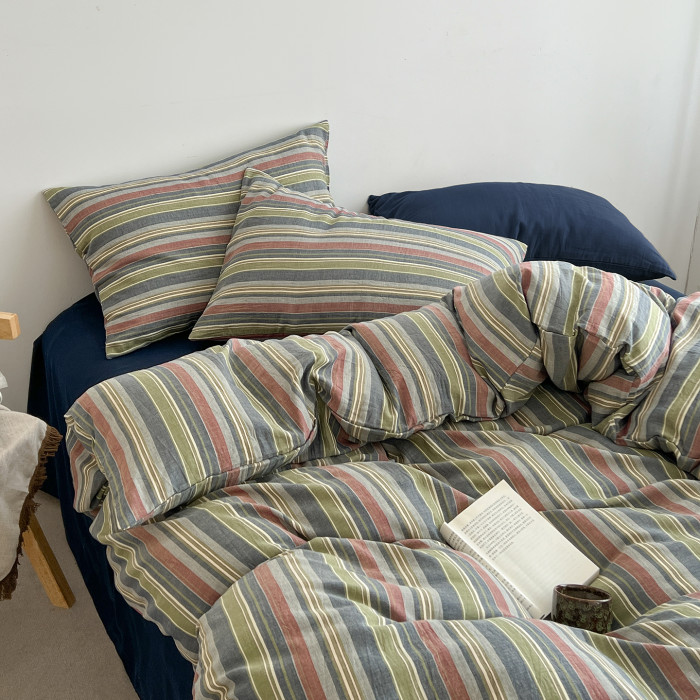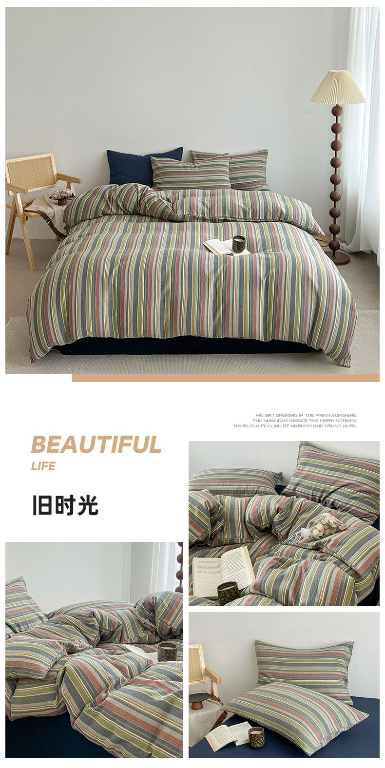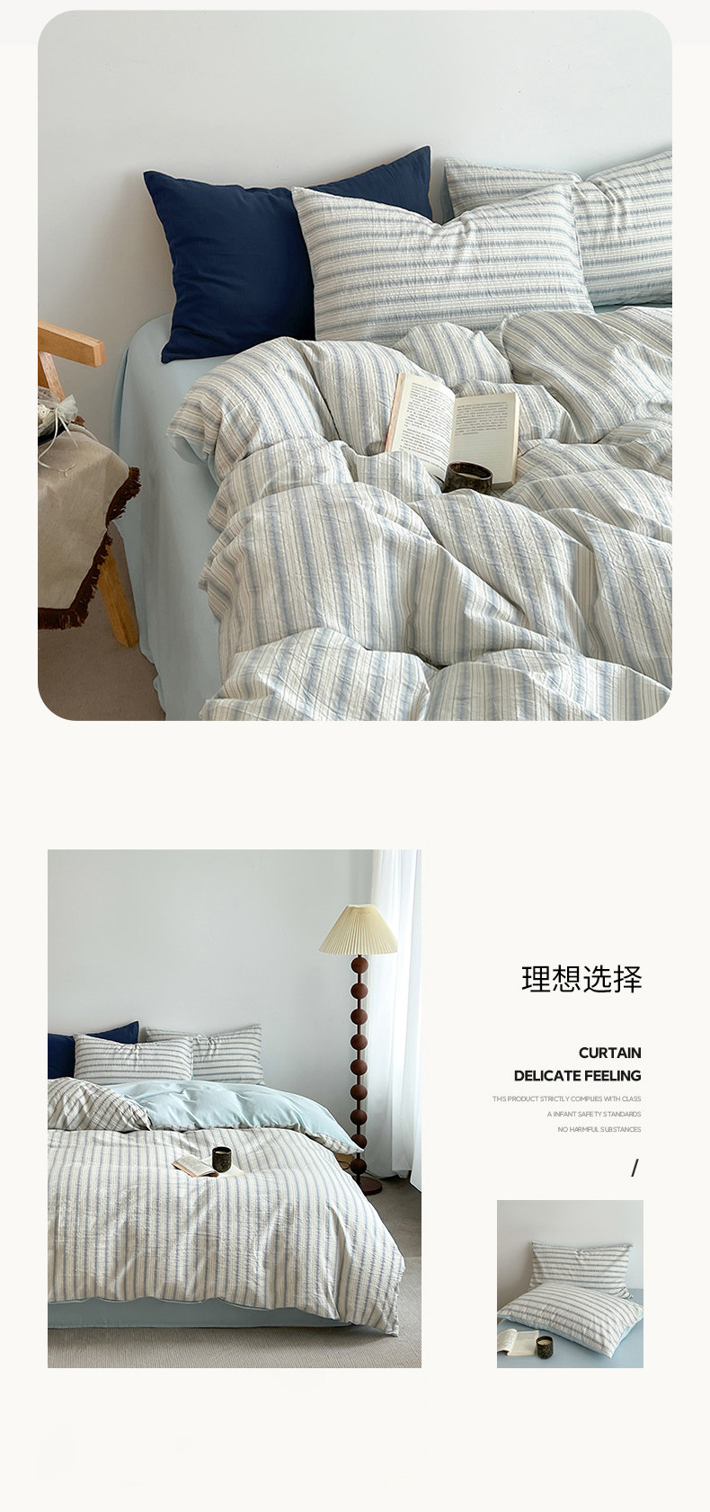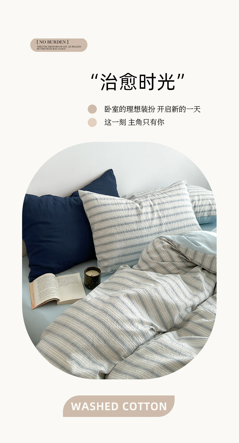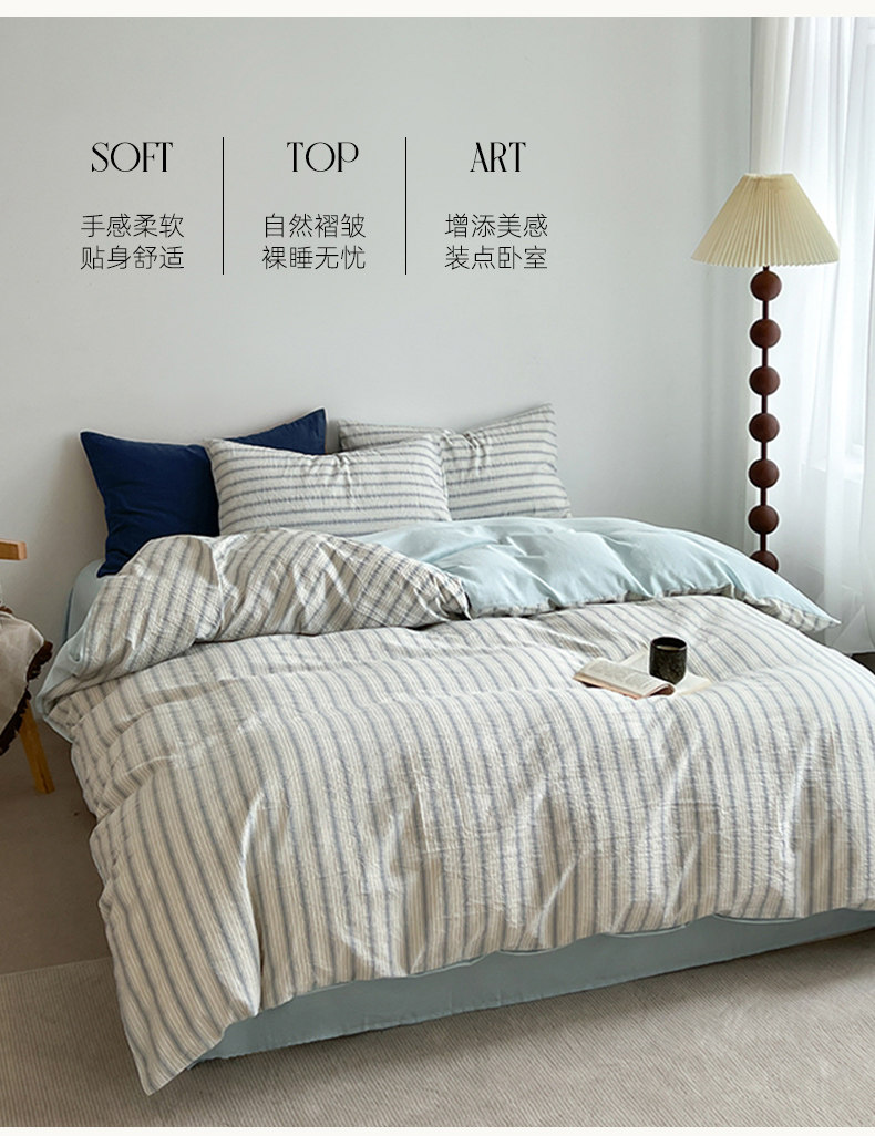 小清新日式簡約條紋被套四件套軟糯親膚方格純棉全棉臥室床單床包