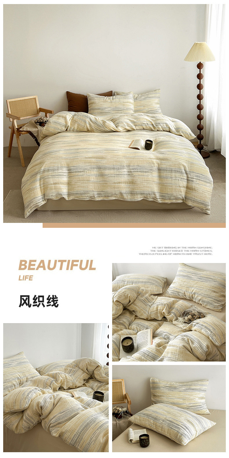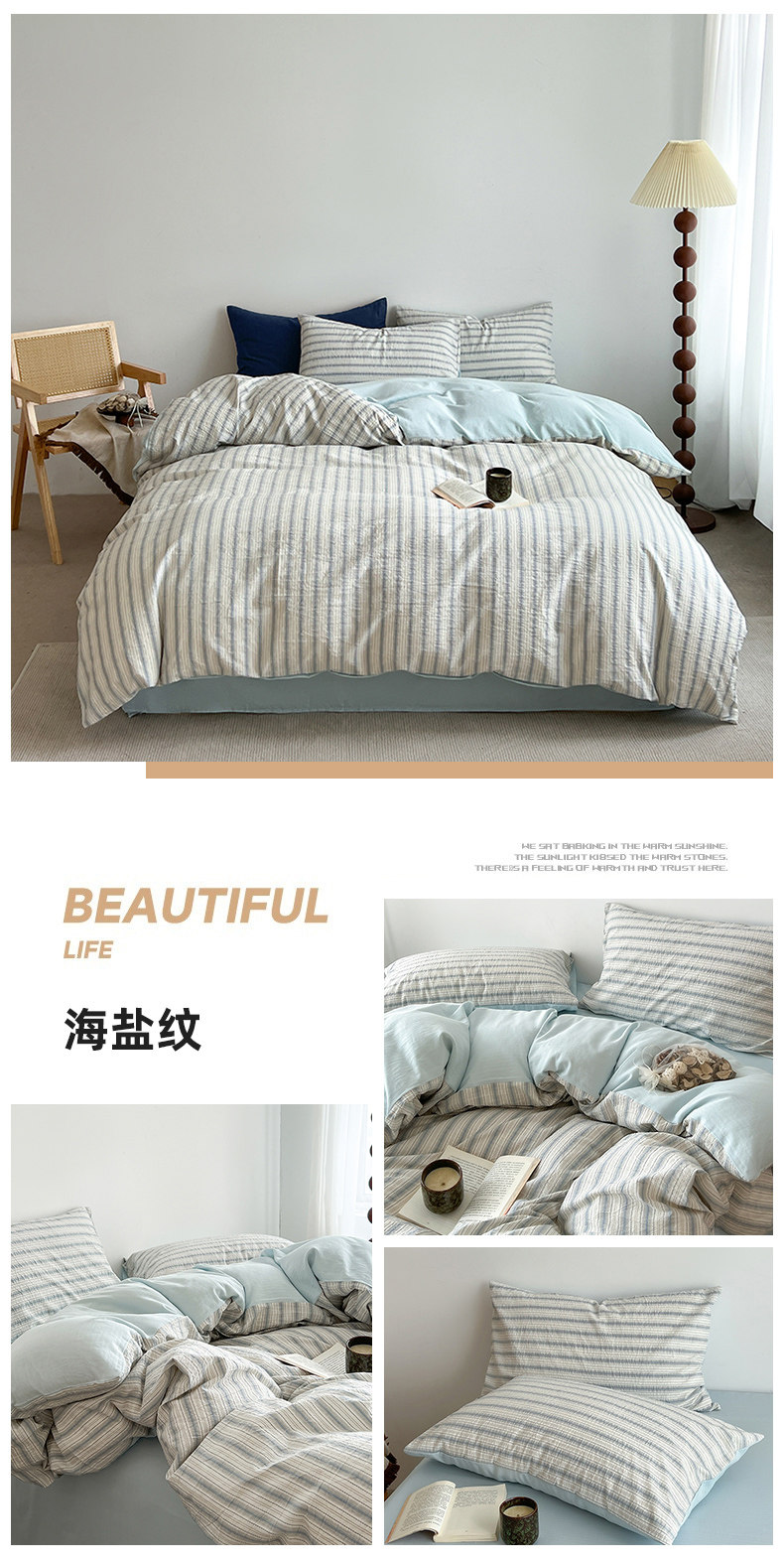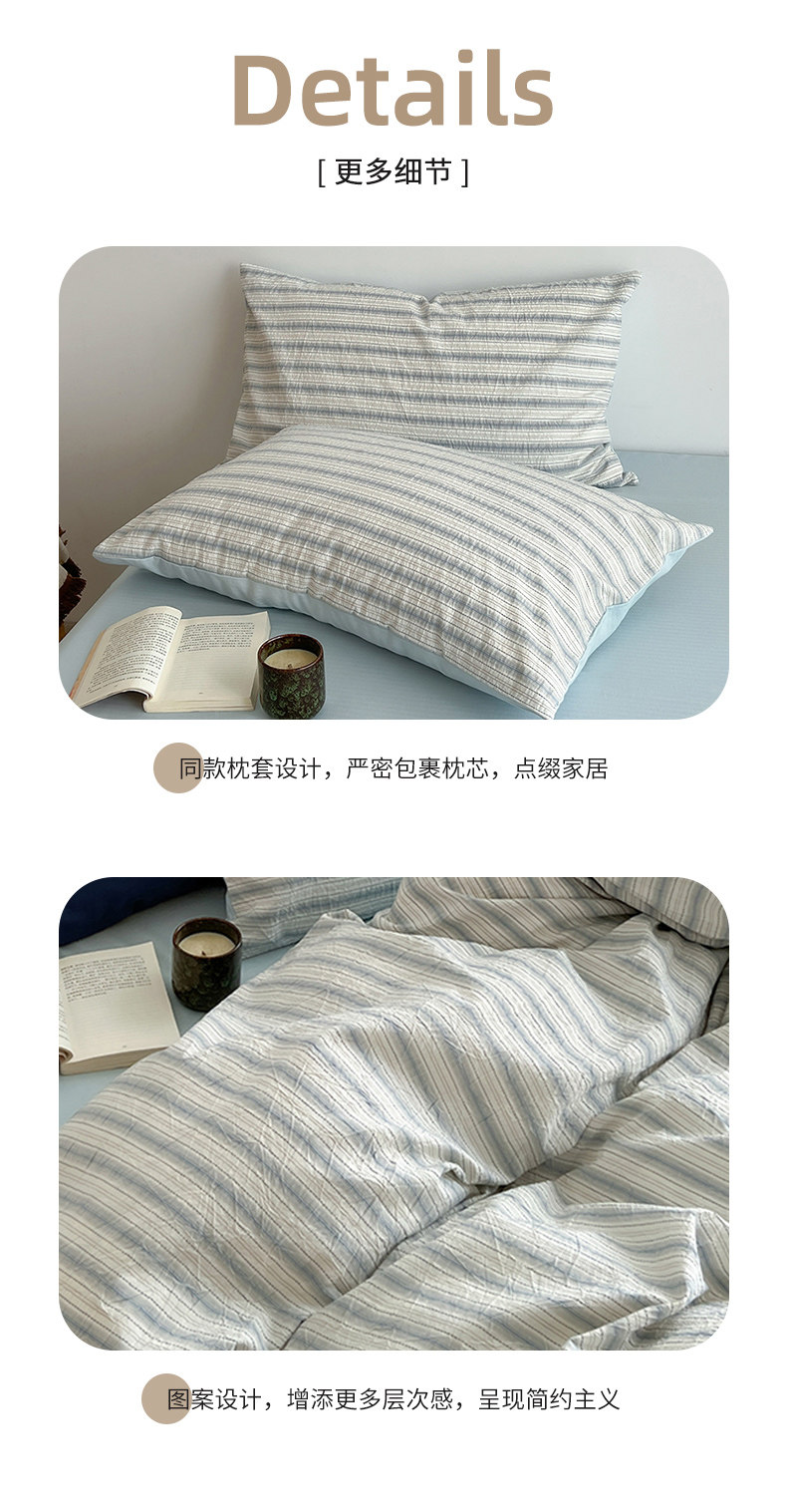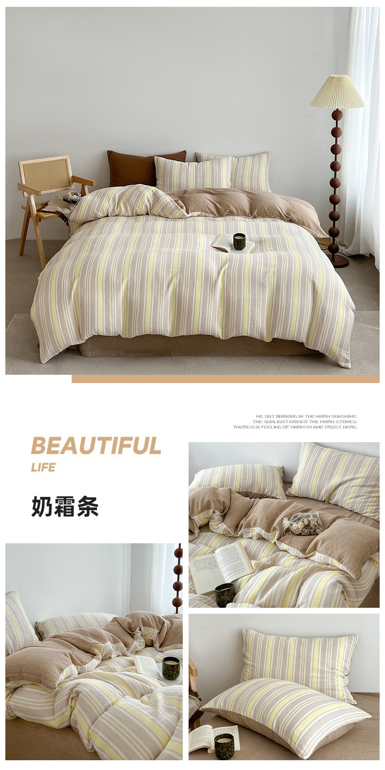 小清新日式簡約條紋被套四件套軟糯親膚方格純棉全棉臥室床單床包