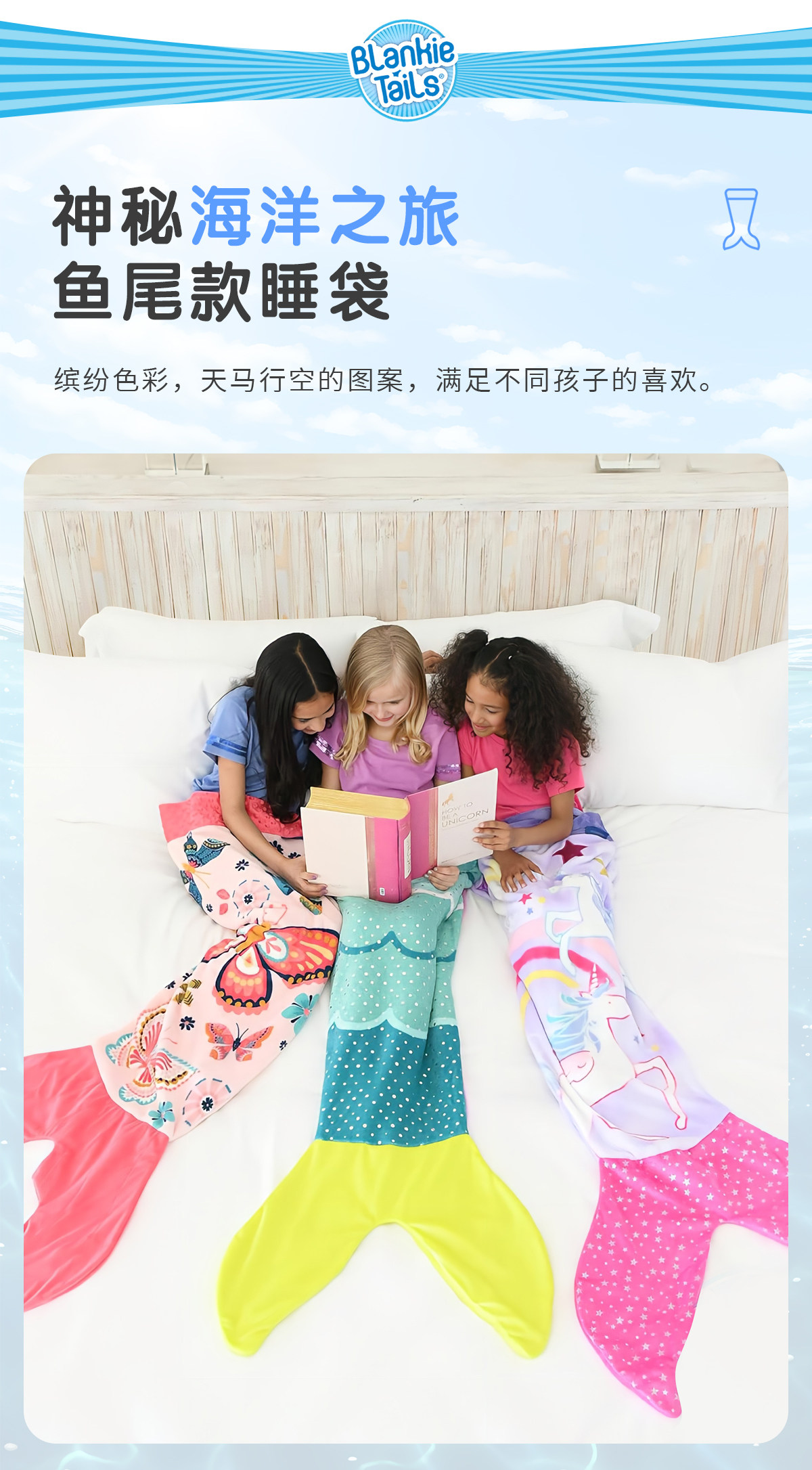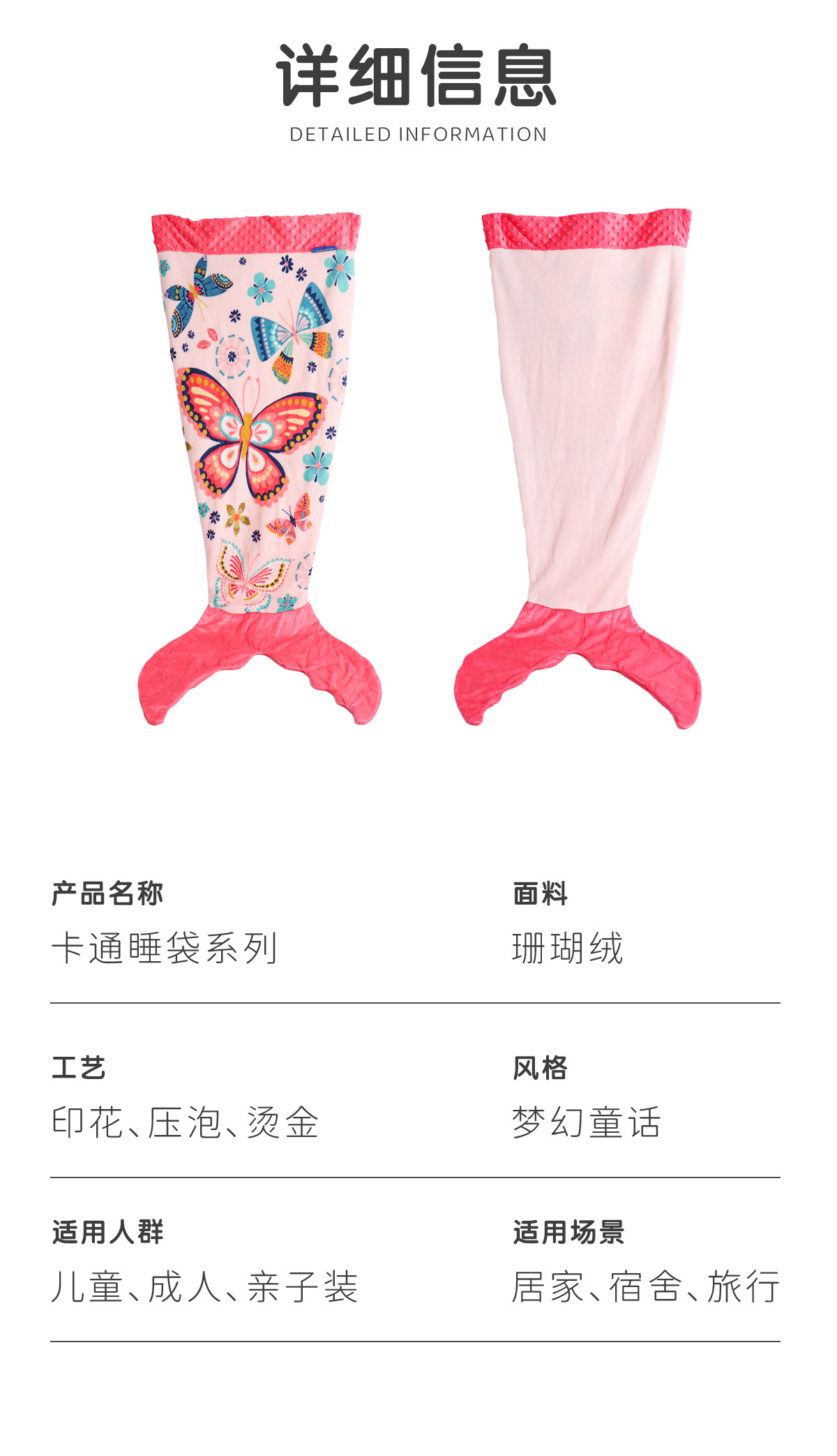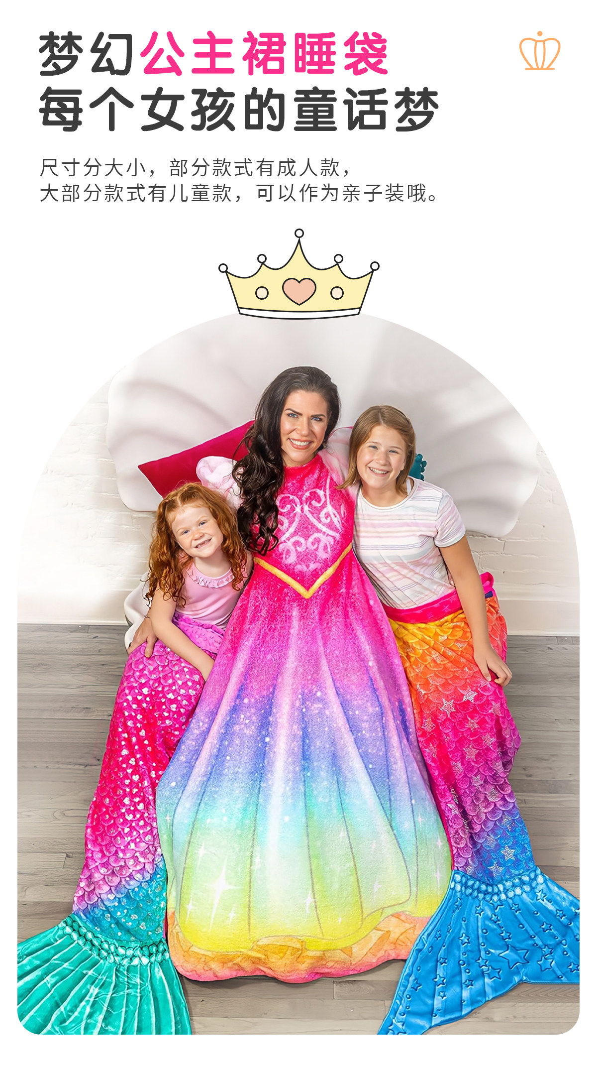 出口級兒童公主裙睡袋卡通美人魚尾巴毯子幼兒保暖可穿創意親子裝