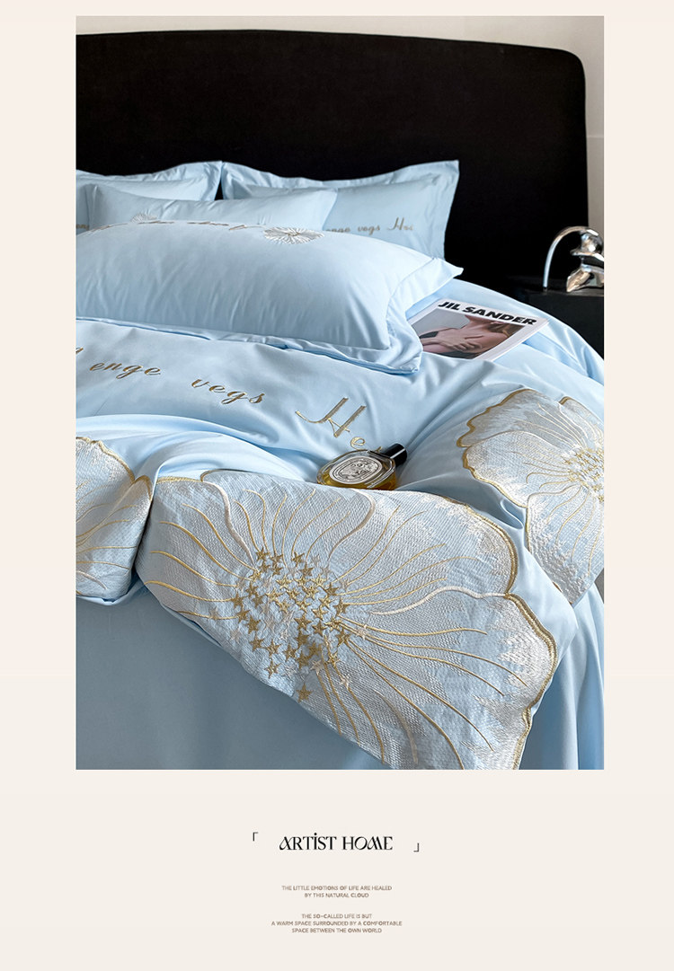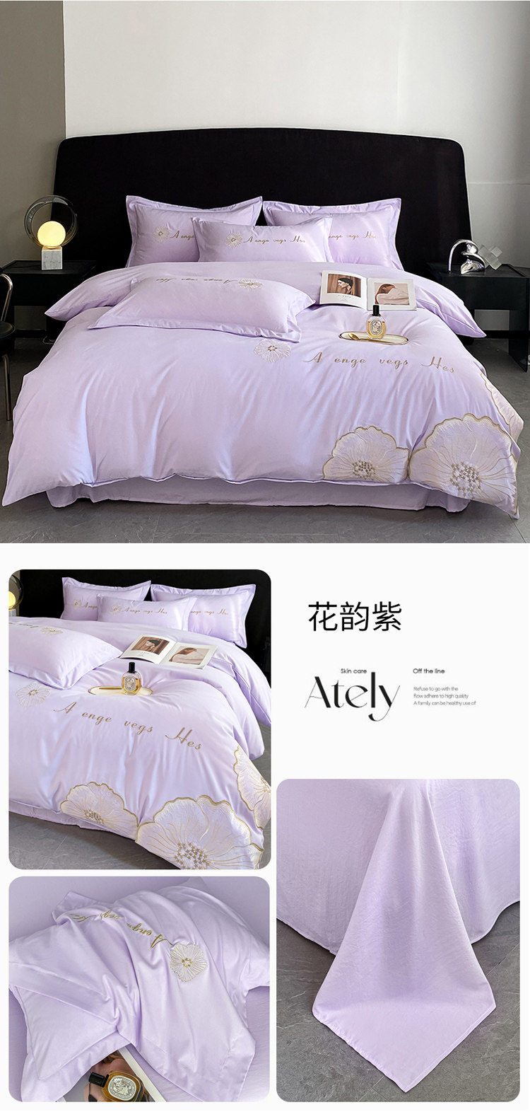 小紅書裸睡公主風刺綉純棉全棉四件套床上少女心被套四季防滑床罩
