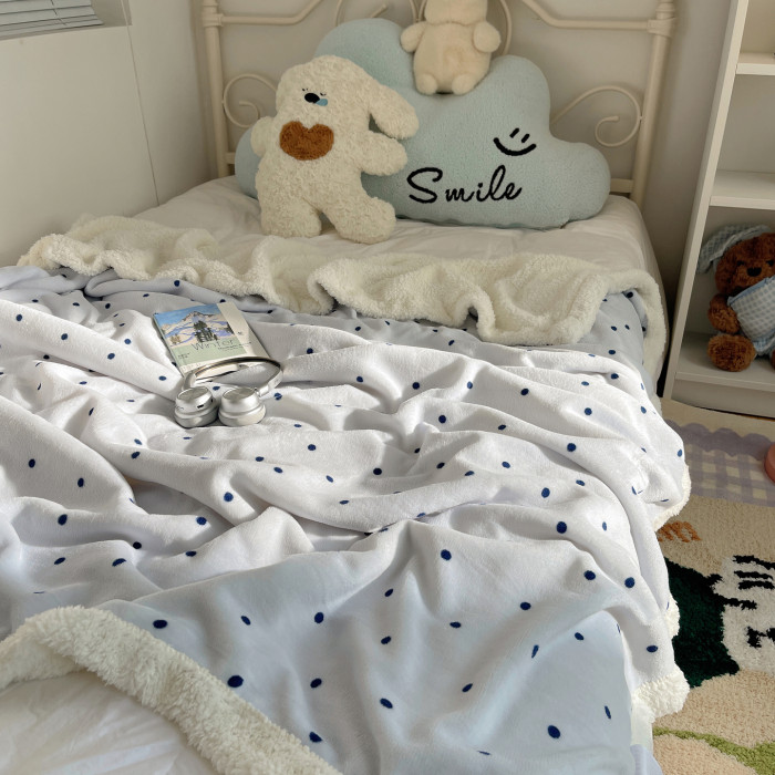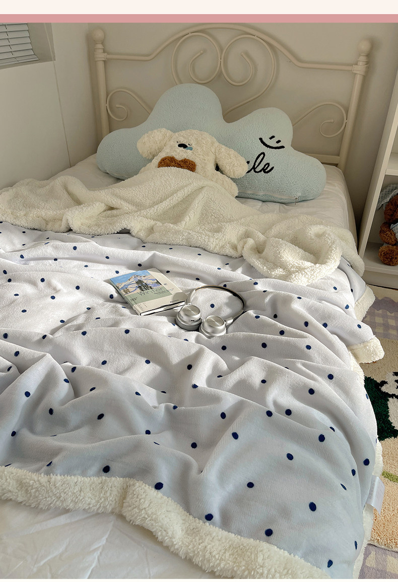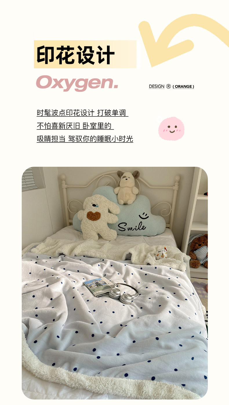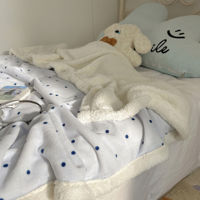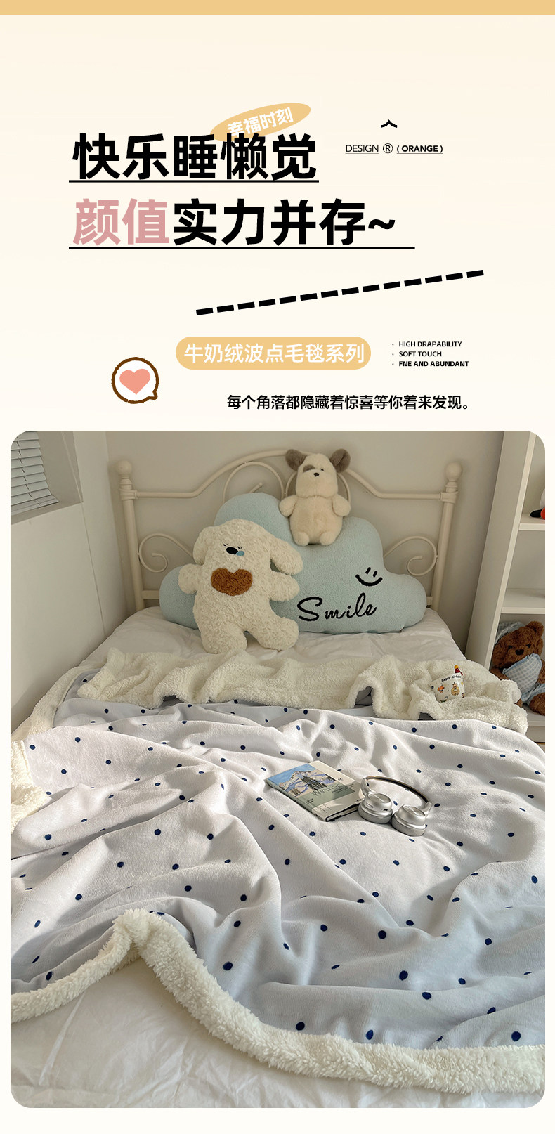 海鹽波點牛奶絨毛毯羊羔絨冬季加厚保暖蓋毯沙發毯子辦公室午睡毯