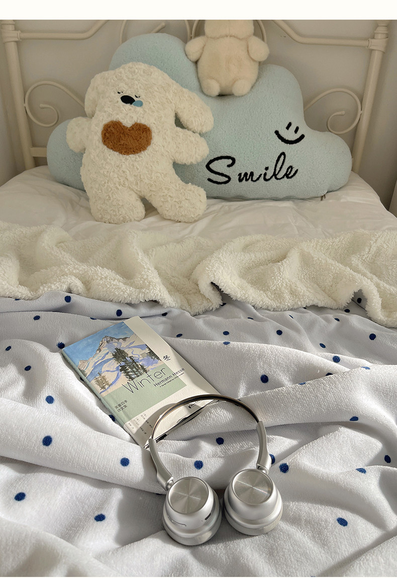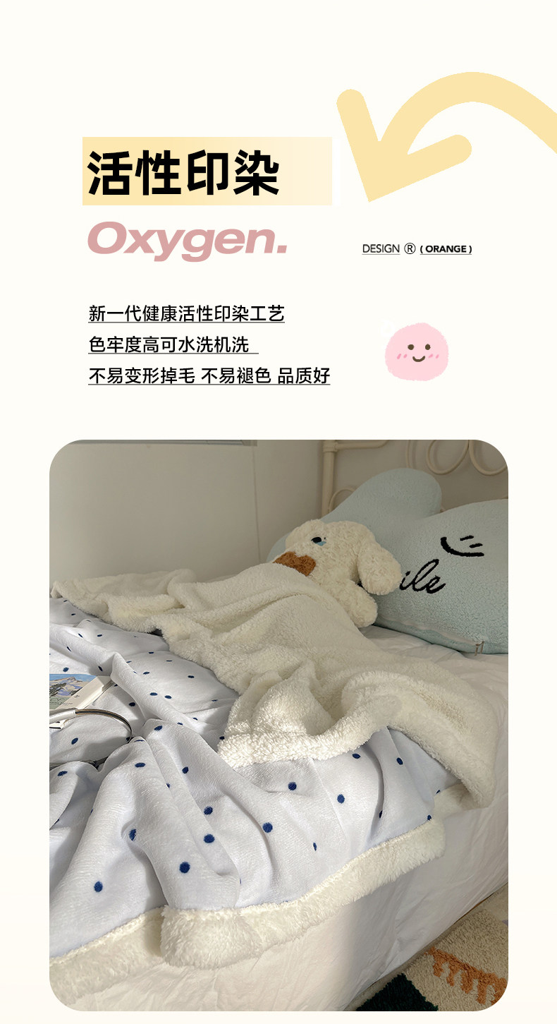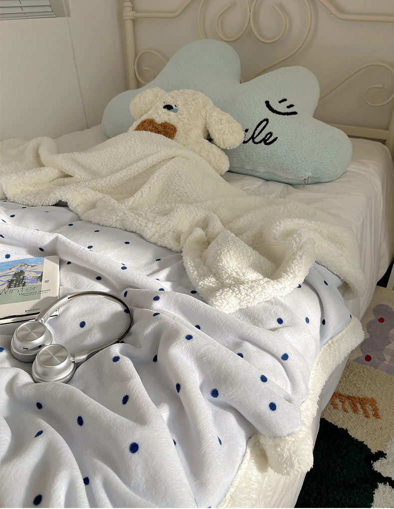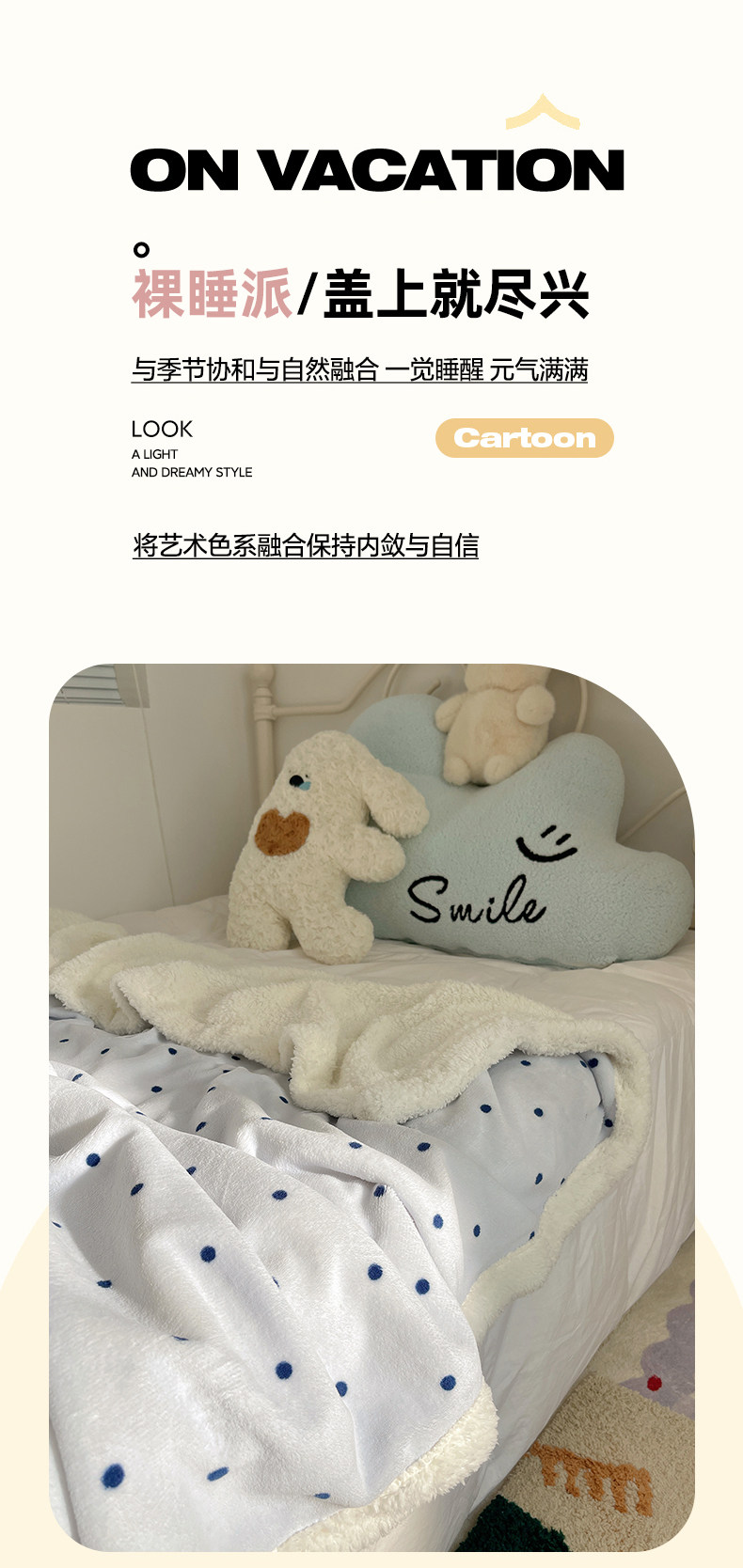 海鹽波點牛奶絨毛毯羊羔絨冬季加厚保暖蓋毯沙發毯子辦公室午睡毯