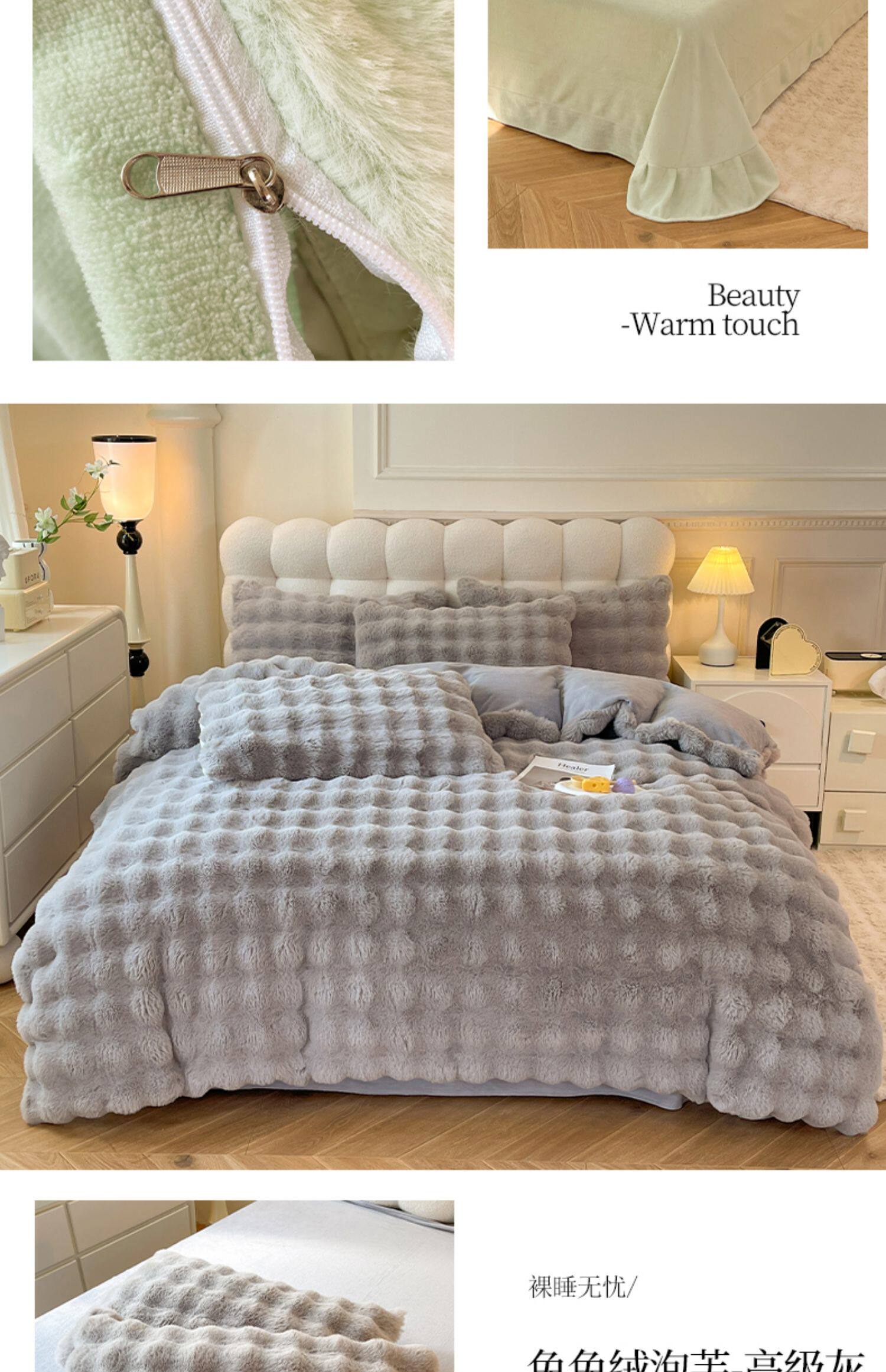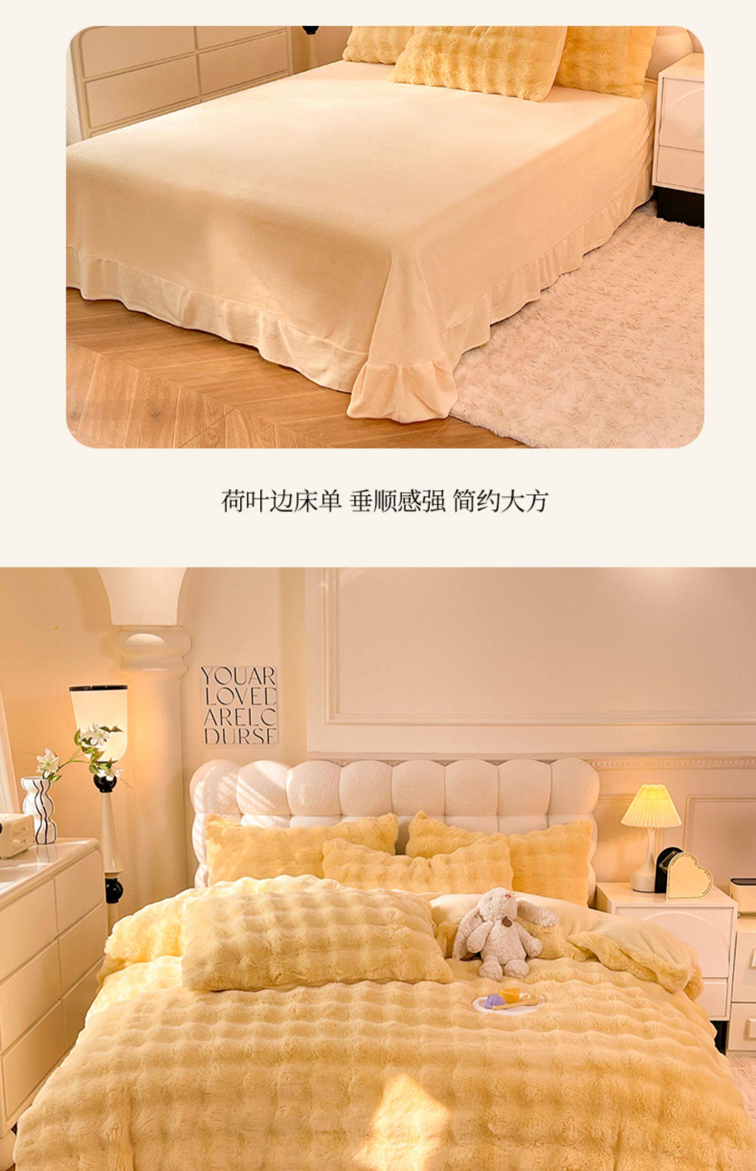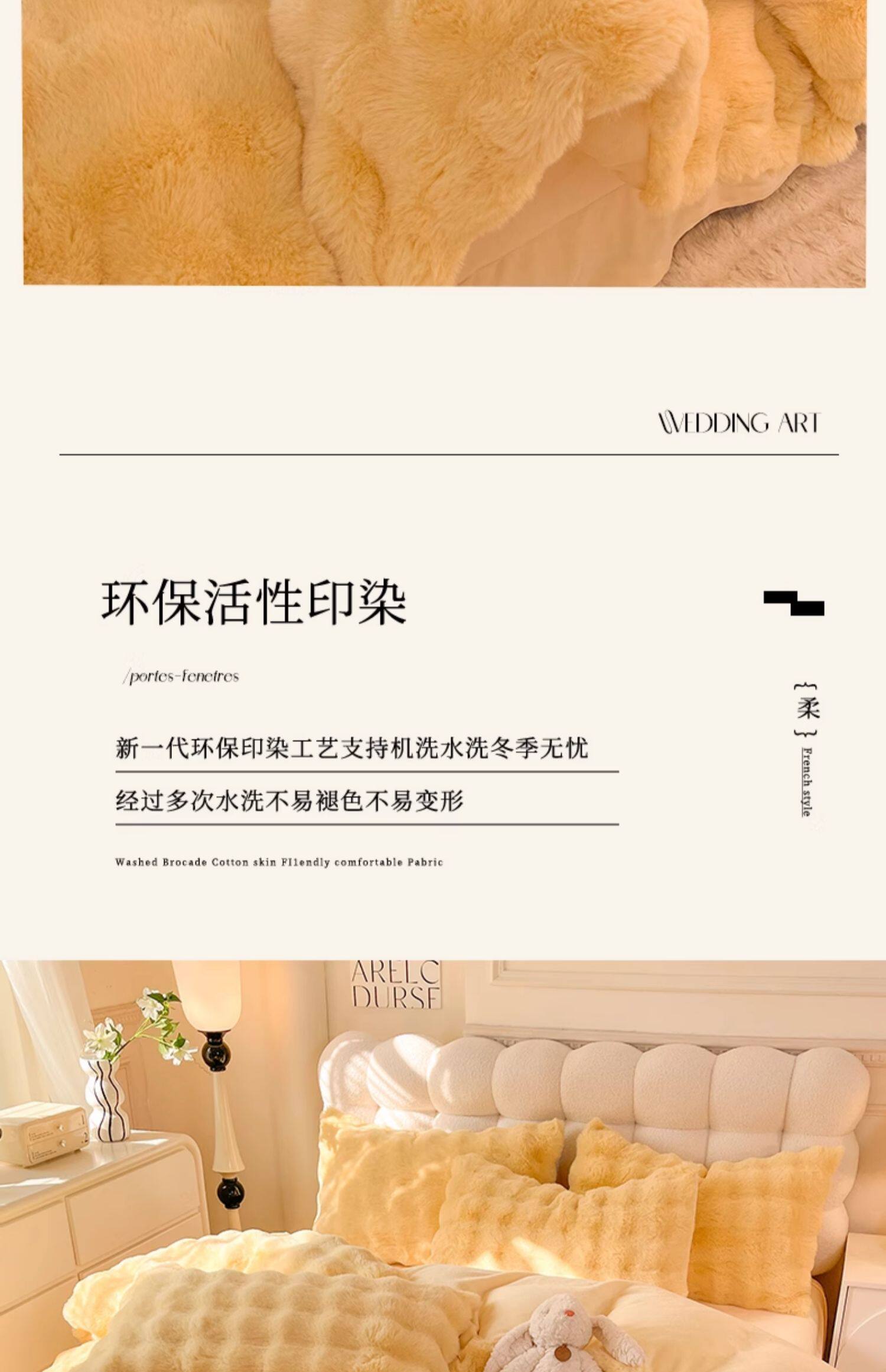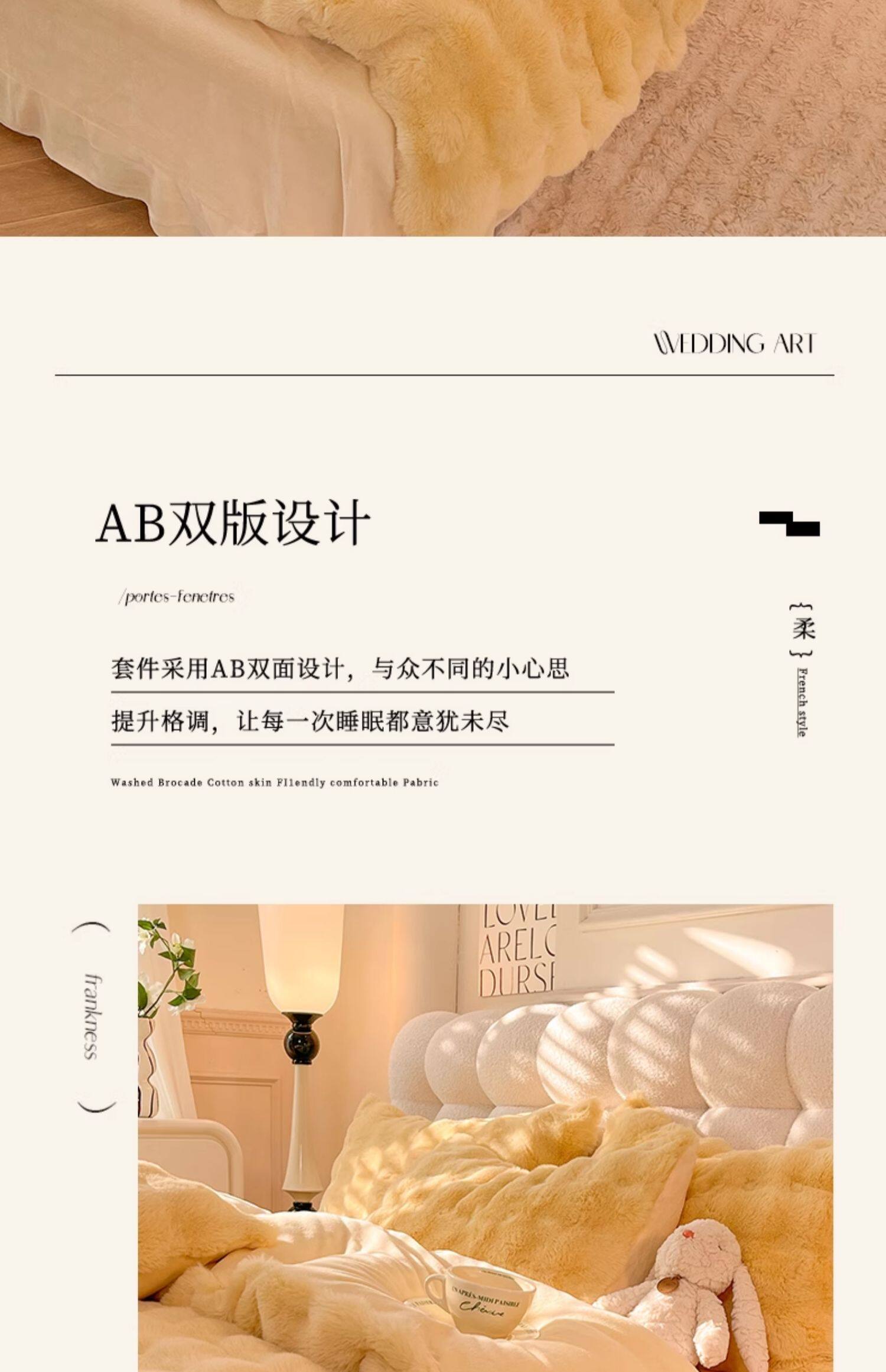 冬季兔毛牛奶絨床上四件套珊瑚絨被套加厚保暖少女心床單公主床包