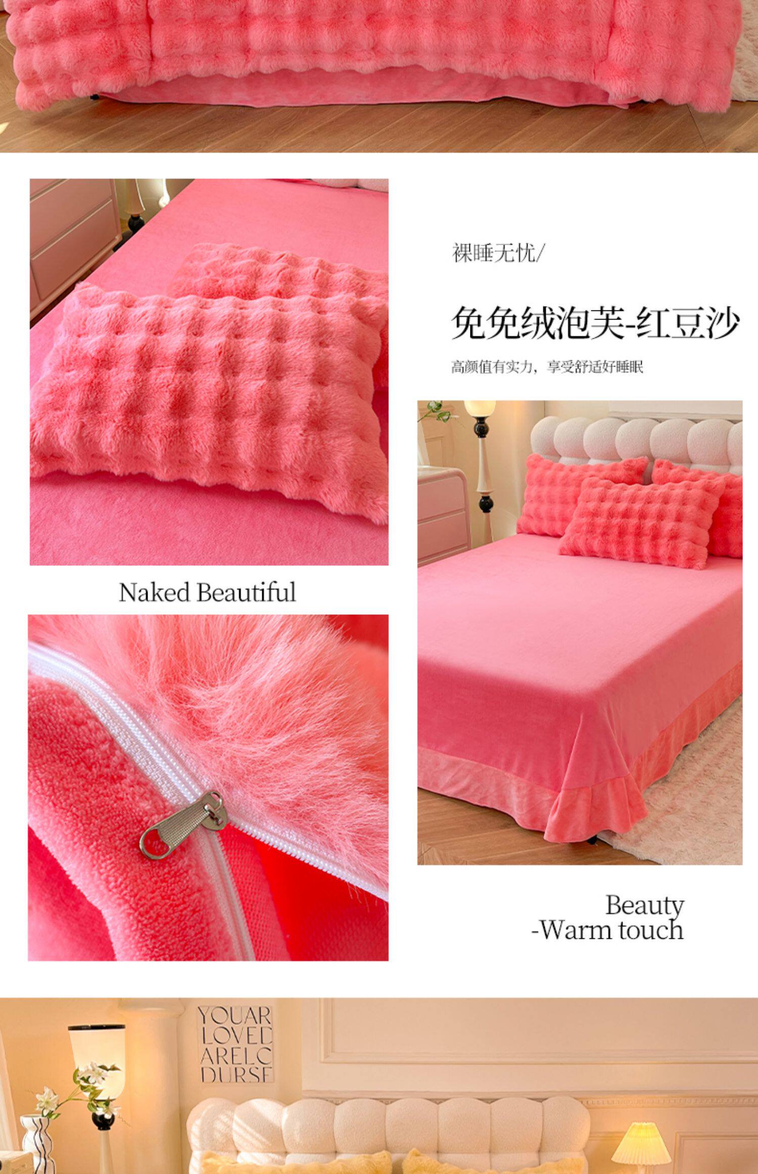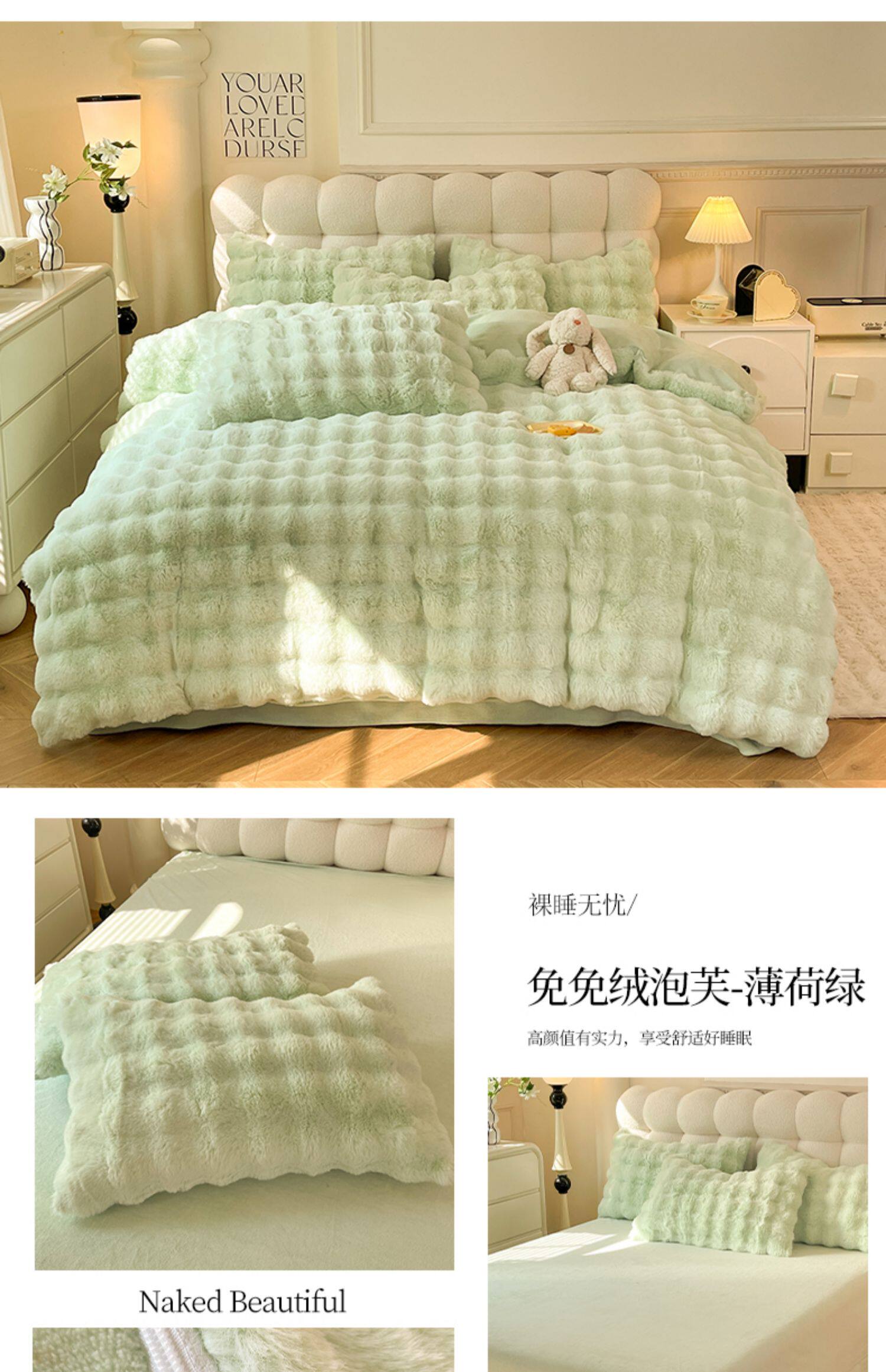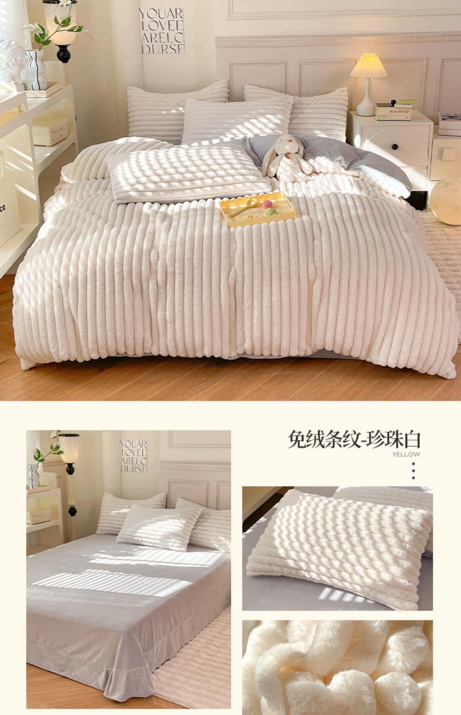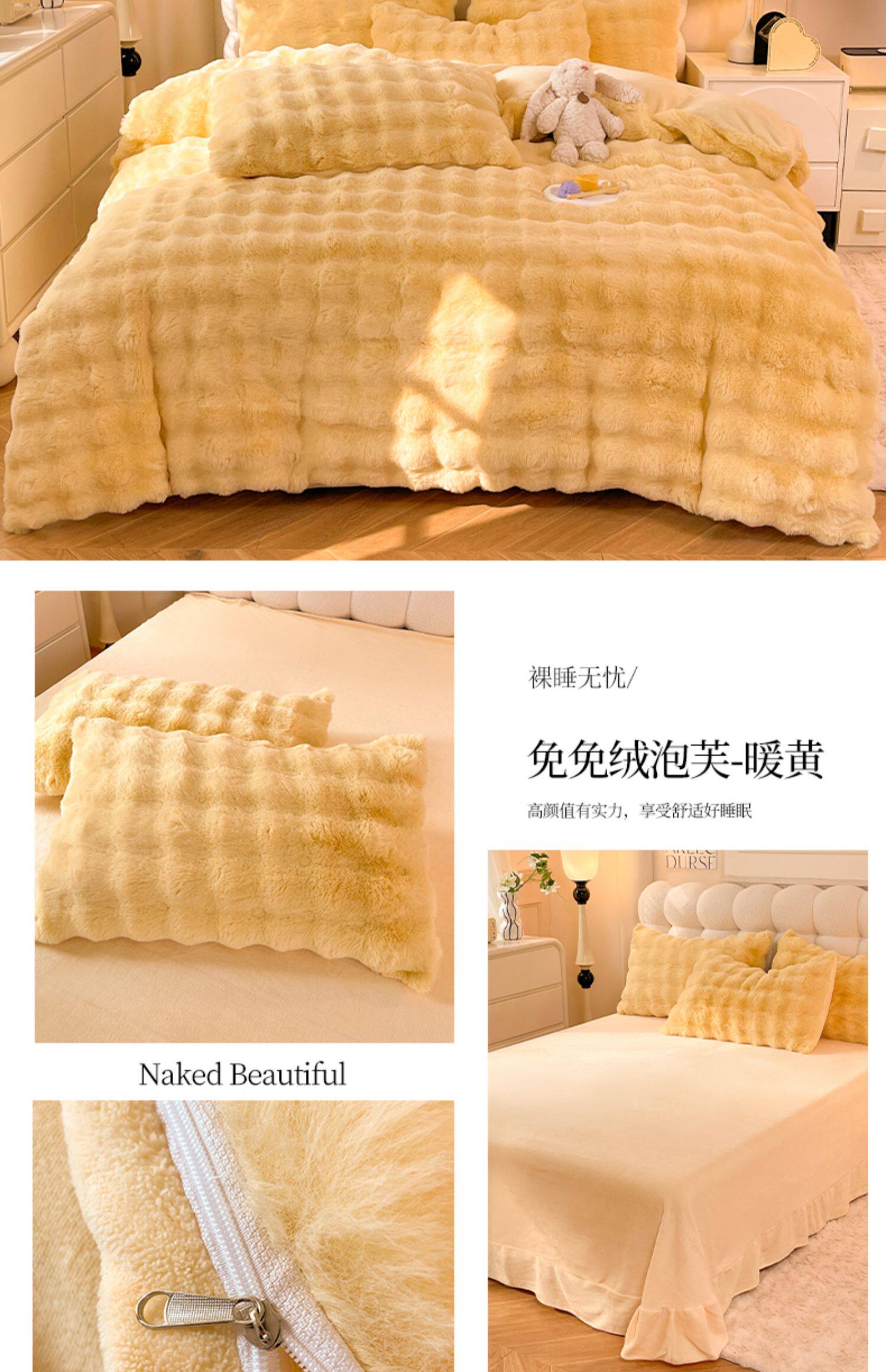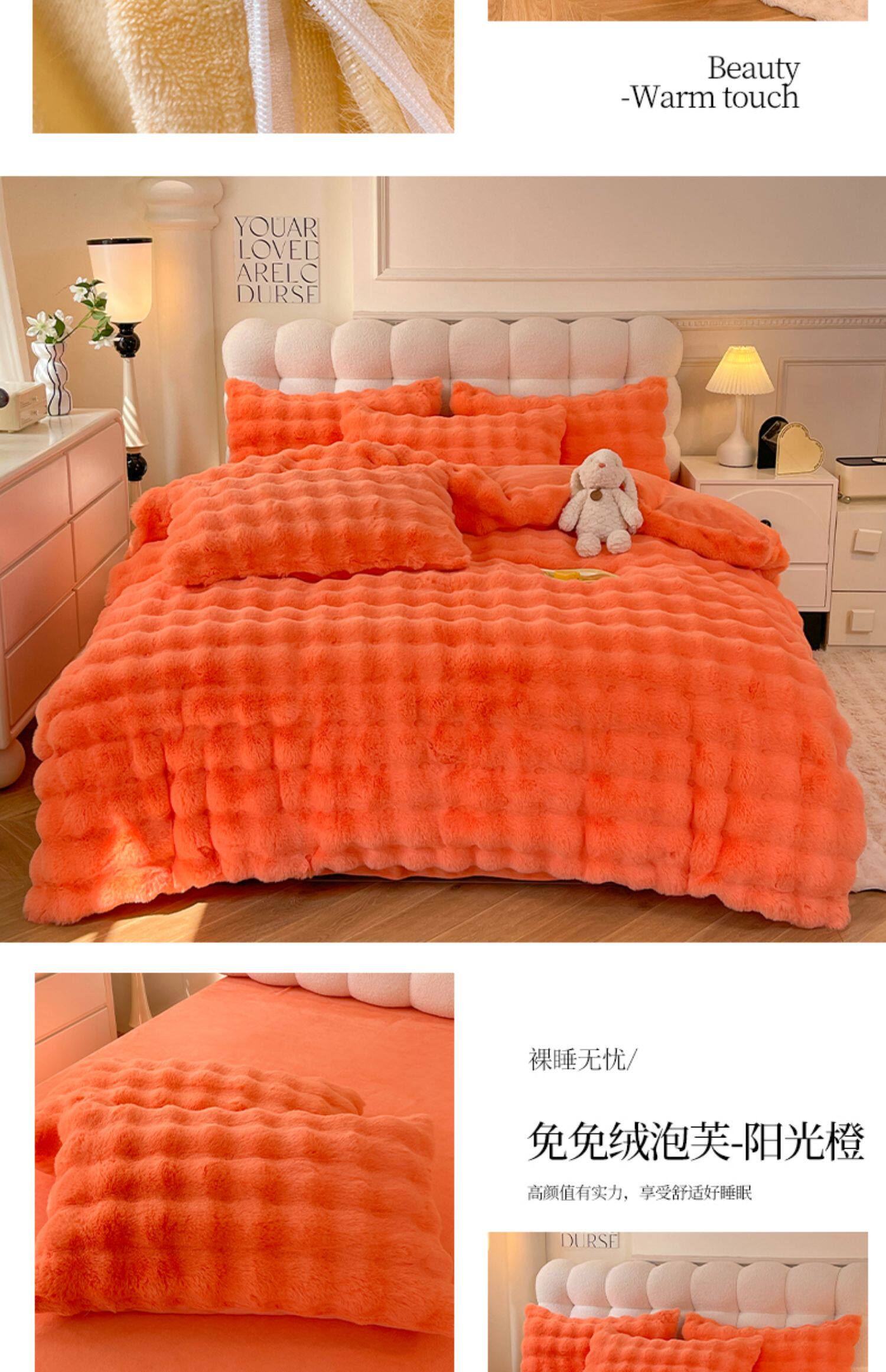 冬季兔毛牛奶絨床上四件套珊瑚絨被套加厚保暖少女心床單公主床包