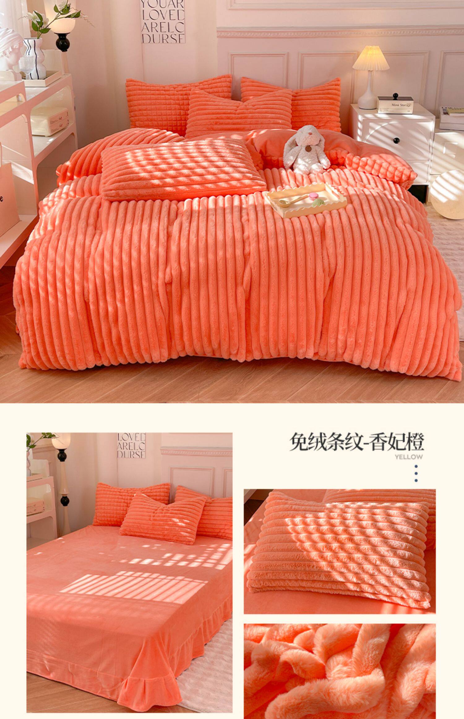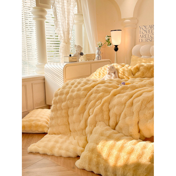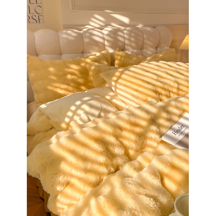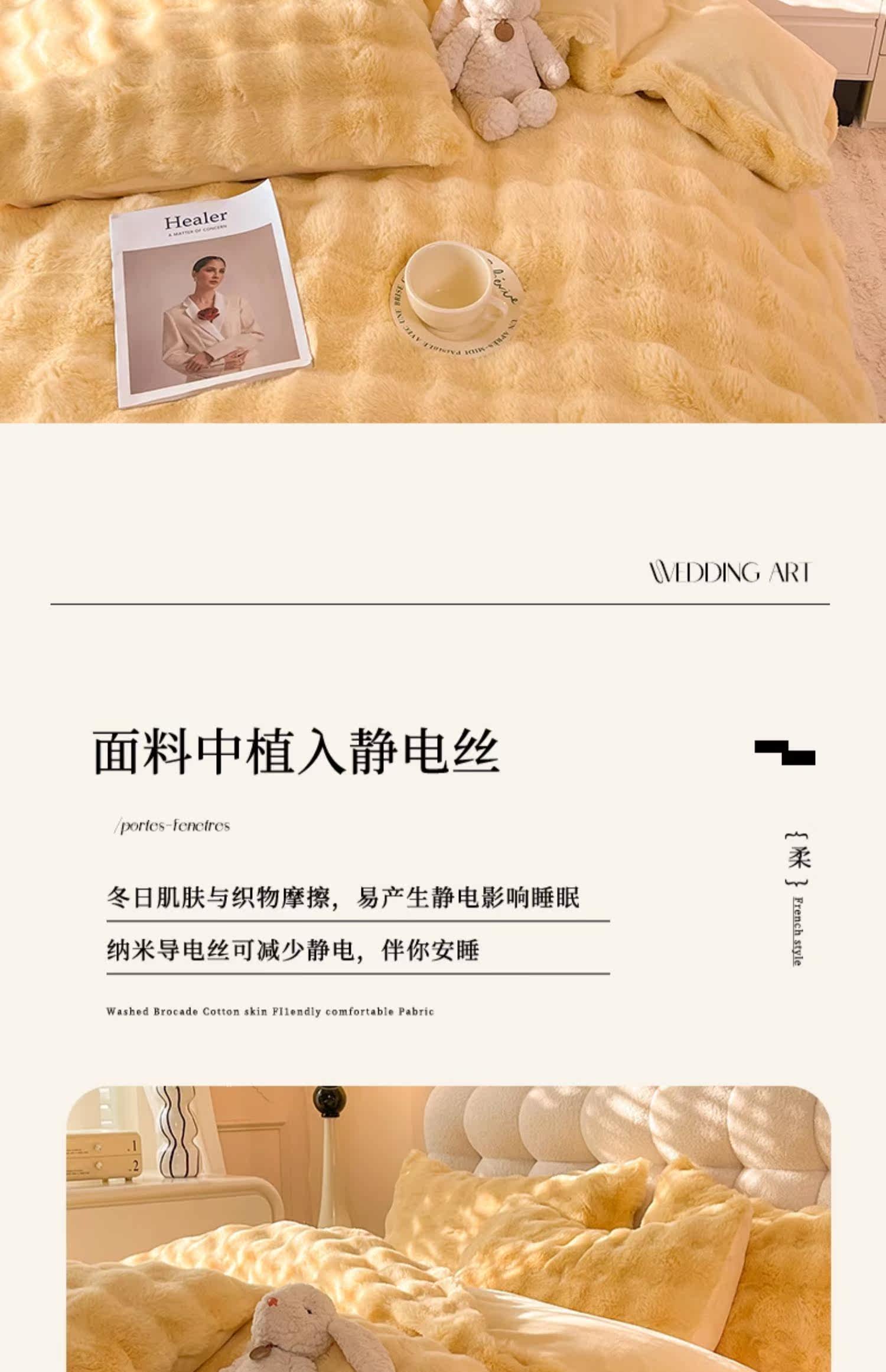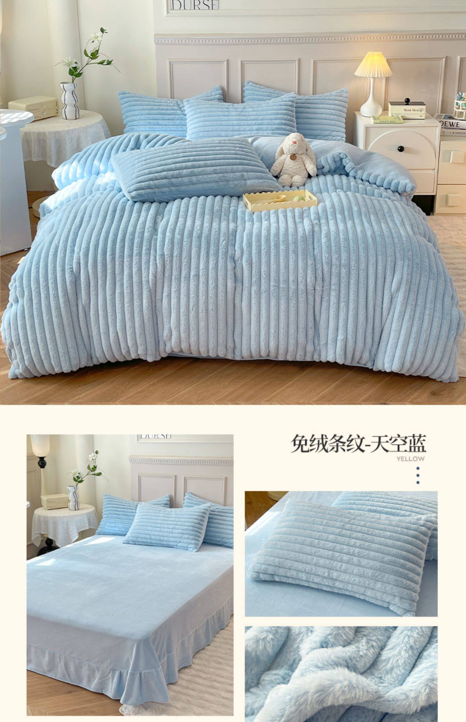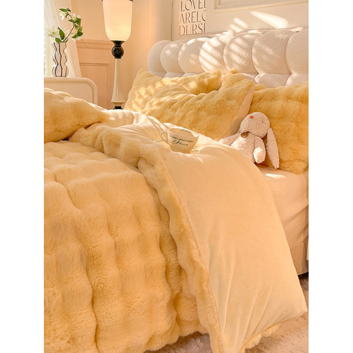 冬季兔毛牛奶絨床上四件套珊瑚絨被套加厚保暖少女心床單公主床包