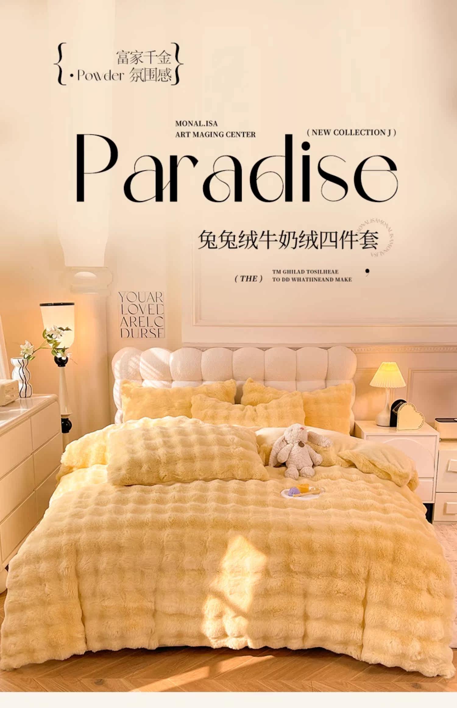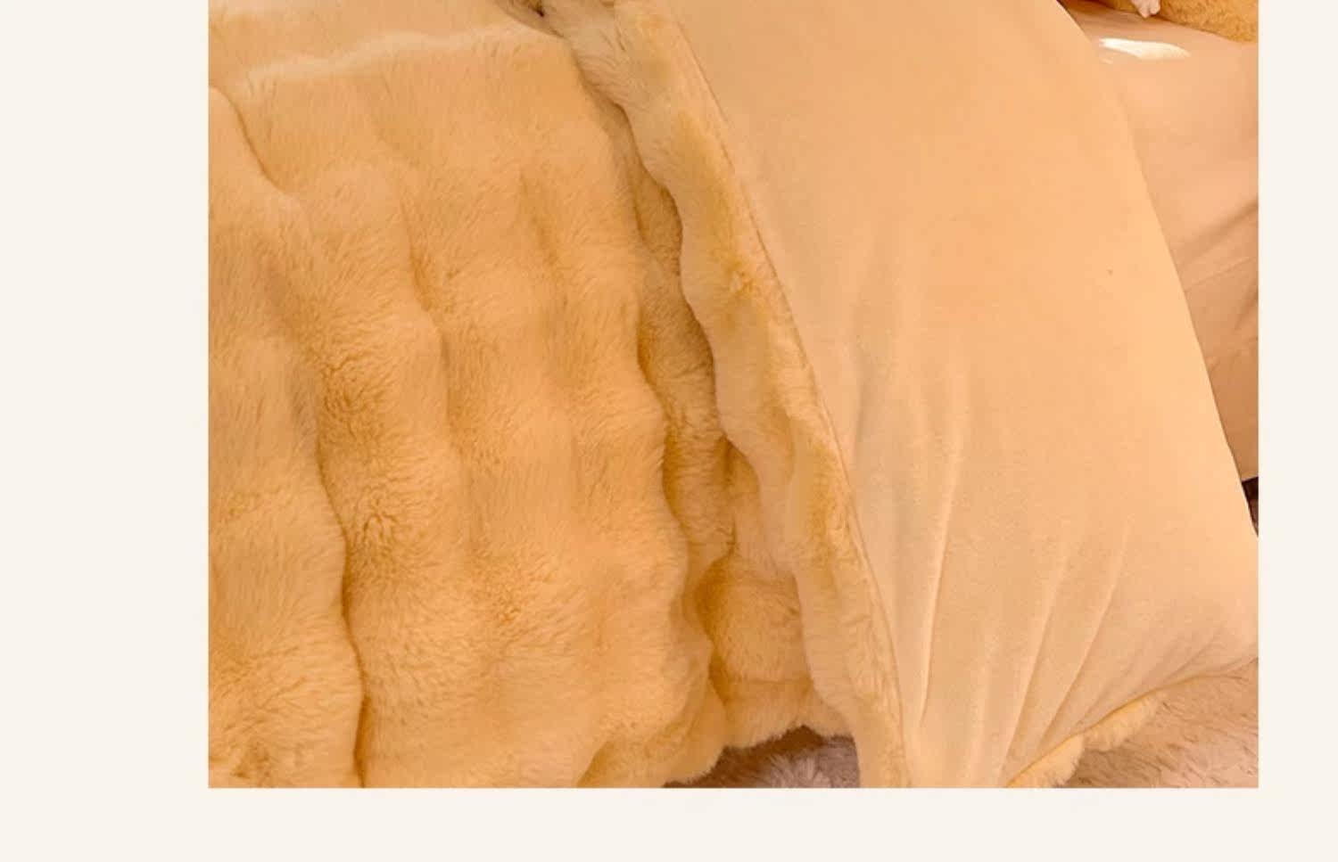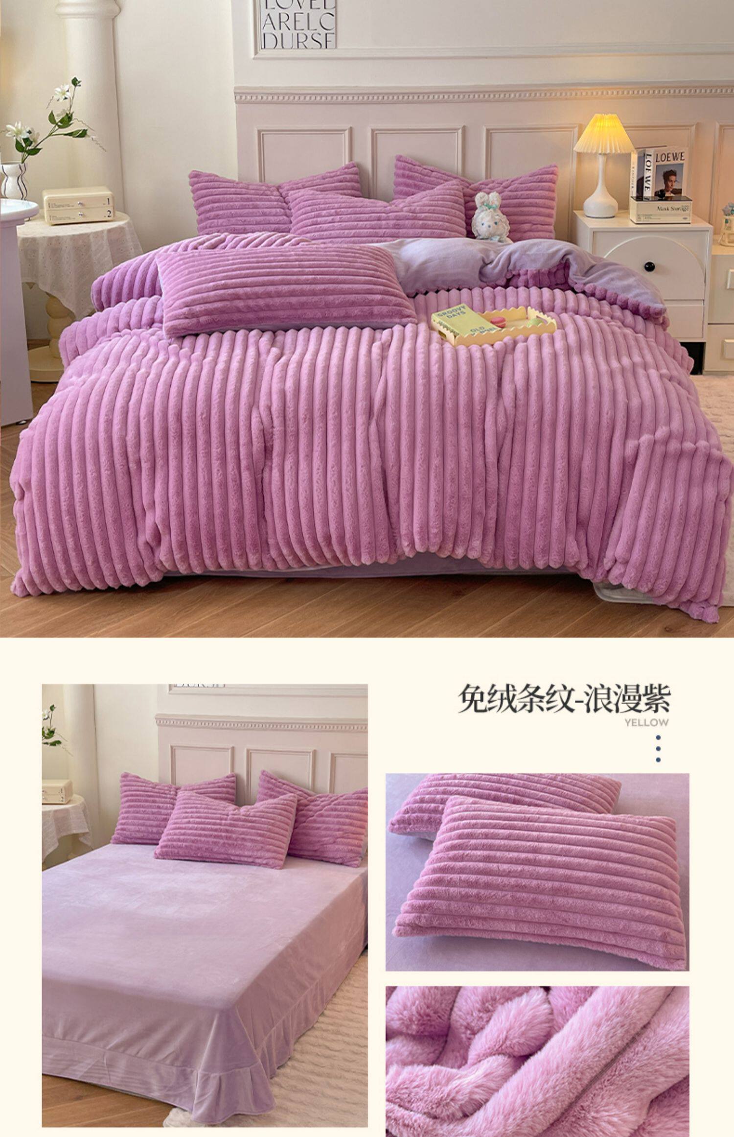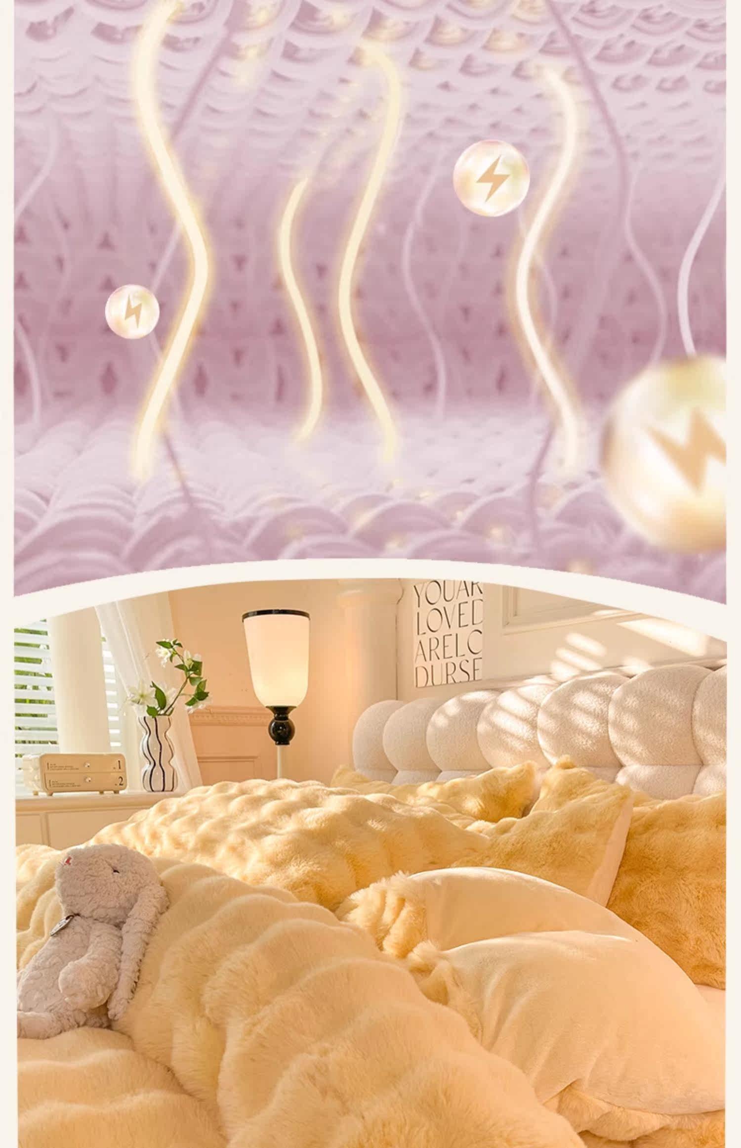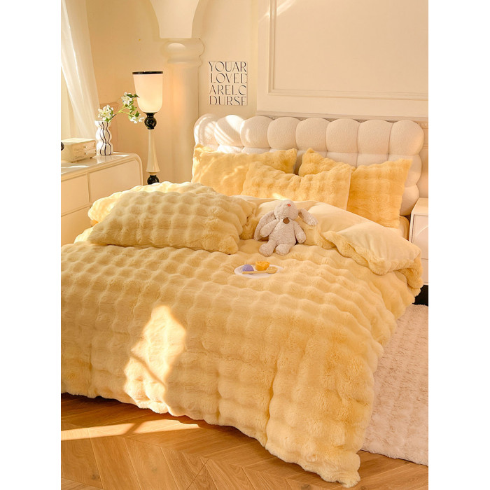 冬季兔毛牛奶絨床上四件套珊瑚絨被套加厚保暖少女心床單公主床包