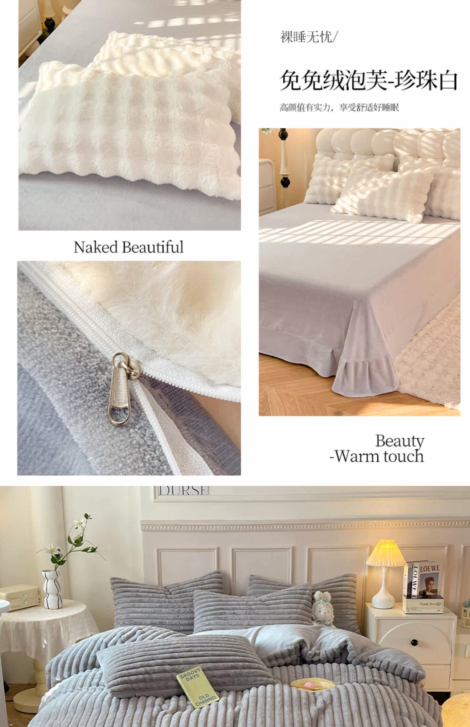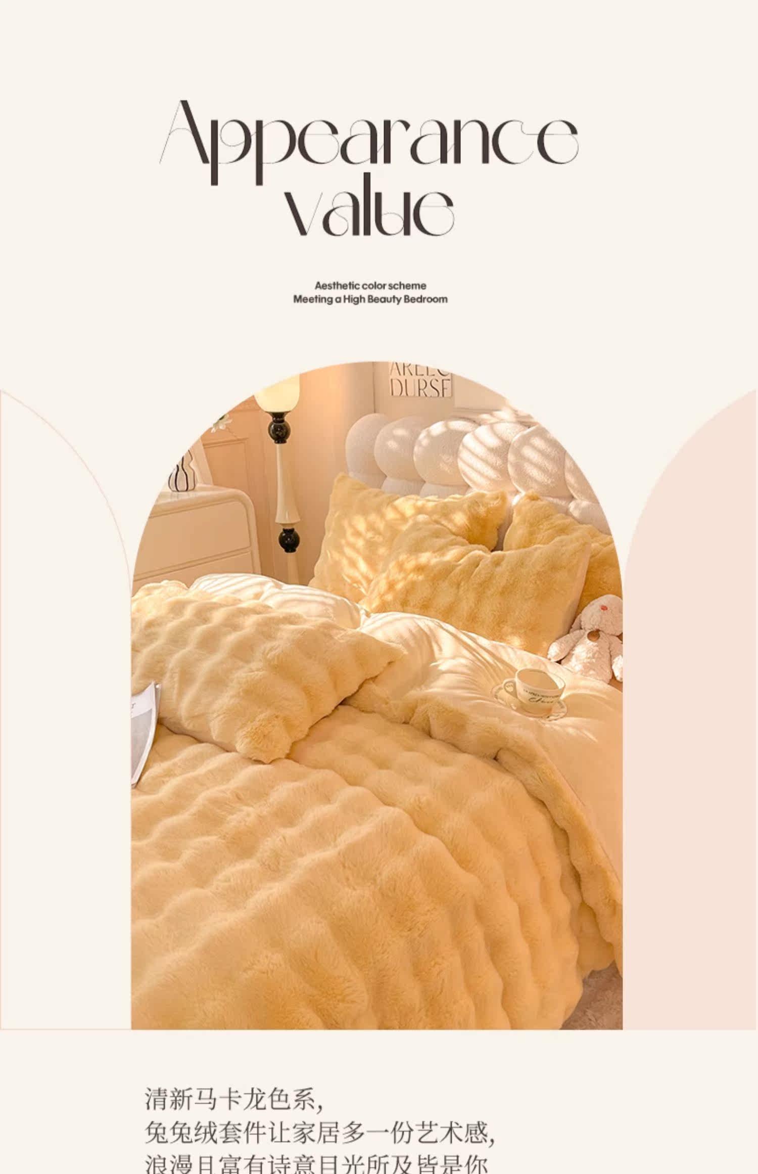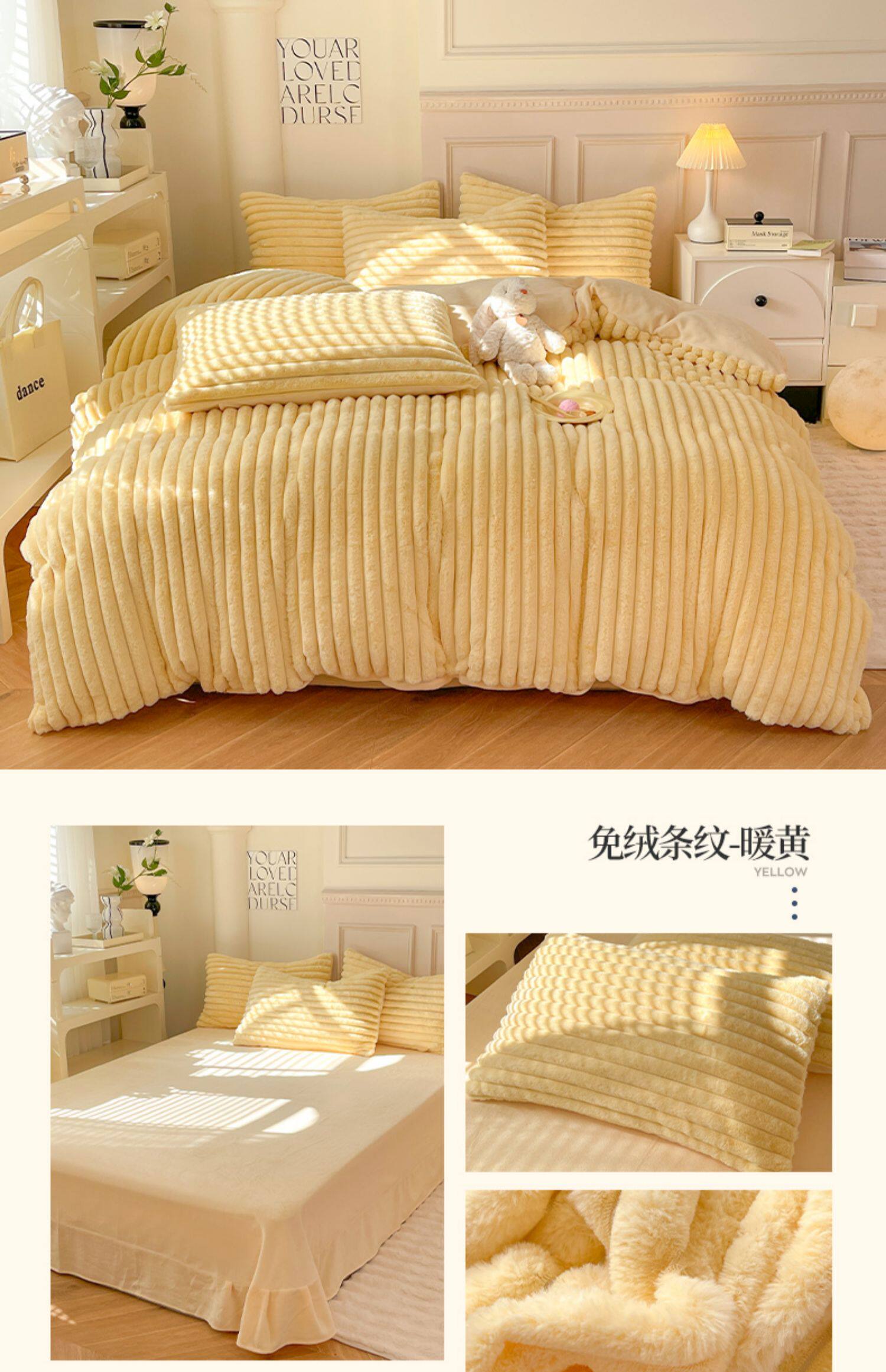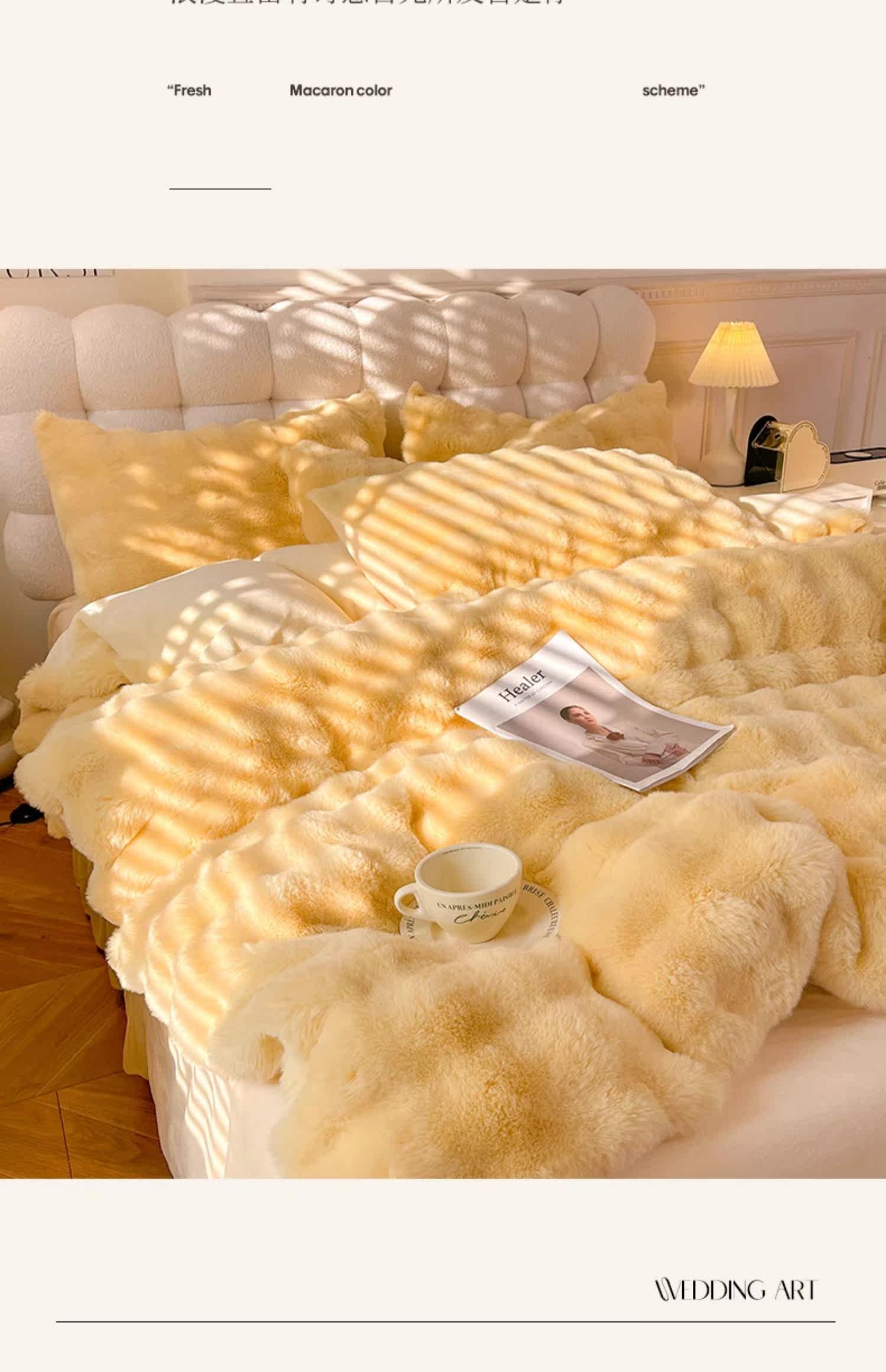 冬季兔毛牛奶絨床上四件套珊瑚絨被套加厚保暖少女心床單公主床包