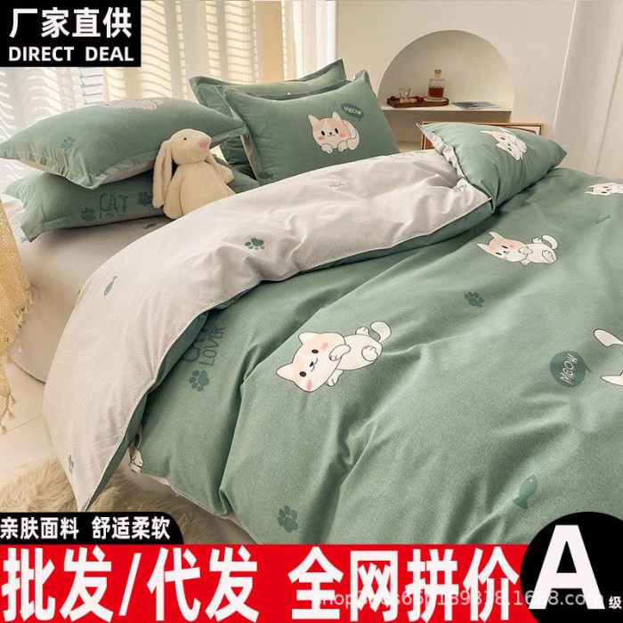 單件水洗棉學生宿捨床單人被罩150x200x230雙人被單被套