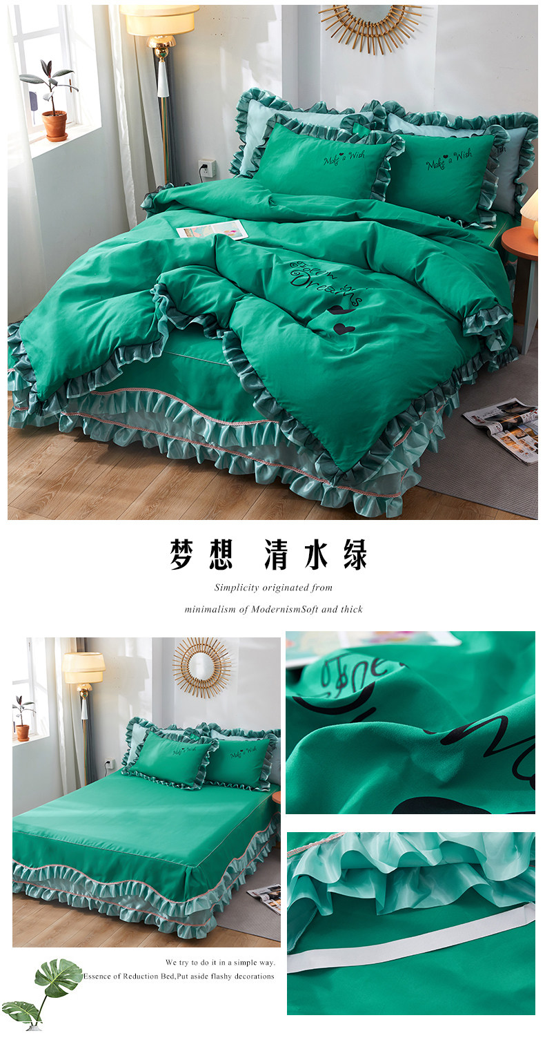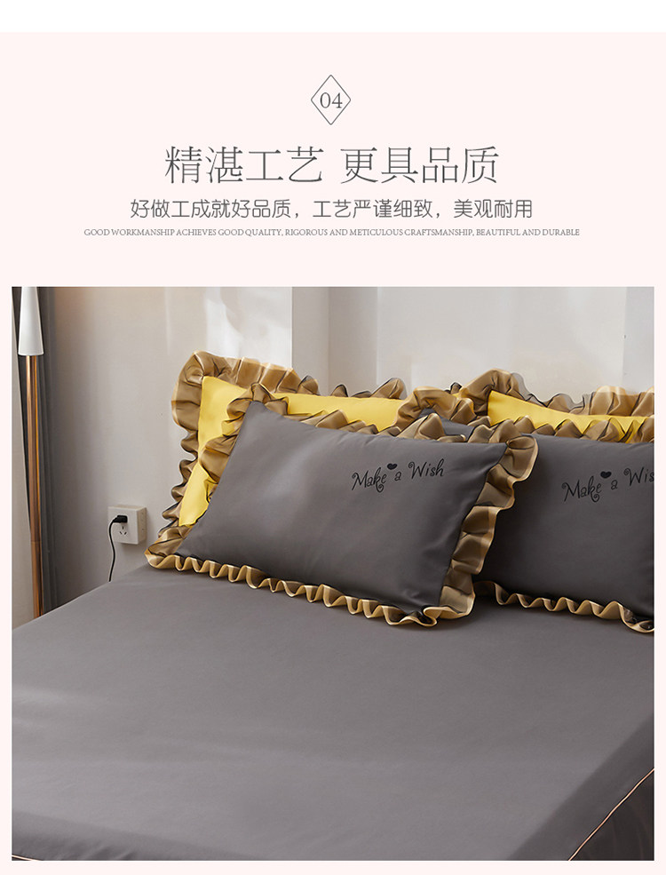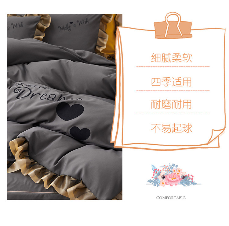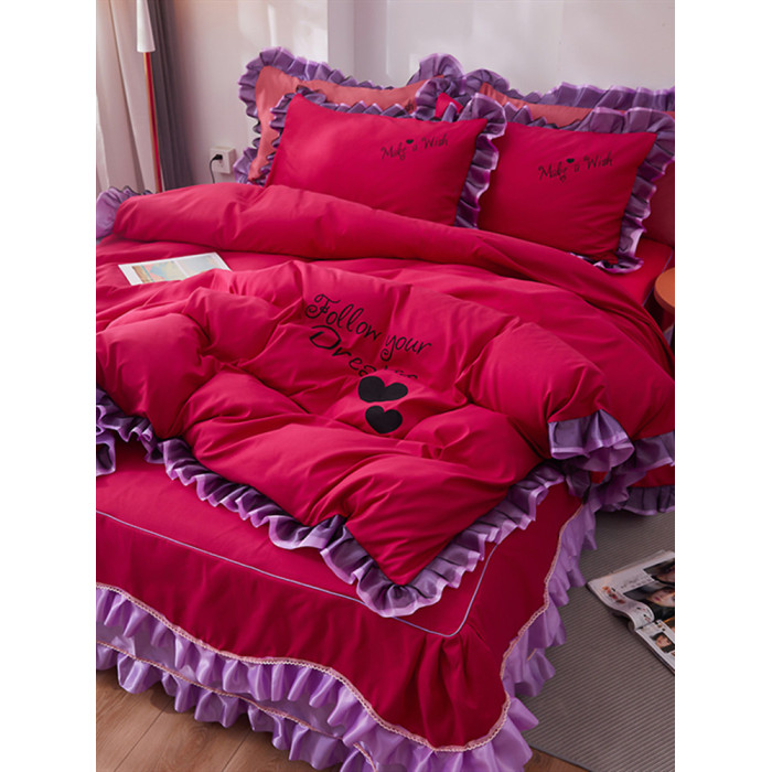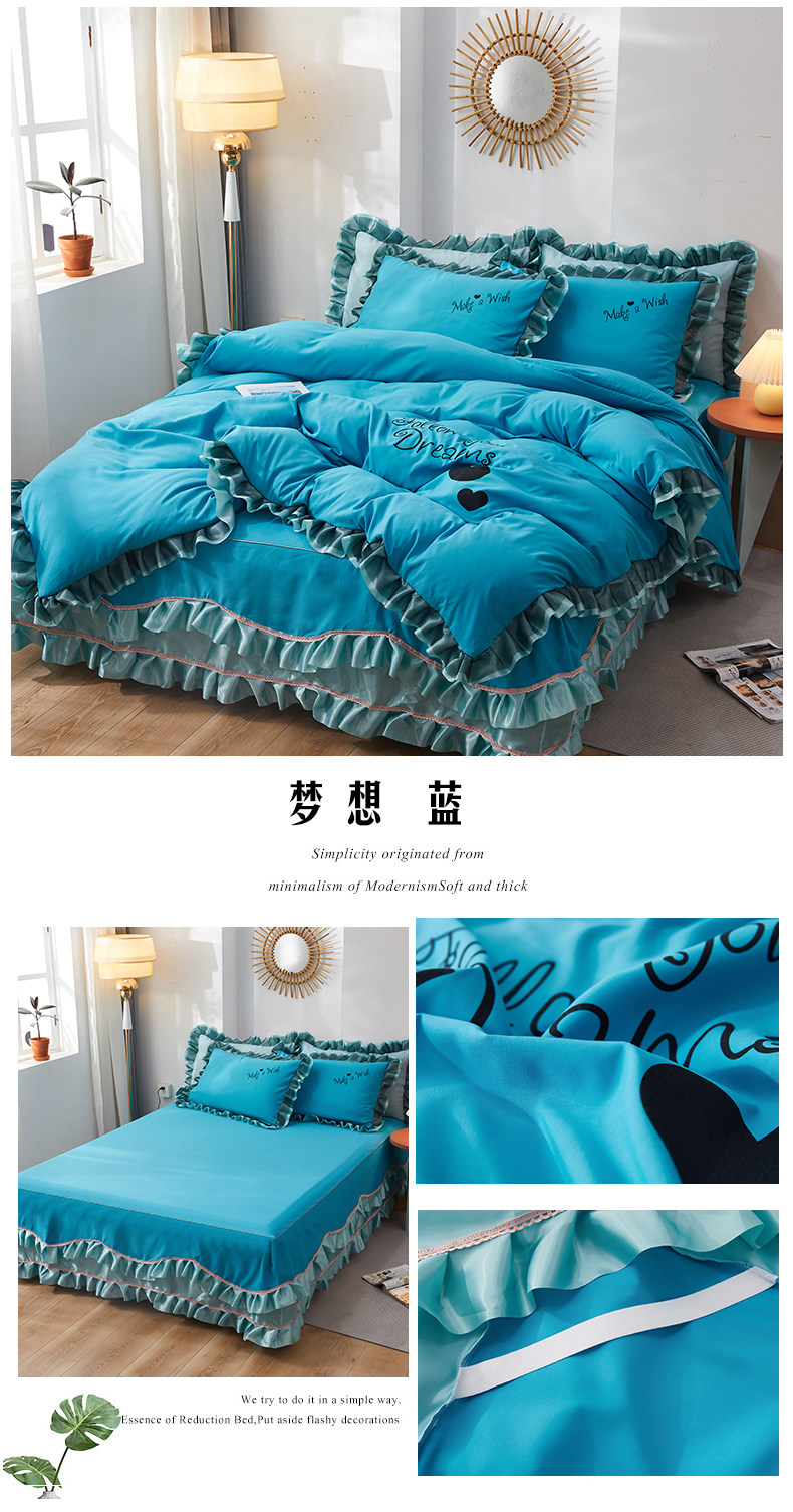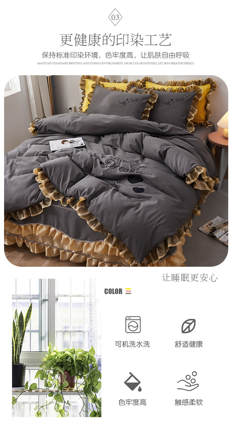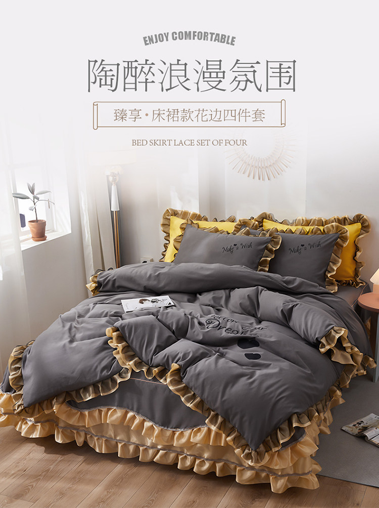 韓式花邊四件套床裙款純棉全棉被罩裸睡防滑床罩式家用床上三件套