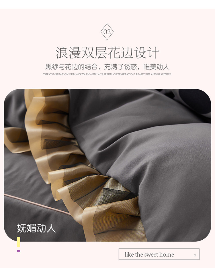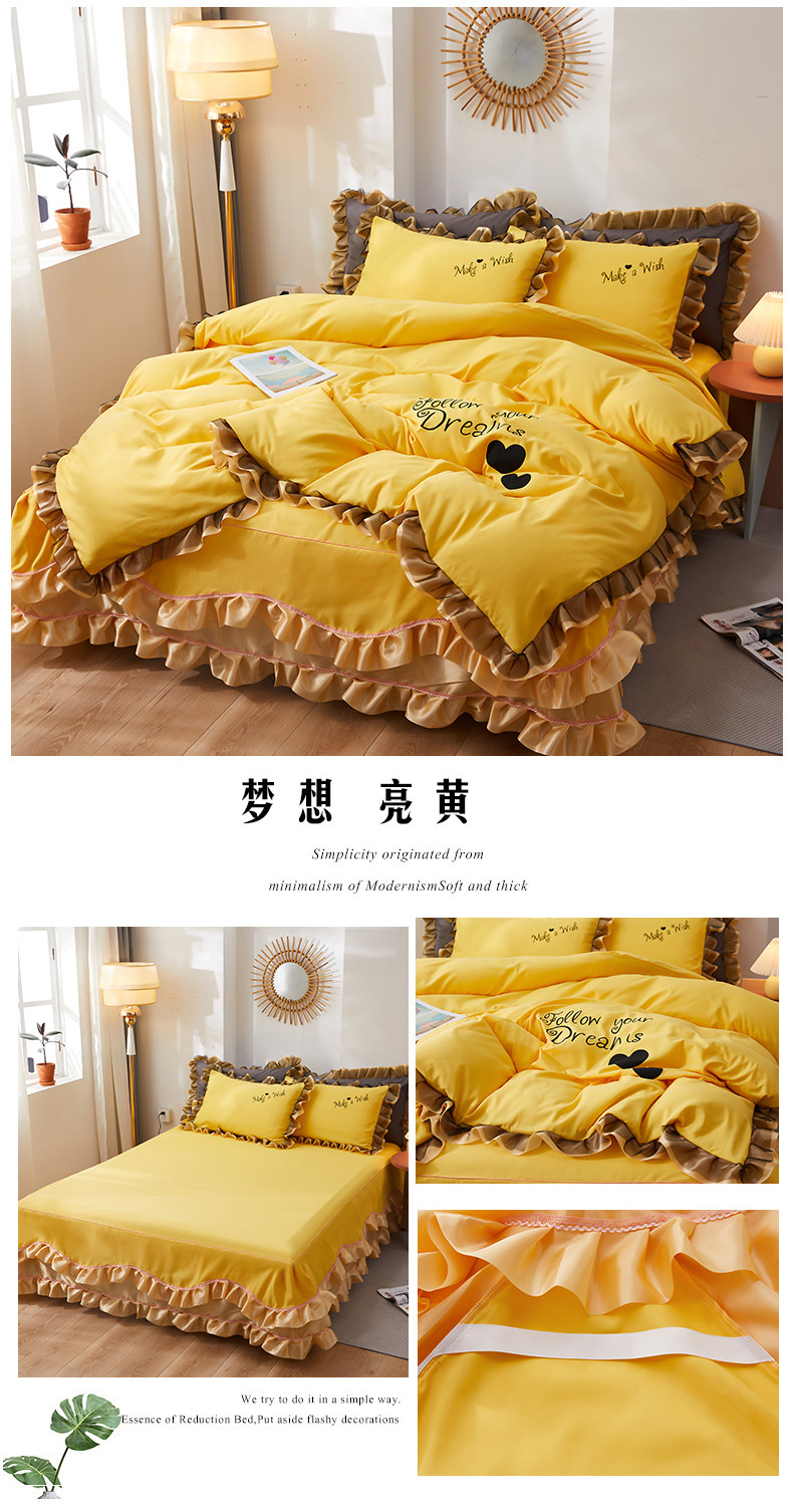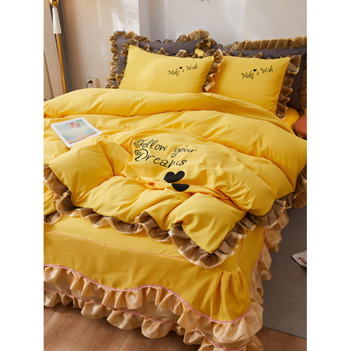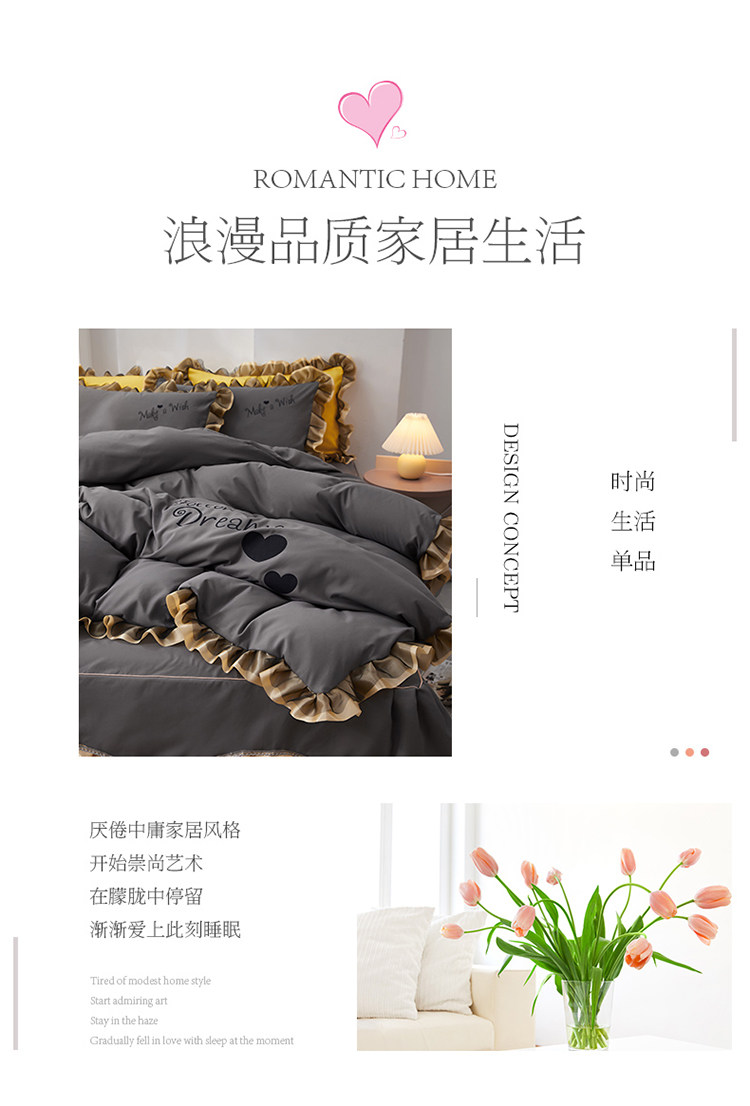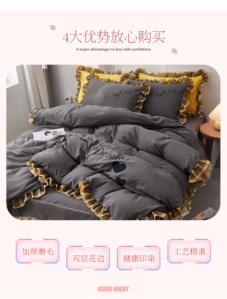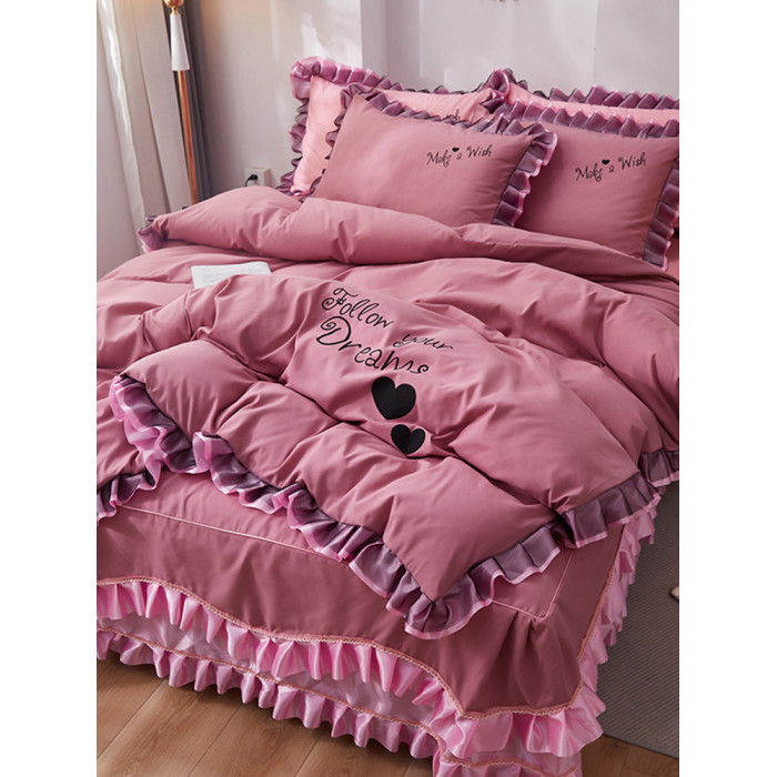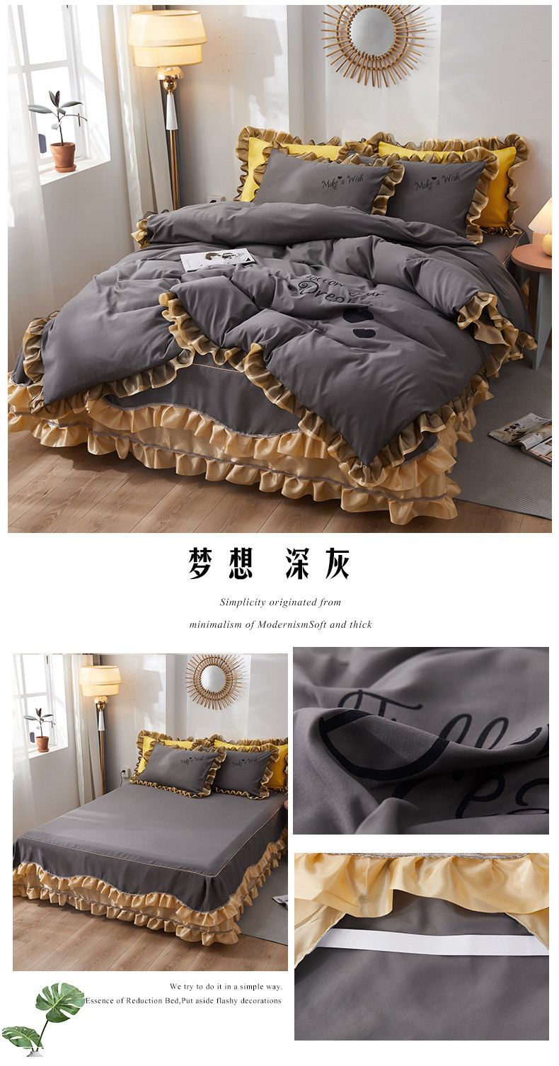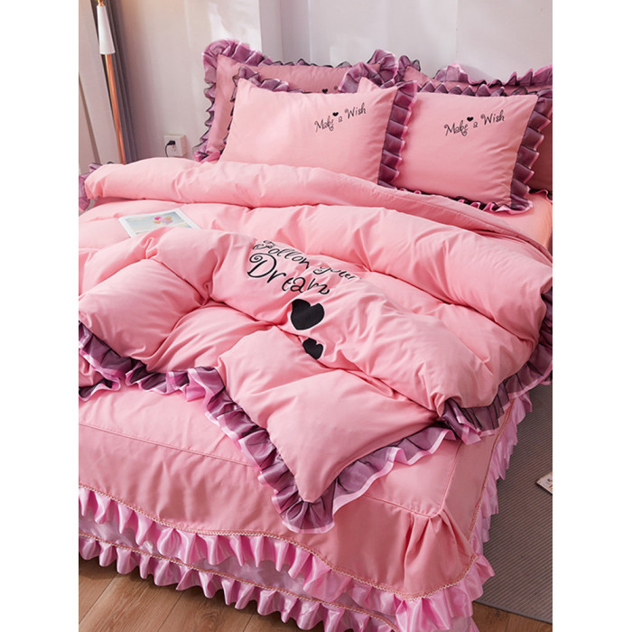 韓式花邊四件套床裙款純棉全棉被罩裸睡防滑床罩式家用床上三件套