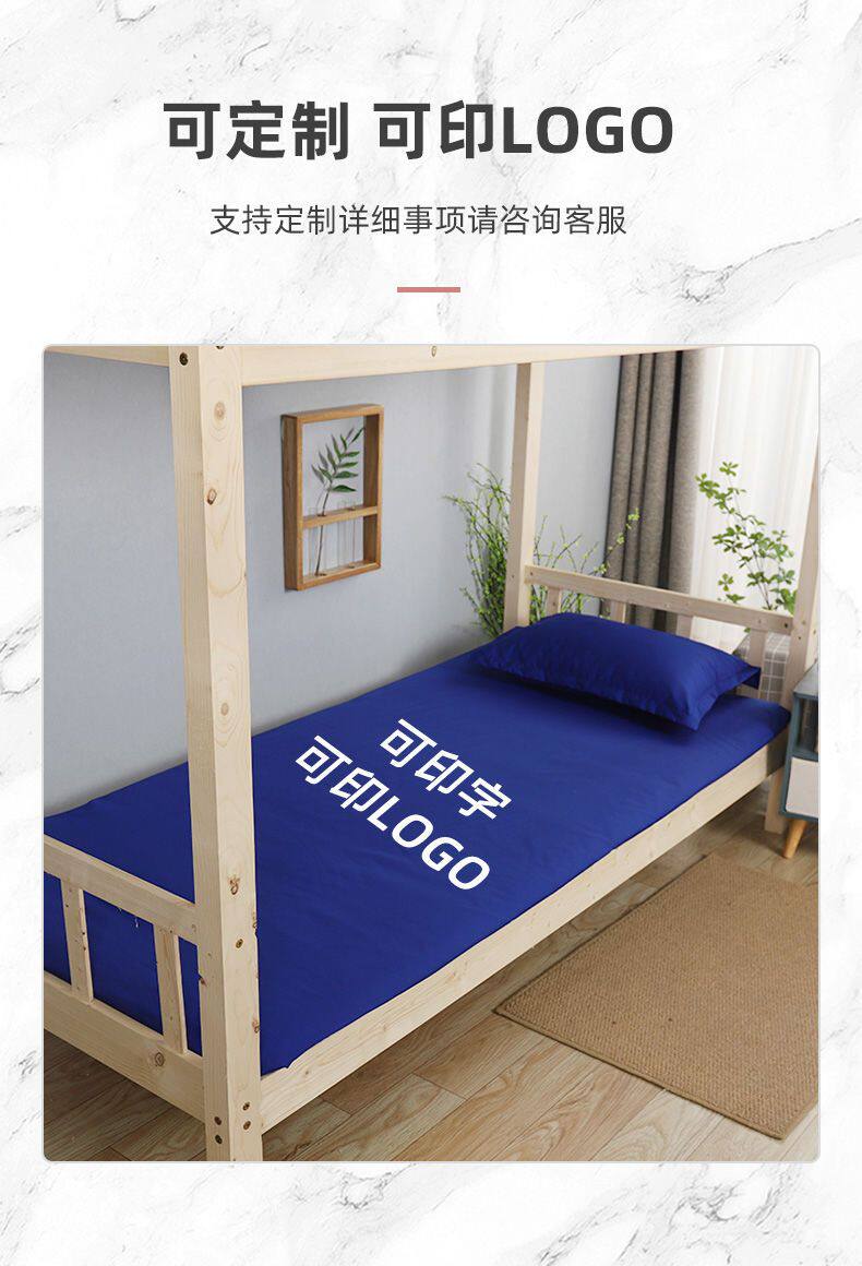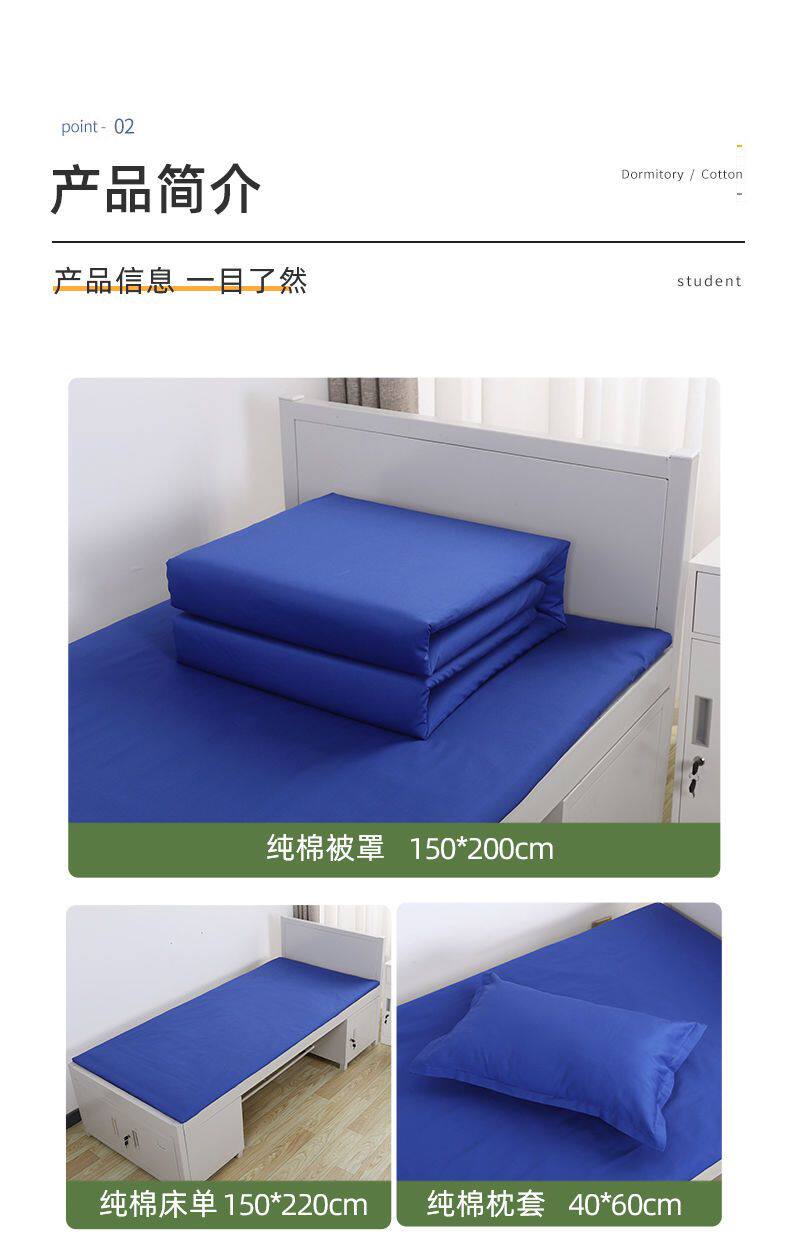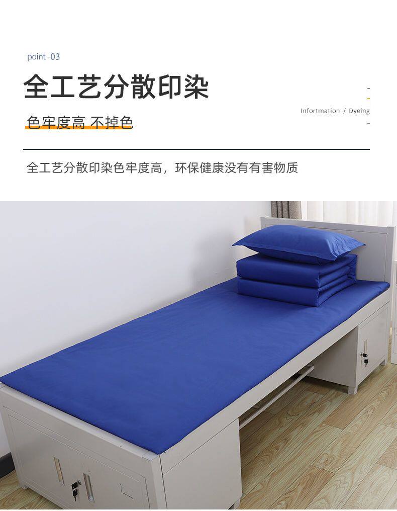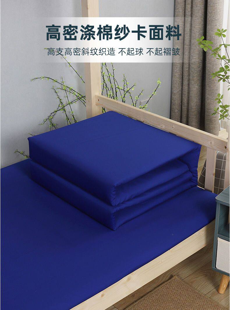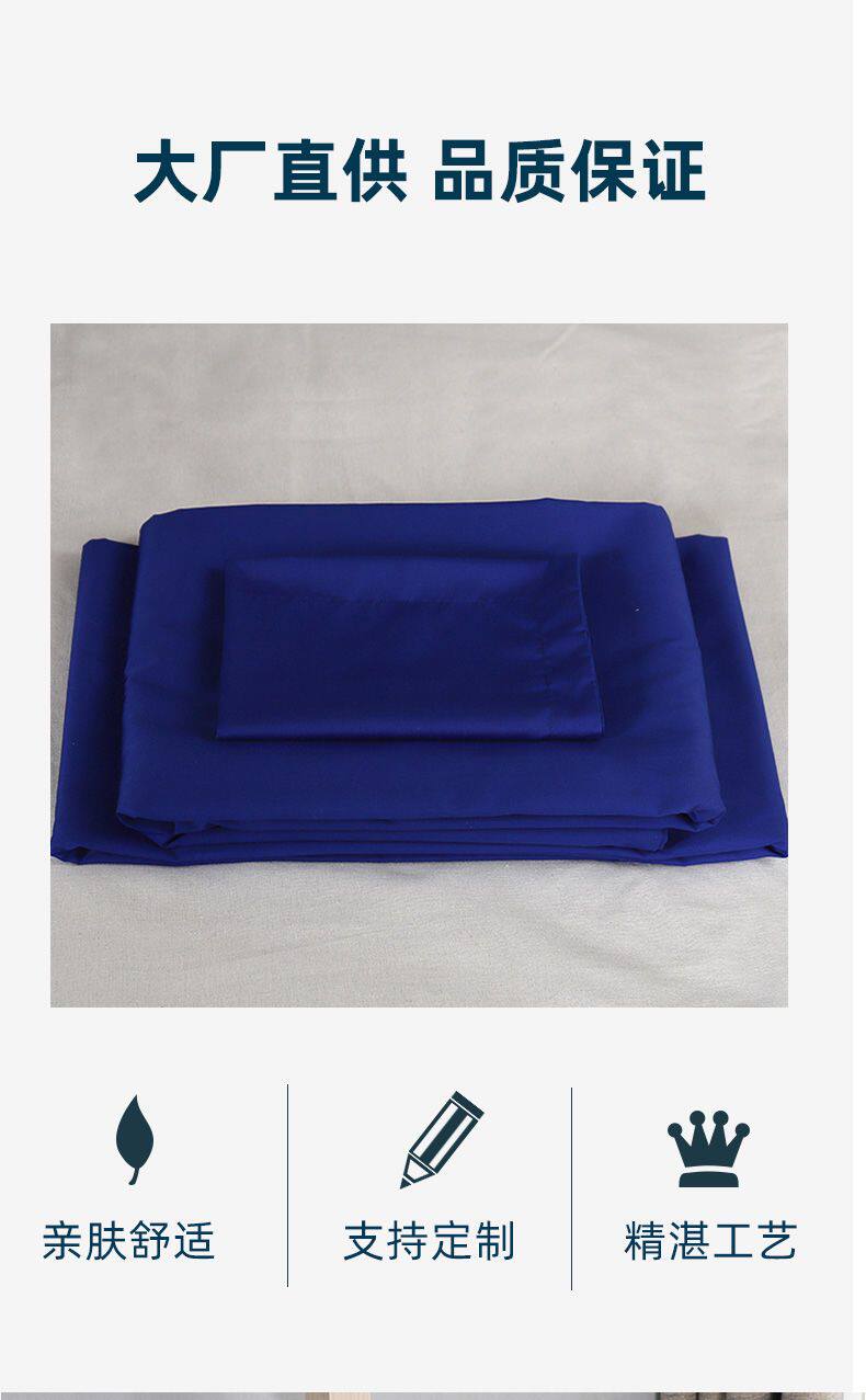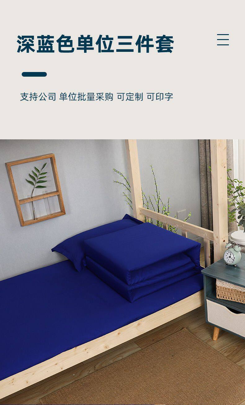 高級純棉深藍色床單三件套純色火焰藍湖藍色床單單位宿捨床上用品