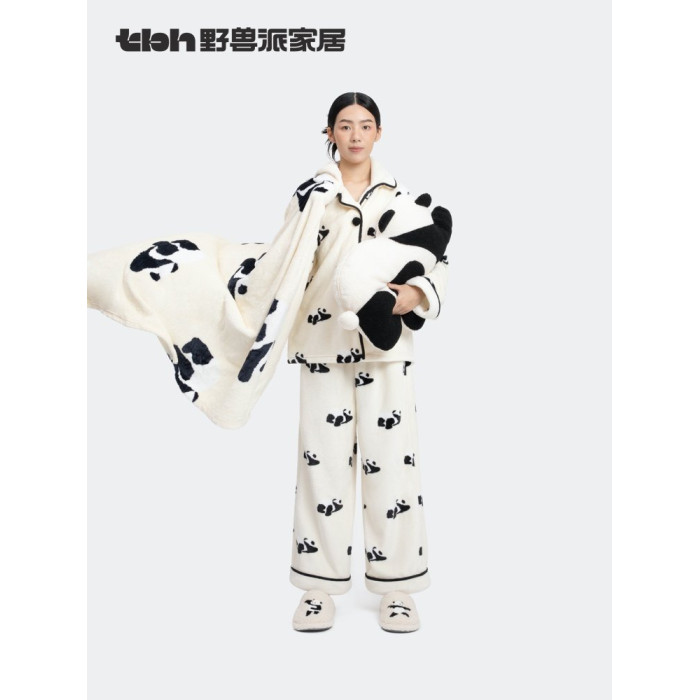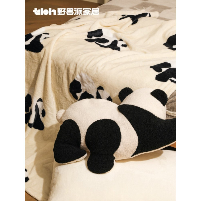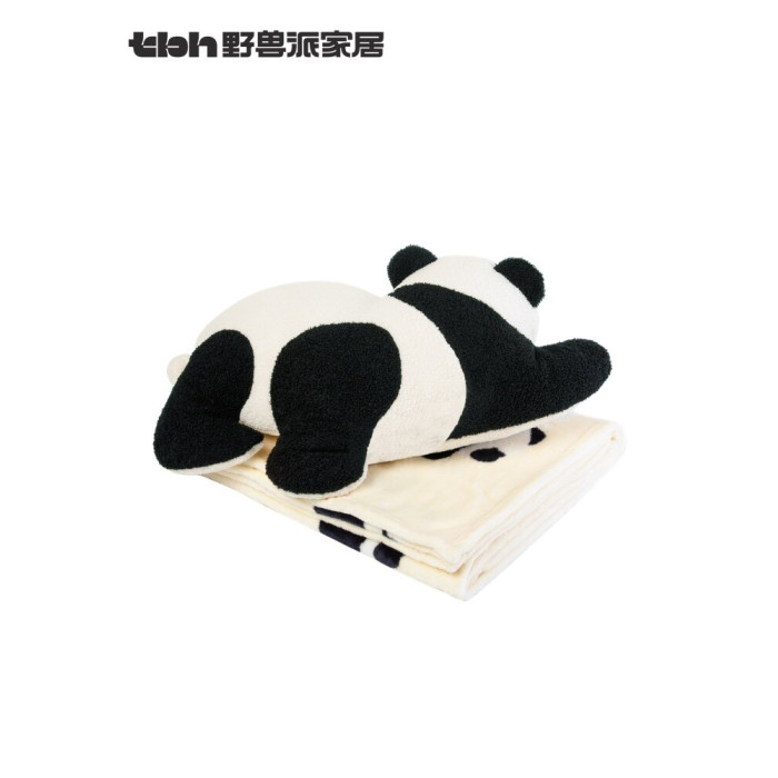 tbh野獸派家居熊貓嘭嘭抱枕毯子二合一法蘭絨暖香毯車用車內靠枕