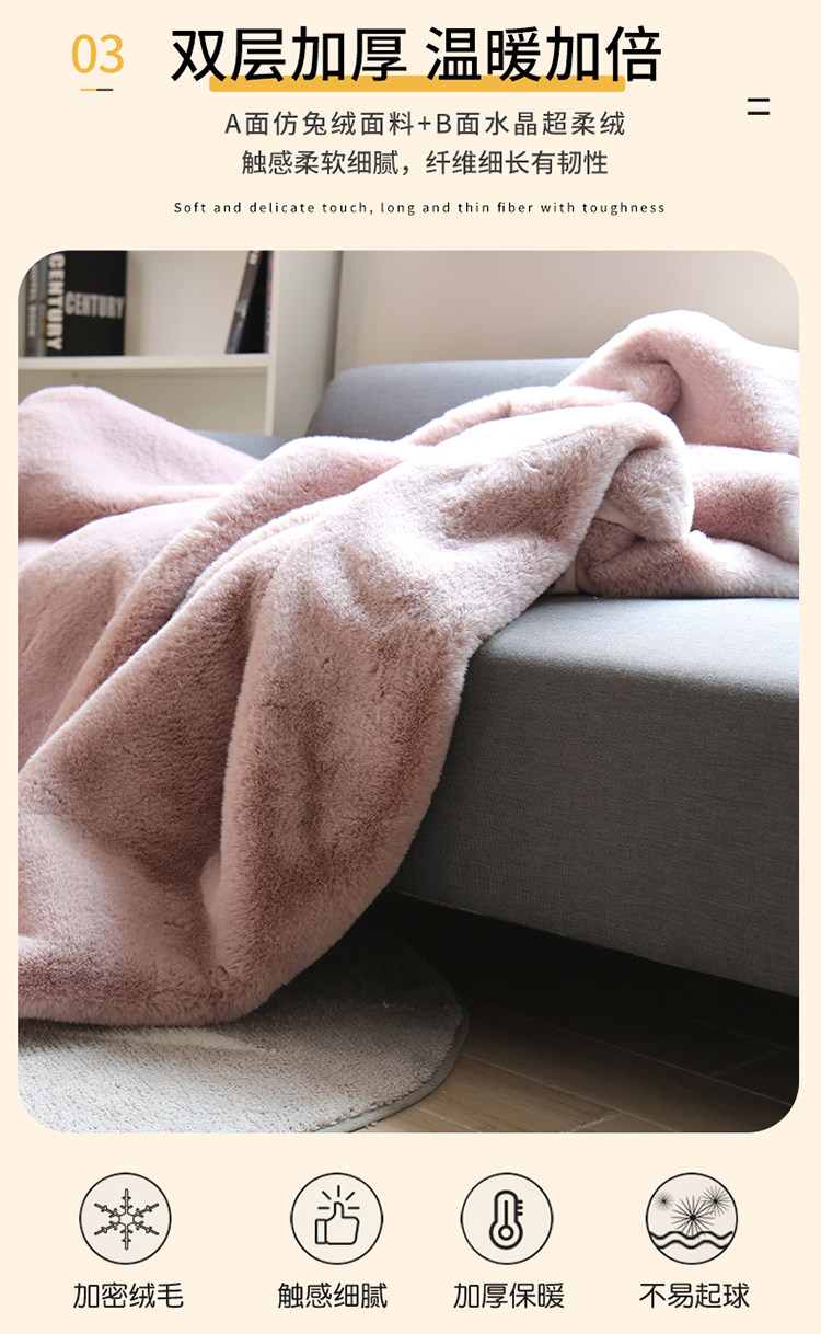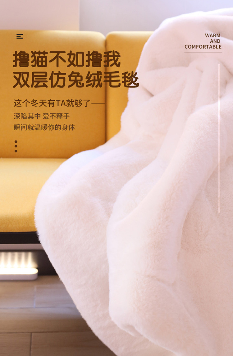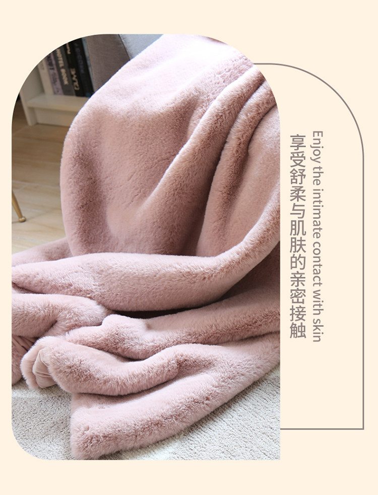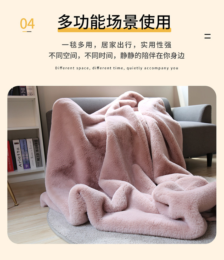 超厚款雙層仿兔毛大尺寸沙發毯子白灰粉色輕奢仿皮草床尾蓋毯搭毯
