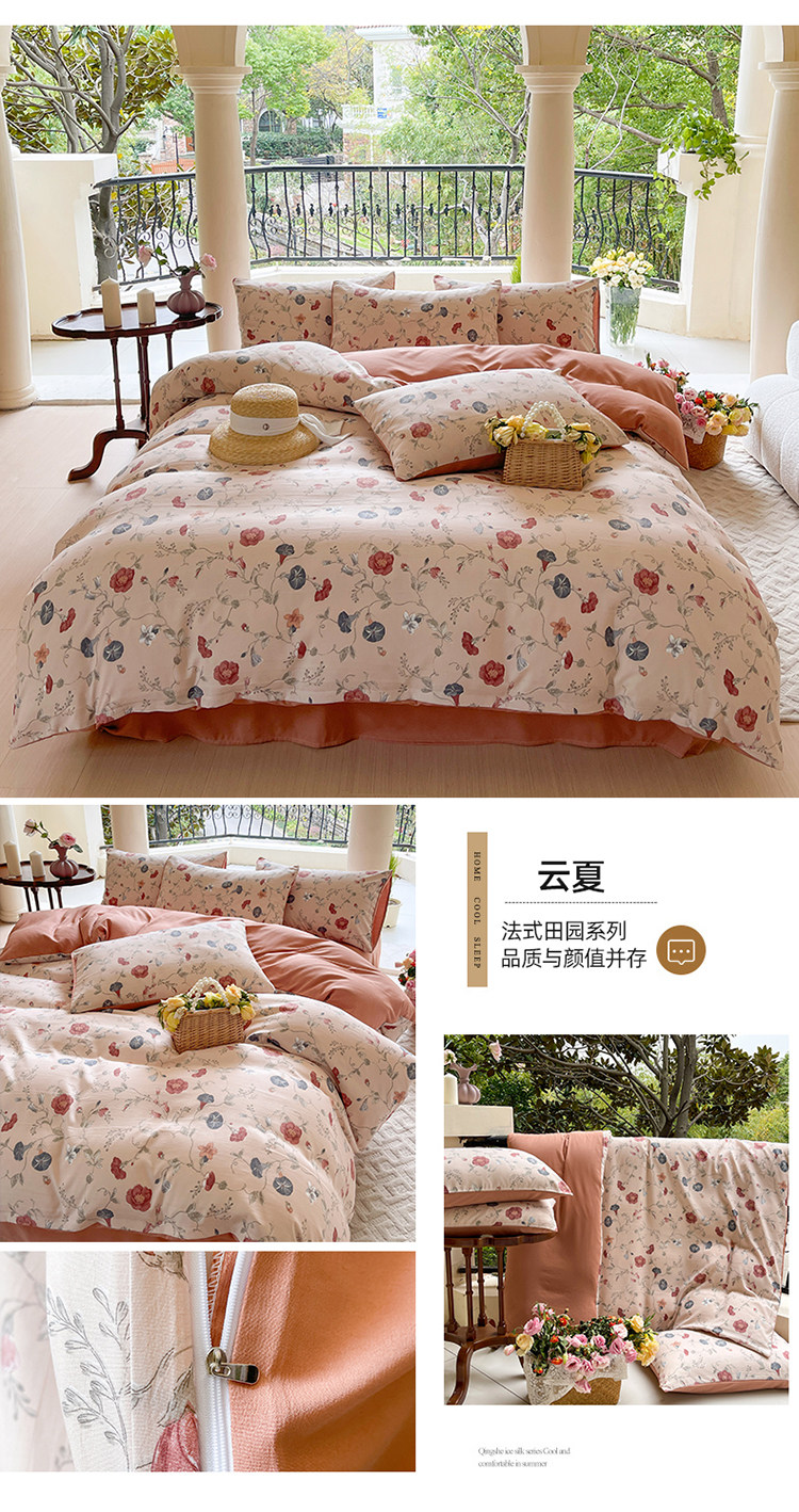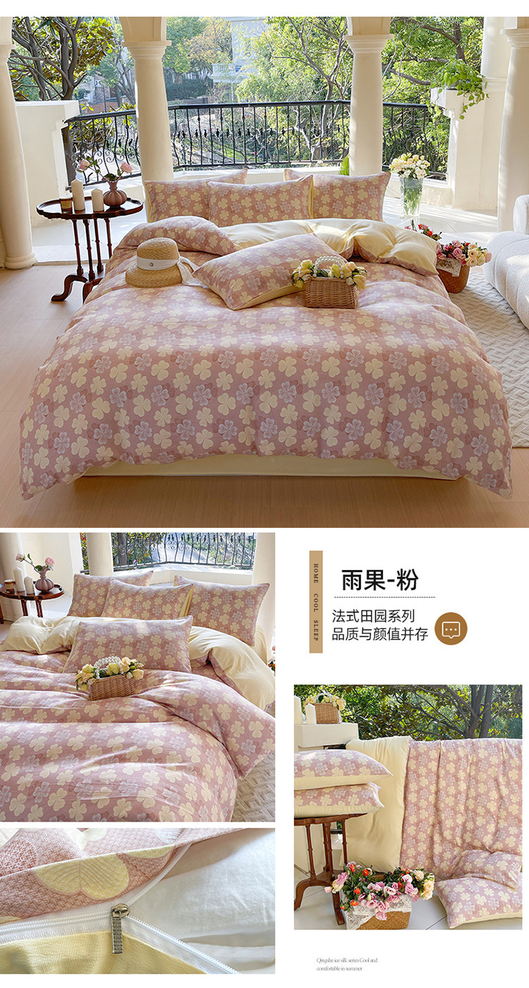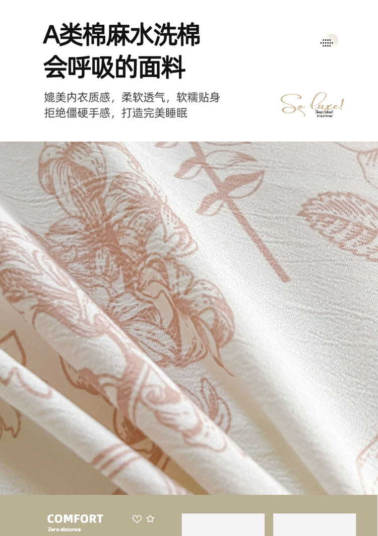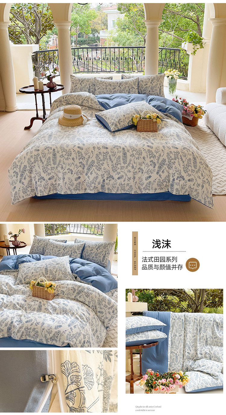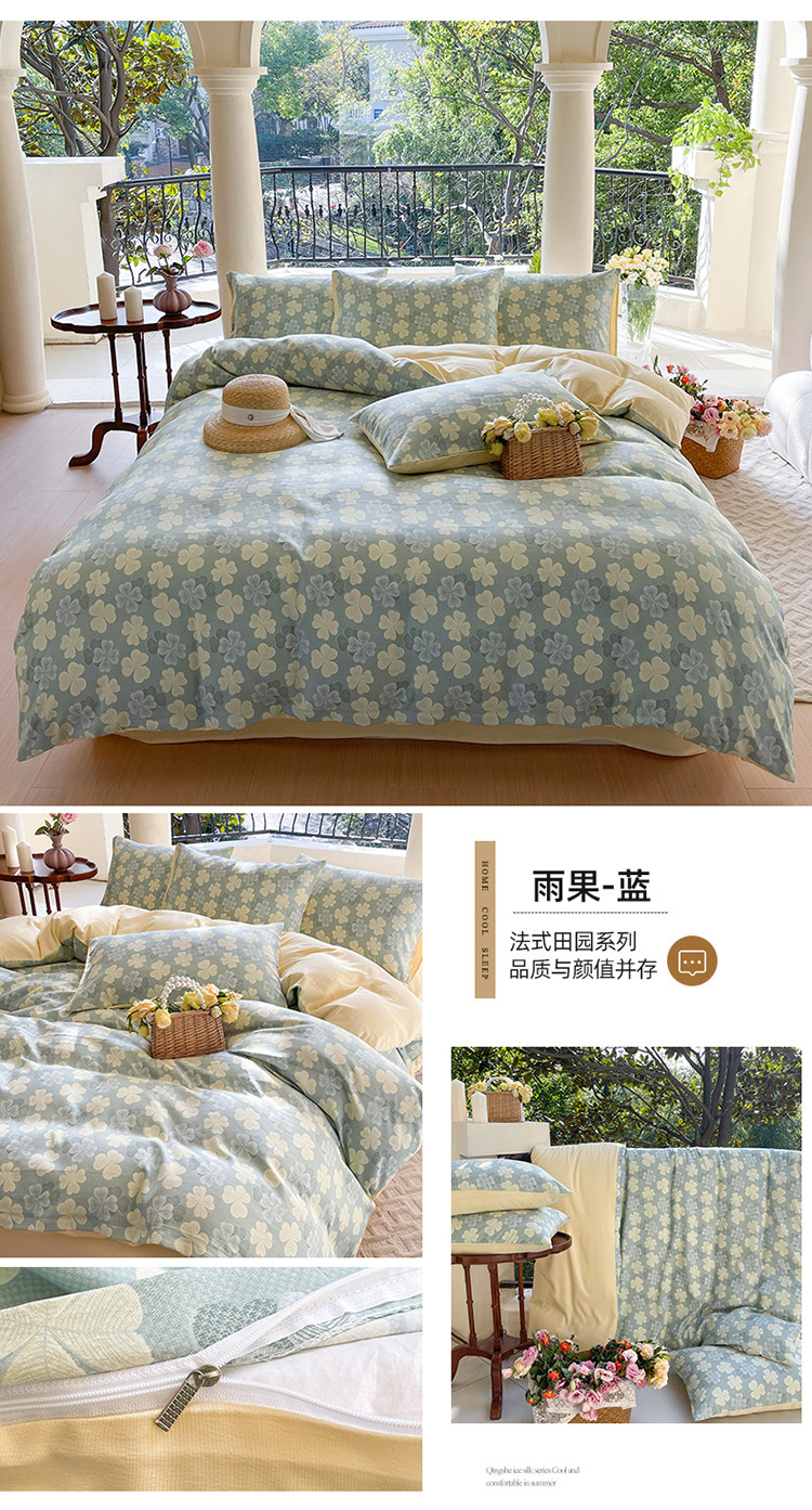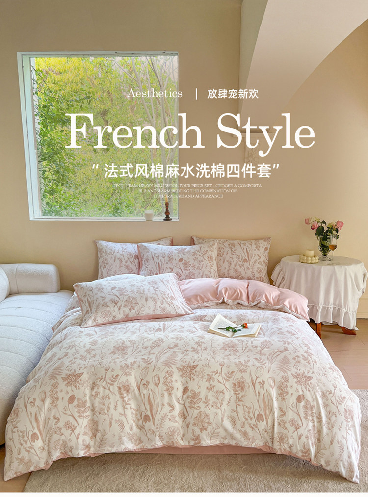A類法式床上用品四件套全棉純棉床單水洗棉麻被套罩床包三件套夏3