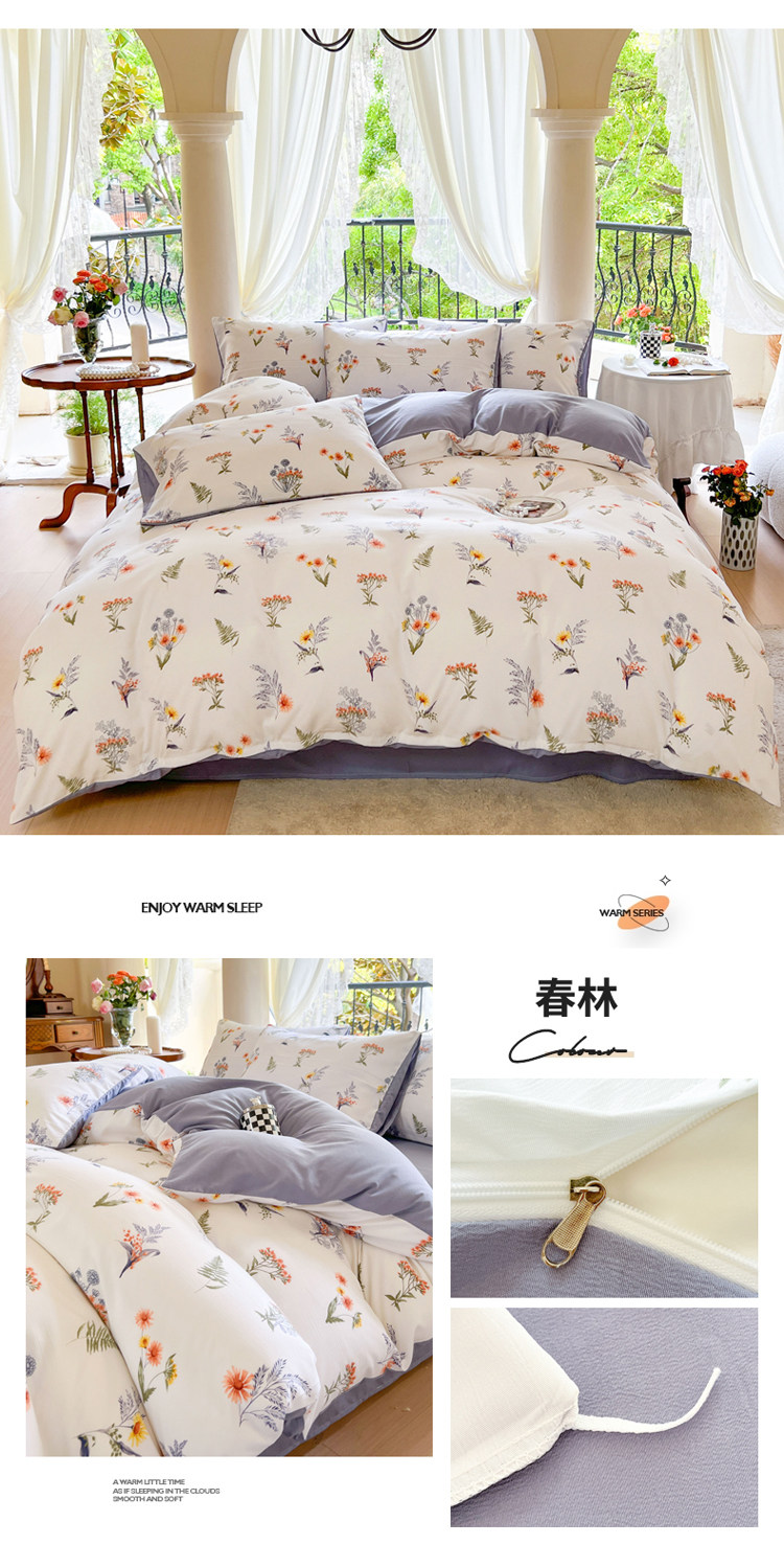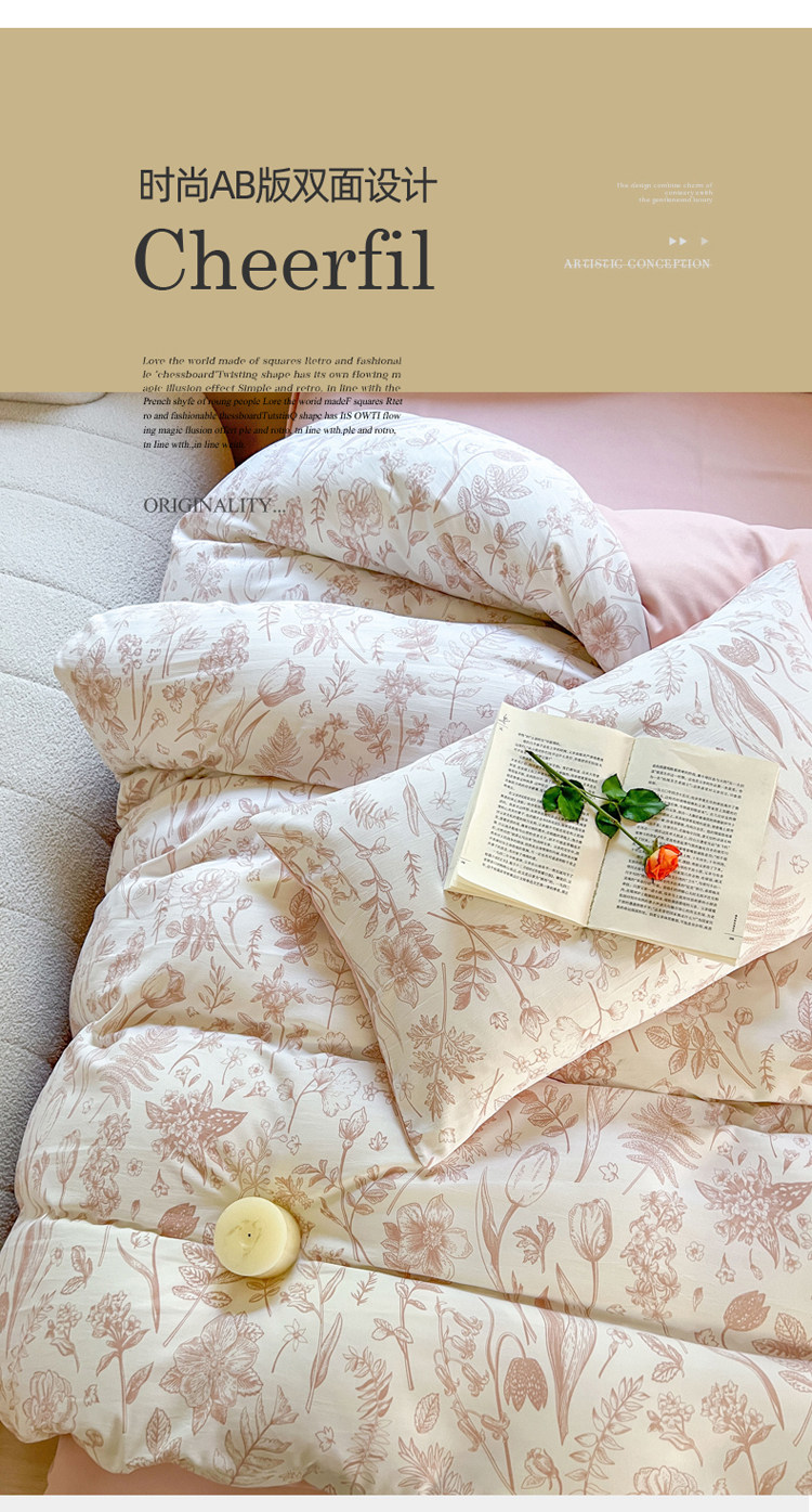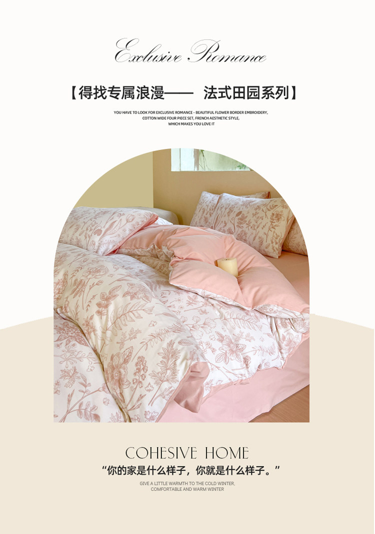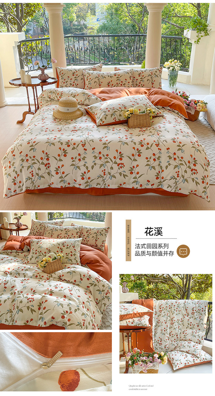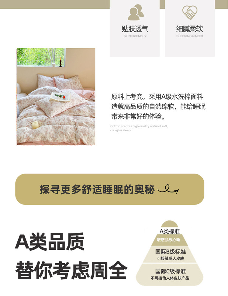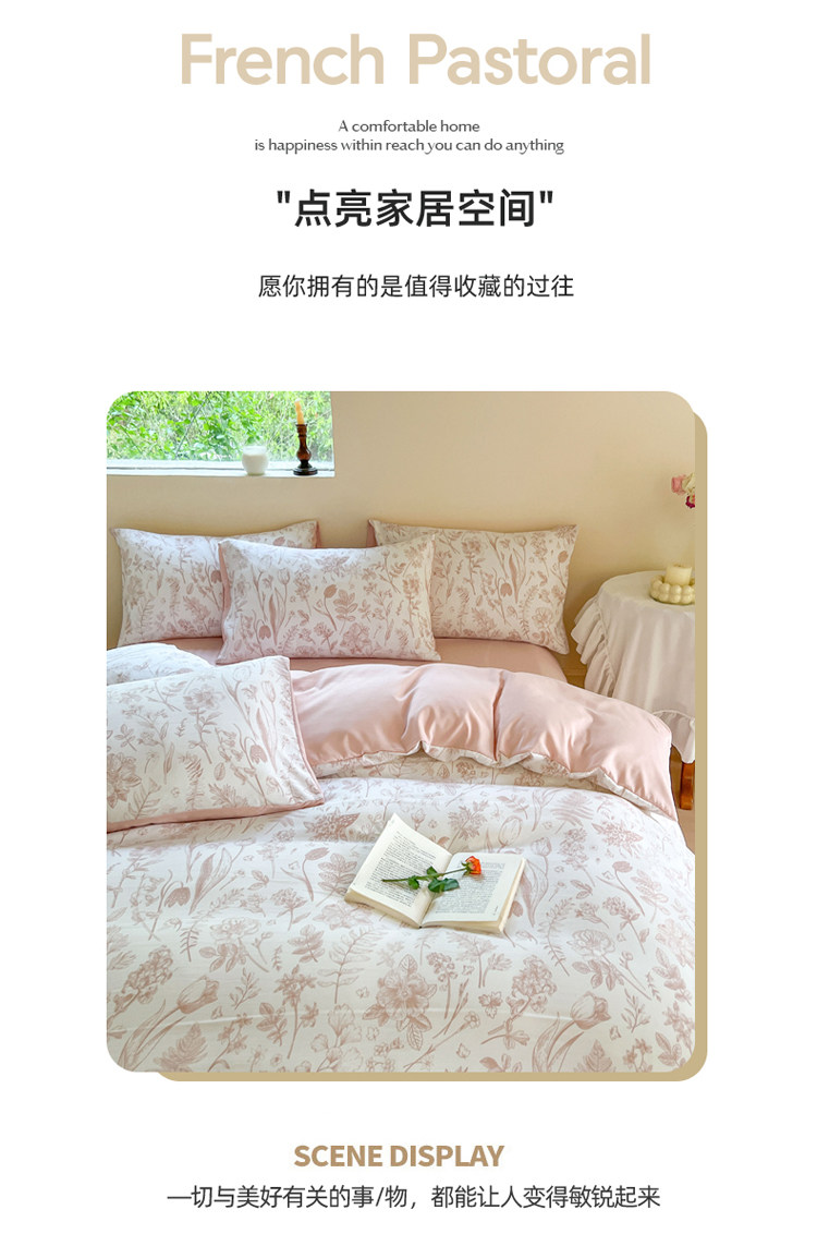 A類法式床上用品四件套全棉純棉床單水洗棉麻被套罩床包三件套夏3
