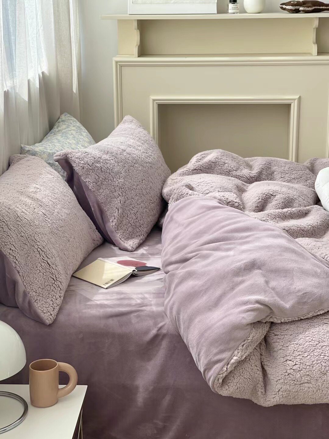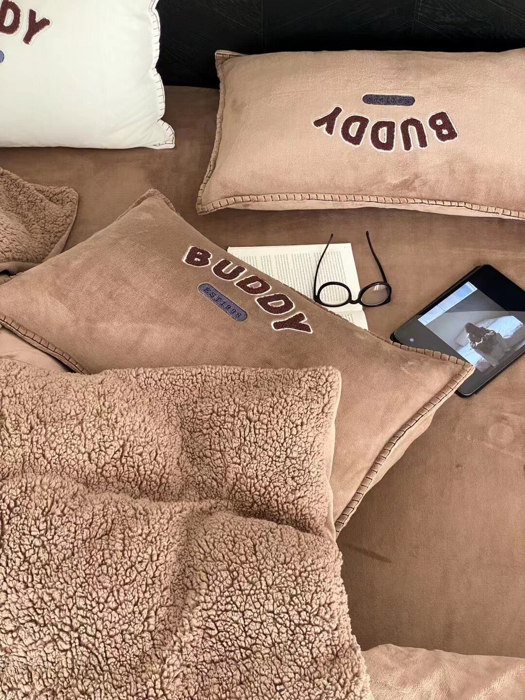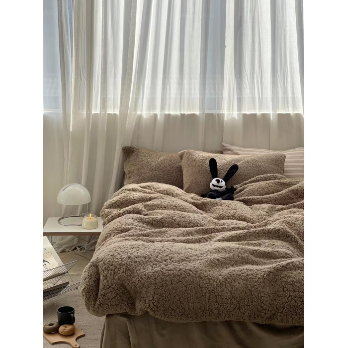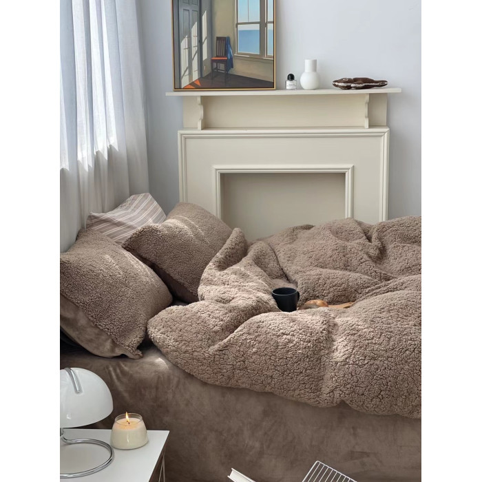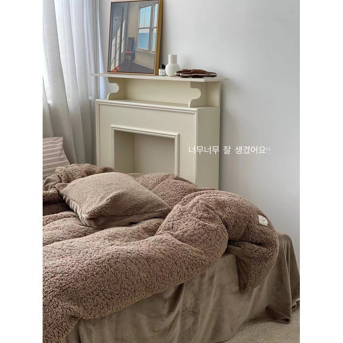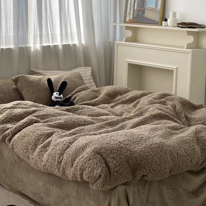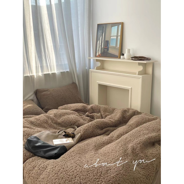 冬季加厚保暖羊駝絨+牛奶絨ins純色床上用品法萊絨羊羔絨簡約被套
